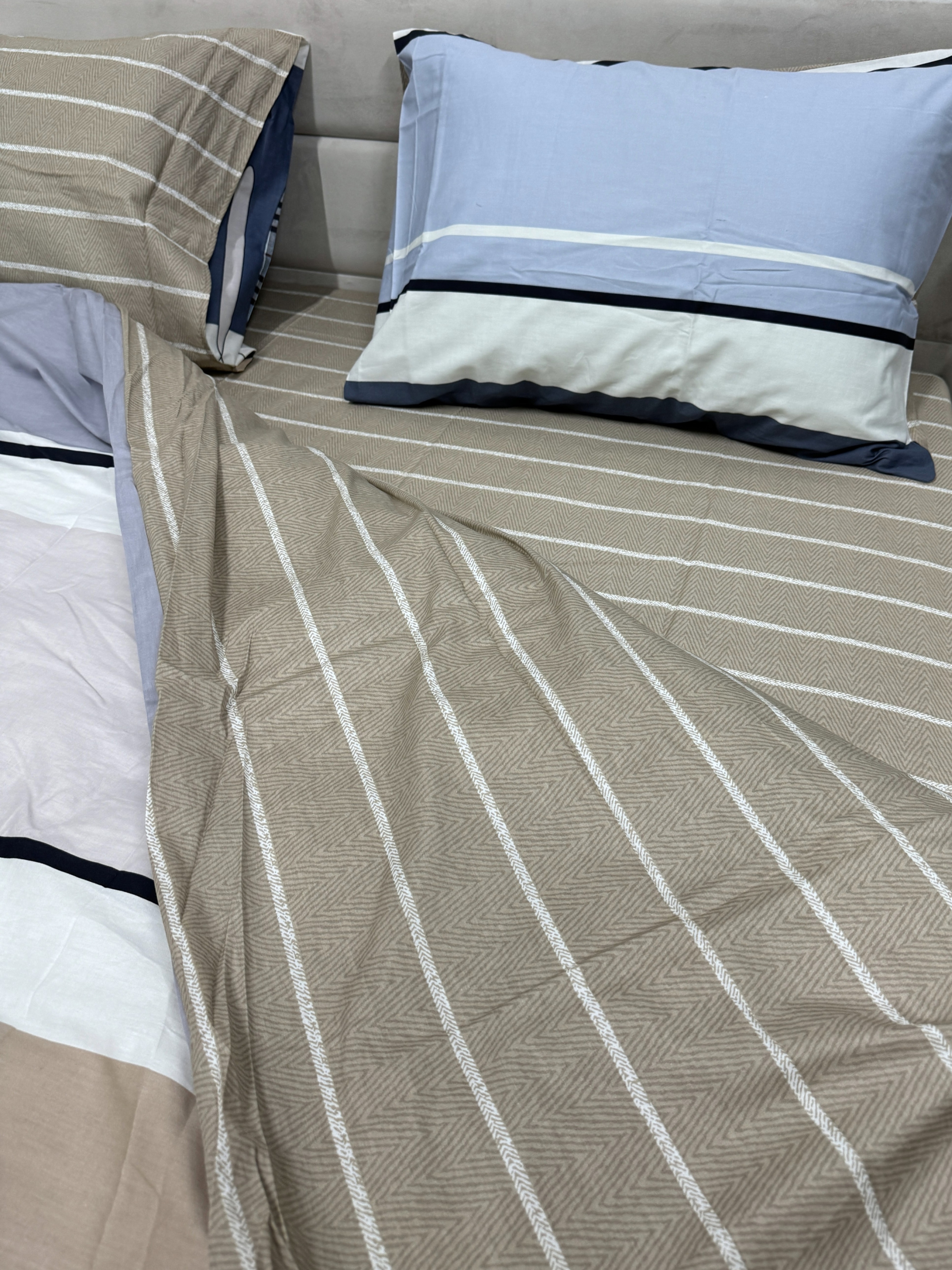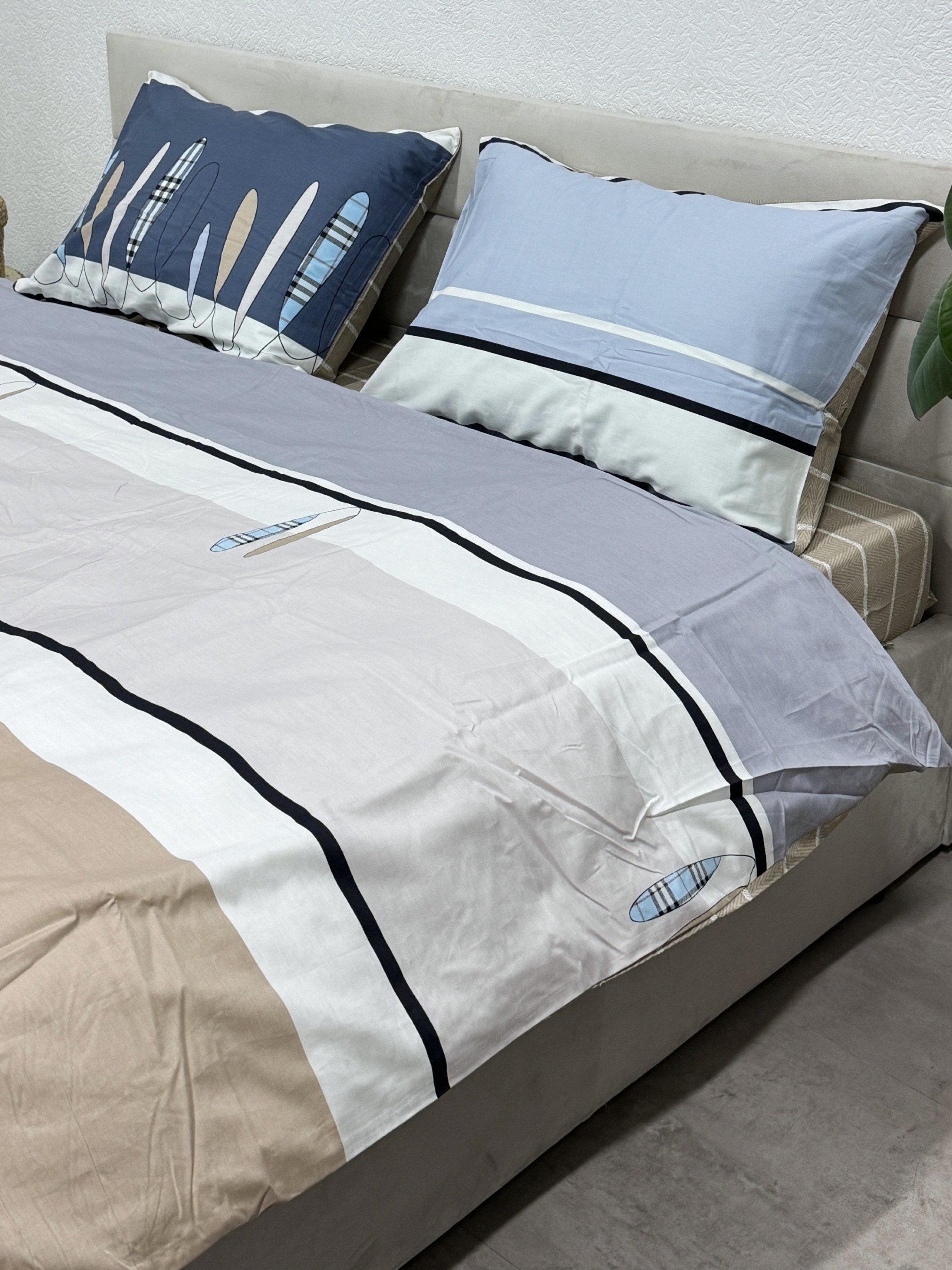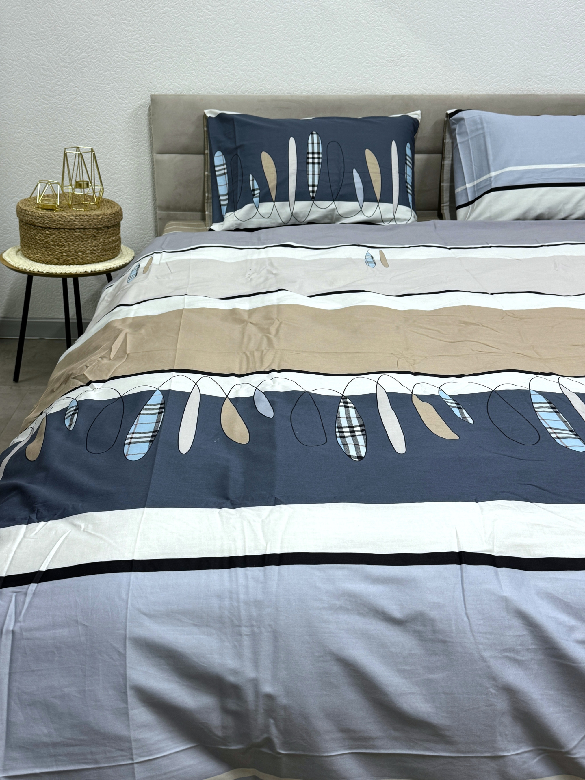 EcottonКомплект постільної білизни кремово-синій двосторонній