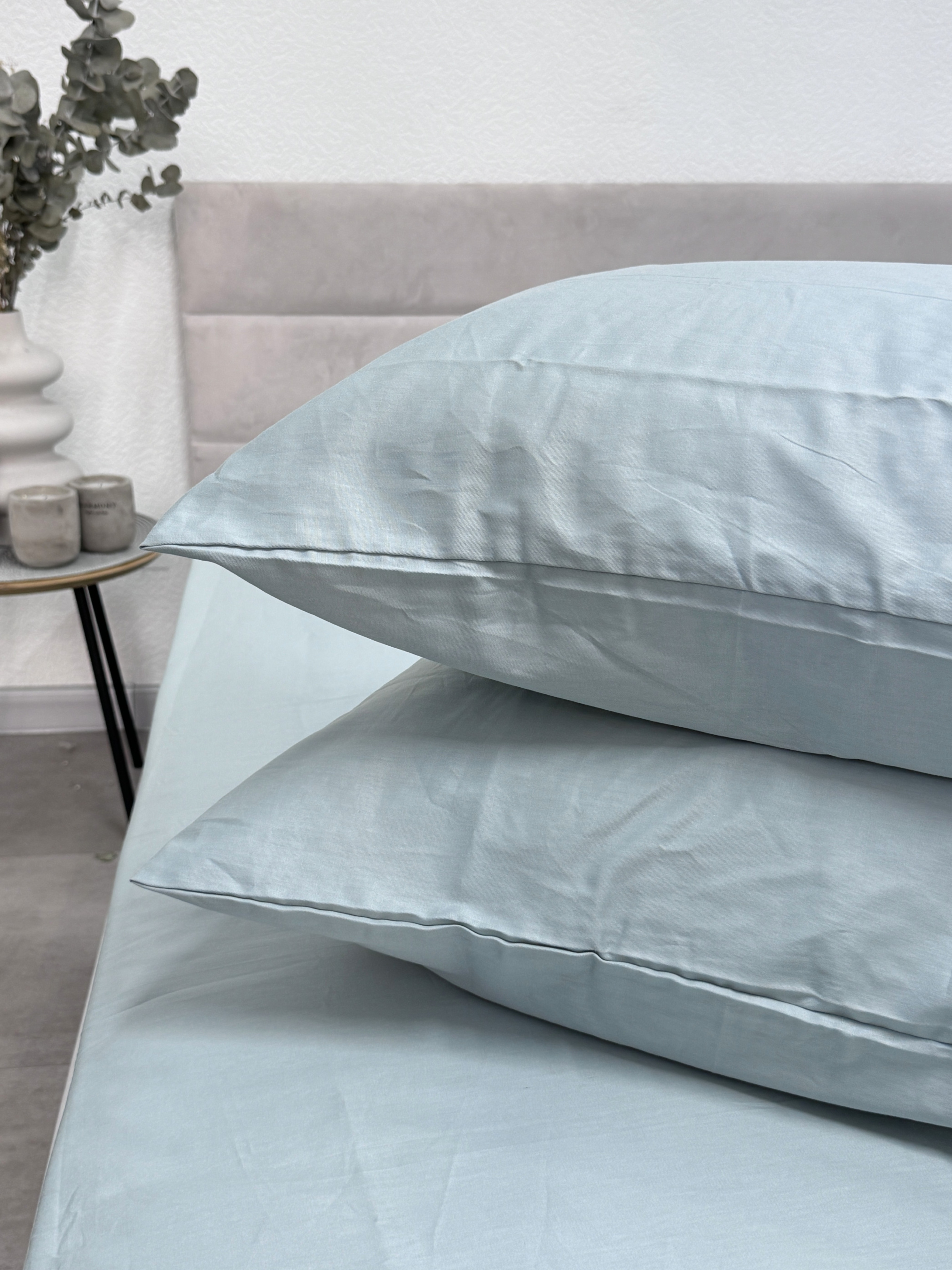 EcottonКомплект наволочок із сатину 2 шт. світло-блакитного кольору Aqua Grey