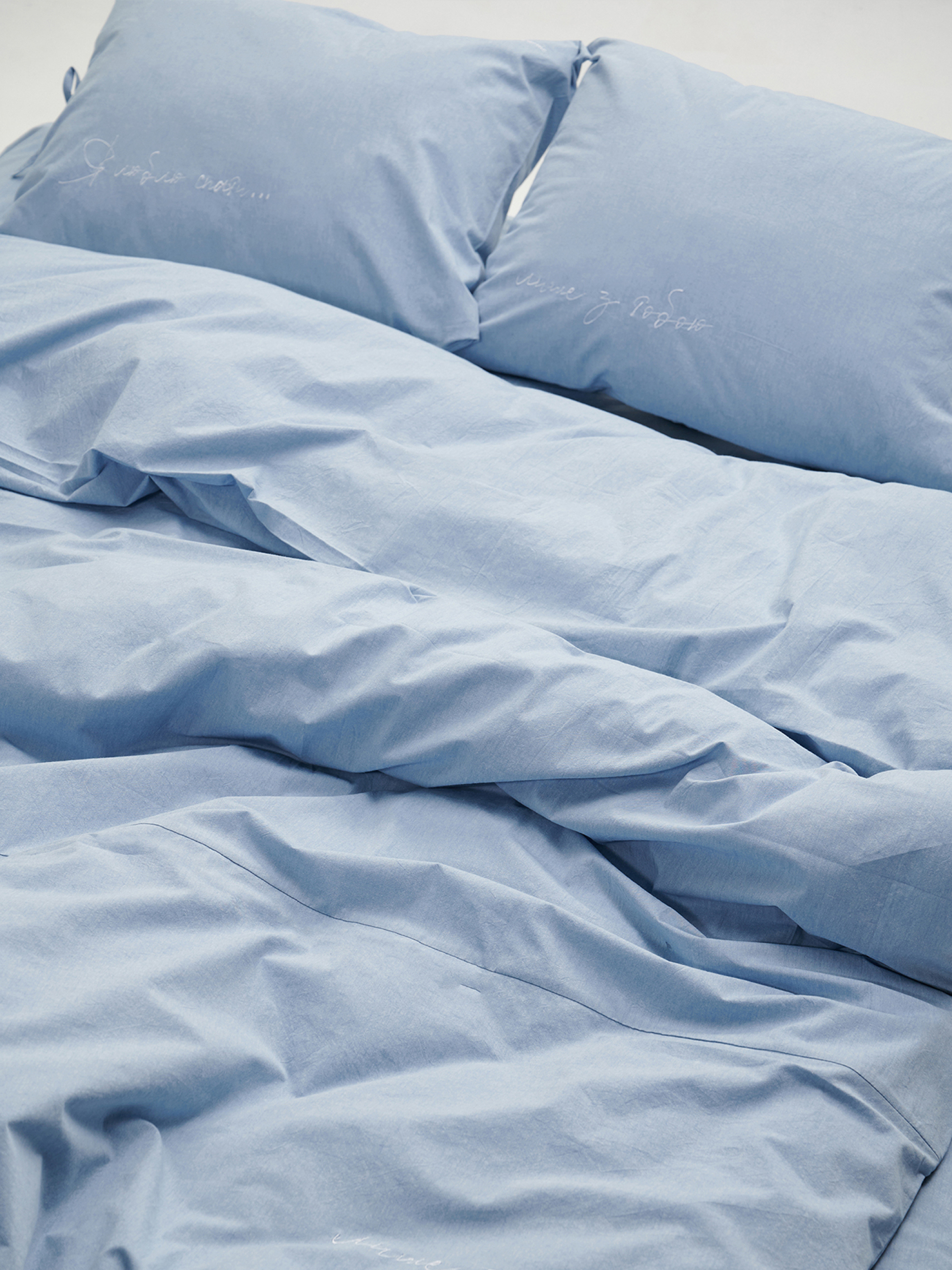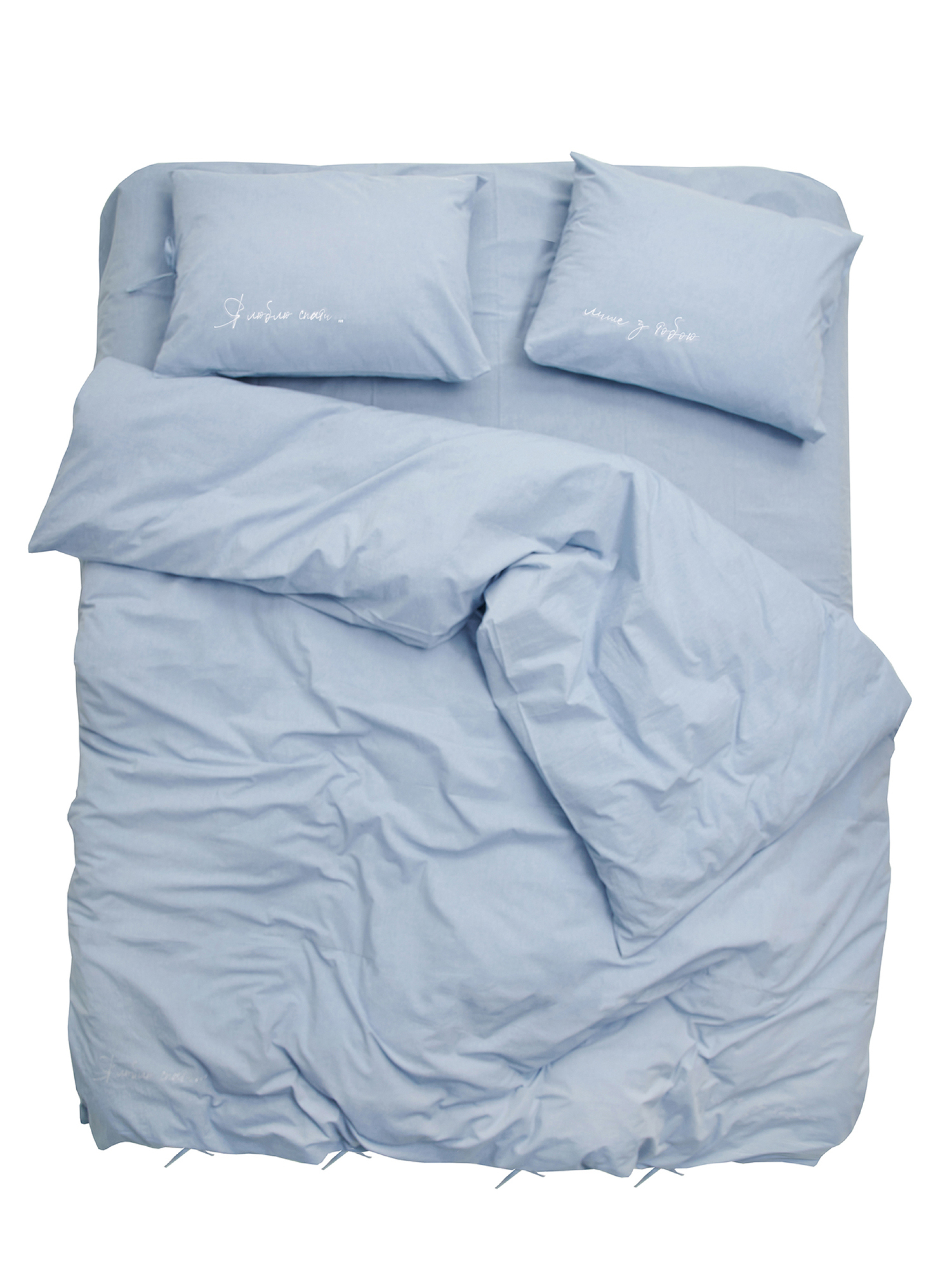 LEVAN HOMEКомплект постільної білизни з вареної бавовни блакитного кольору з вишивкою "Я люблю спати... лише з тобою"