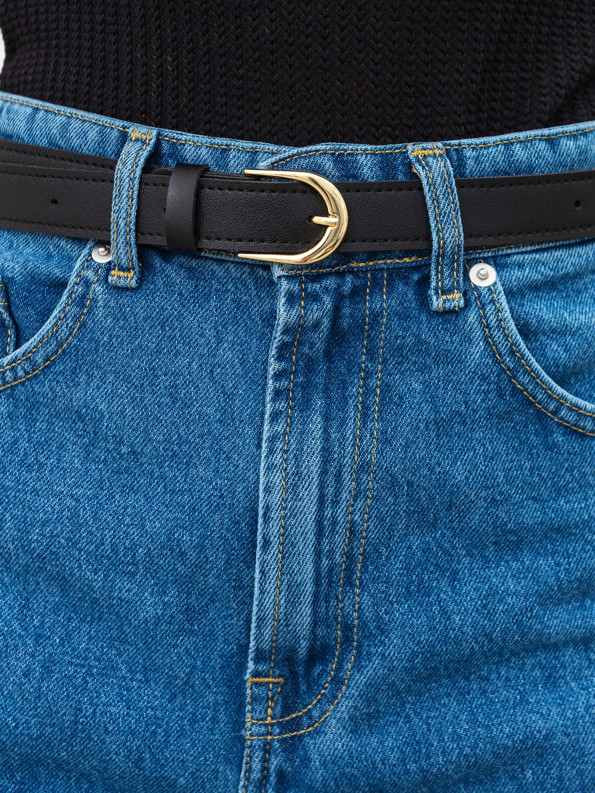 Ремінець Акцент стильний аксесуар, що вдало поєднує екошкіру та метал, створюючи витончену деталь для доповнення образу. Гнучкий і міцний матеріал забезпечує комфорт у носінні, а напівкругла пряжка з легкими вінтажними нотками додає вишуканості. Доступний у двох варіантах фурнітури срібному та золотому відтінку, що дозволяє підібрати аксесуар під будь-який стиль. Ідеально пасує до джинсів, брюк, спідниць та навіть суконь, підкреслюючи лінію талії та додаючи завершеності образу. Довжина аксесуару - 101 см