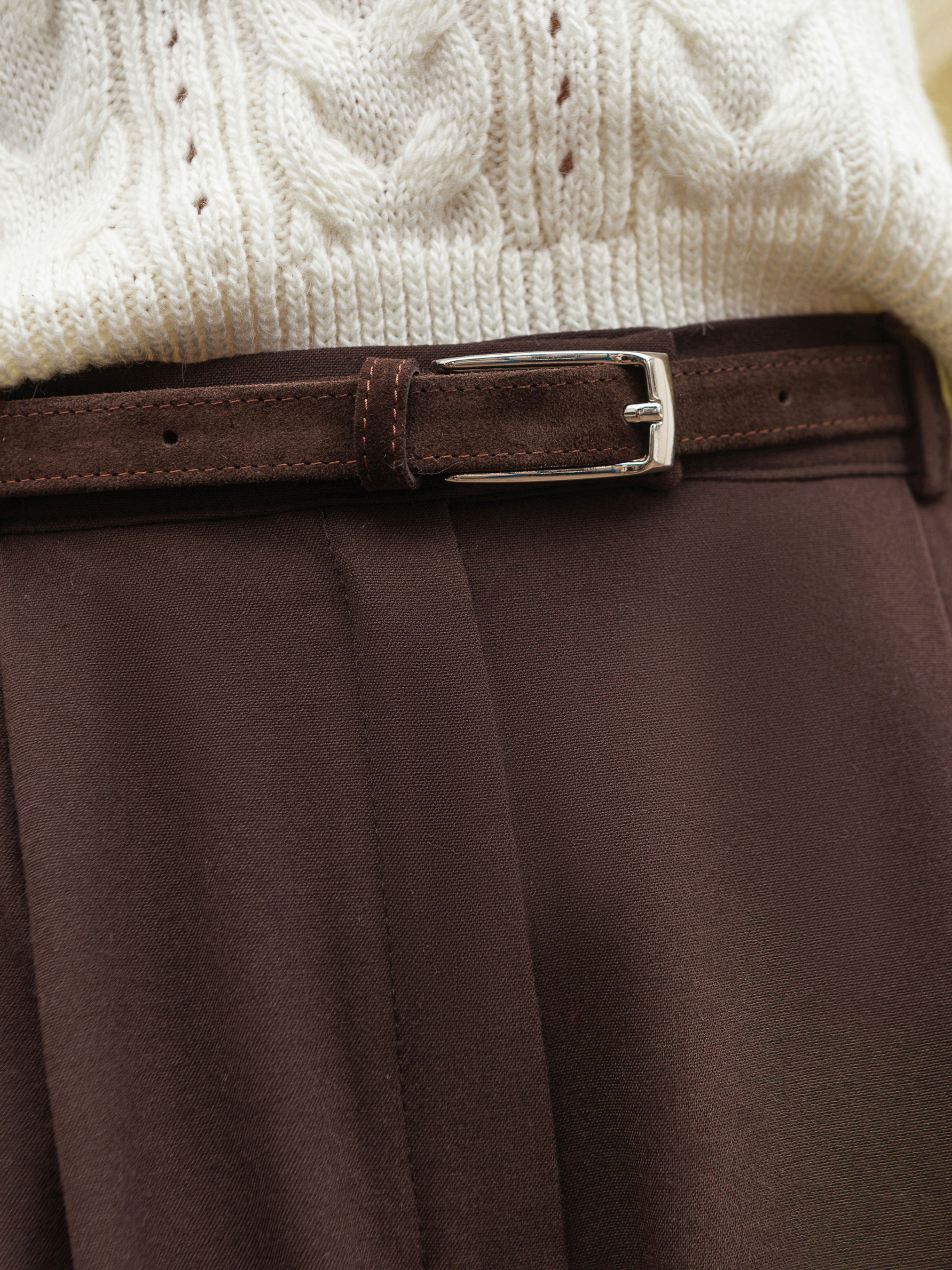 Довгий ремінець із натуральної замші елегантний акцент для базових і повсякденних образів. М який замш надає виробу фактурності та вишуканості, а срібна фурнітура додає сучасного штриха. Модель легко комбінується з різним одягом, підкреслюючи талію або додаючи завершеності силуету. Практична й водночас стильна деталь на кожен день. Доступні кольори: чорний, коричневий. Довжина аксесуару: 105 см Ширина аксесуару: 2 см