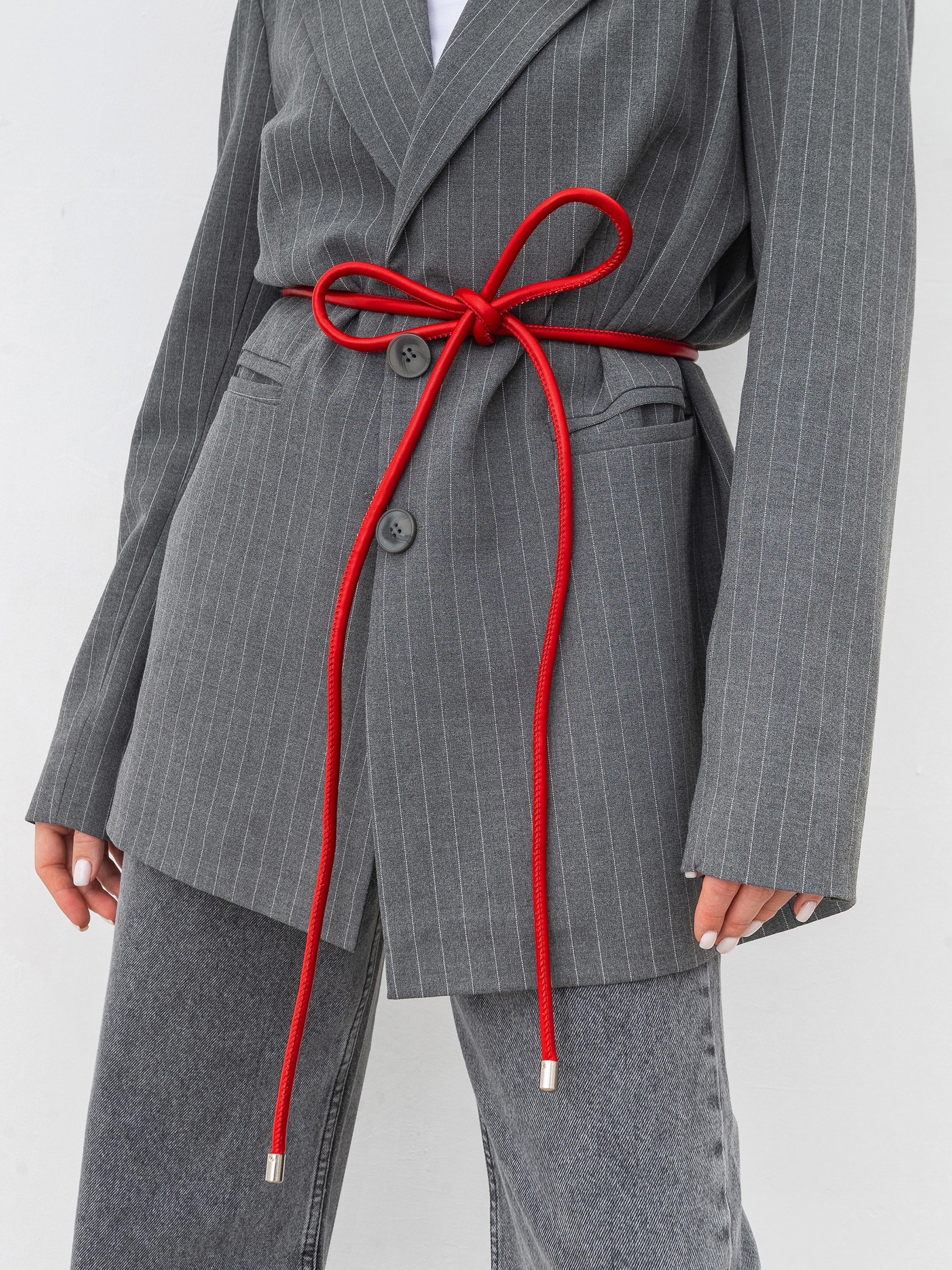 Ремінець-мотузок зі штучної шкіри. Ідеальний варіант, щоб підкреслити талію чи додати акцент в образ. Тонкий і циліндричний. На кінчиках є фурнітура зі світлого нікелю, що робить його акуратнішим. Можна поєднувати з оверсайз піджаками, пальто, сукнями, футболками чи сорочками. Довжина - 210 см, Ширина - 1 см.
