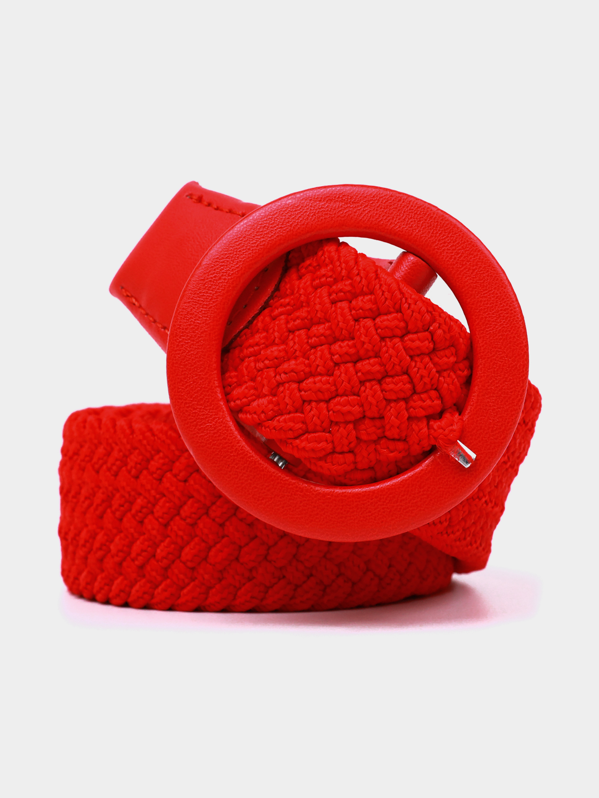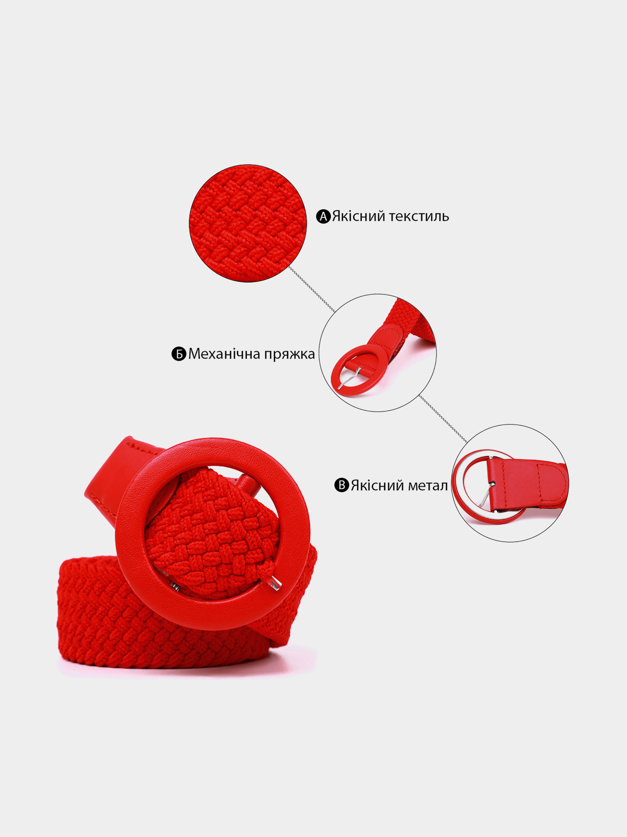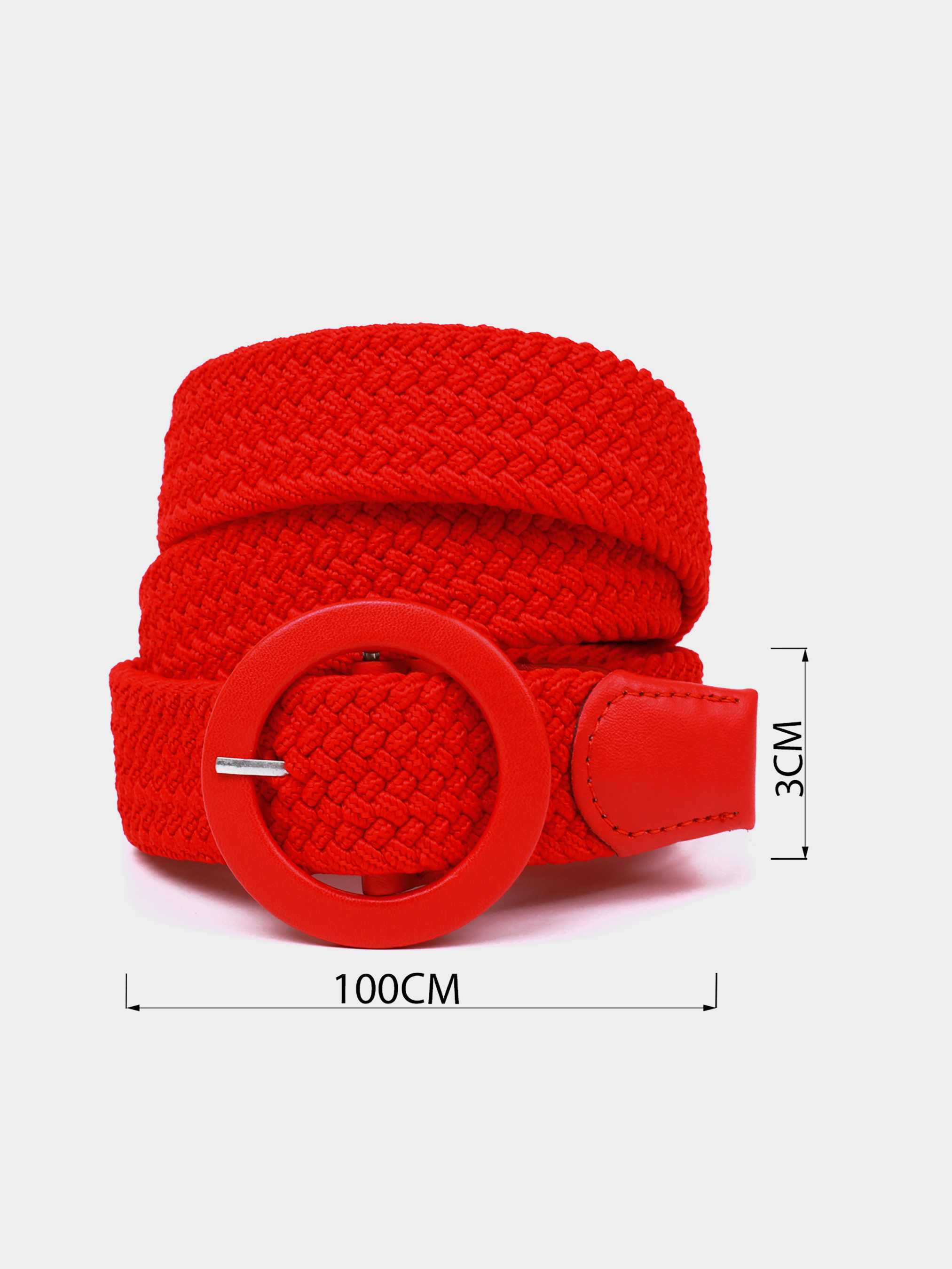 Матеріал: текстиль; Розмір (ШхД, см): 3х100 см; Колір: червоний; Країна виробник: Китай. Дуже красивий жіночий текстильний ремінець для жінок. Пояс має стильну круглу пряжку червоного кольору. Ремінь підійде як під класичні штани, так і під джинси. Виріб тягнеться і не шарується. Особливістю даного ремінця є те, що вам не потрібно робити дірки в полотні - вони легко робляться за допомогою хлястика на пряжці. Візерунок текстильного полотна розсувається і хлястик проходить наскрізь. Незважаючи на свою доступну вартість, аксесуар має високу якість і прослужить вам далеко не один рік.