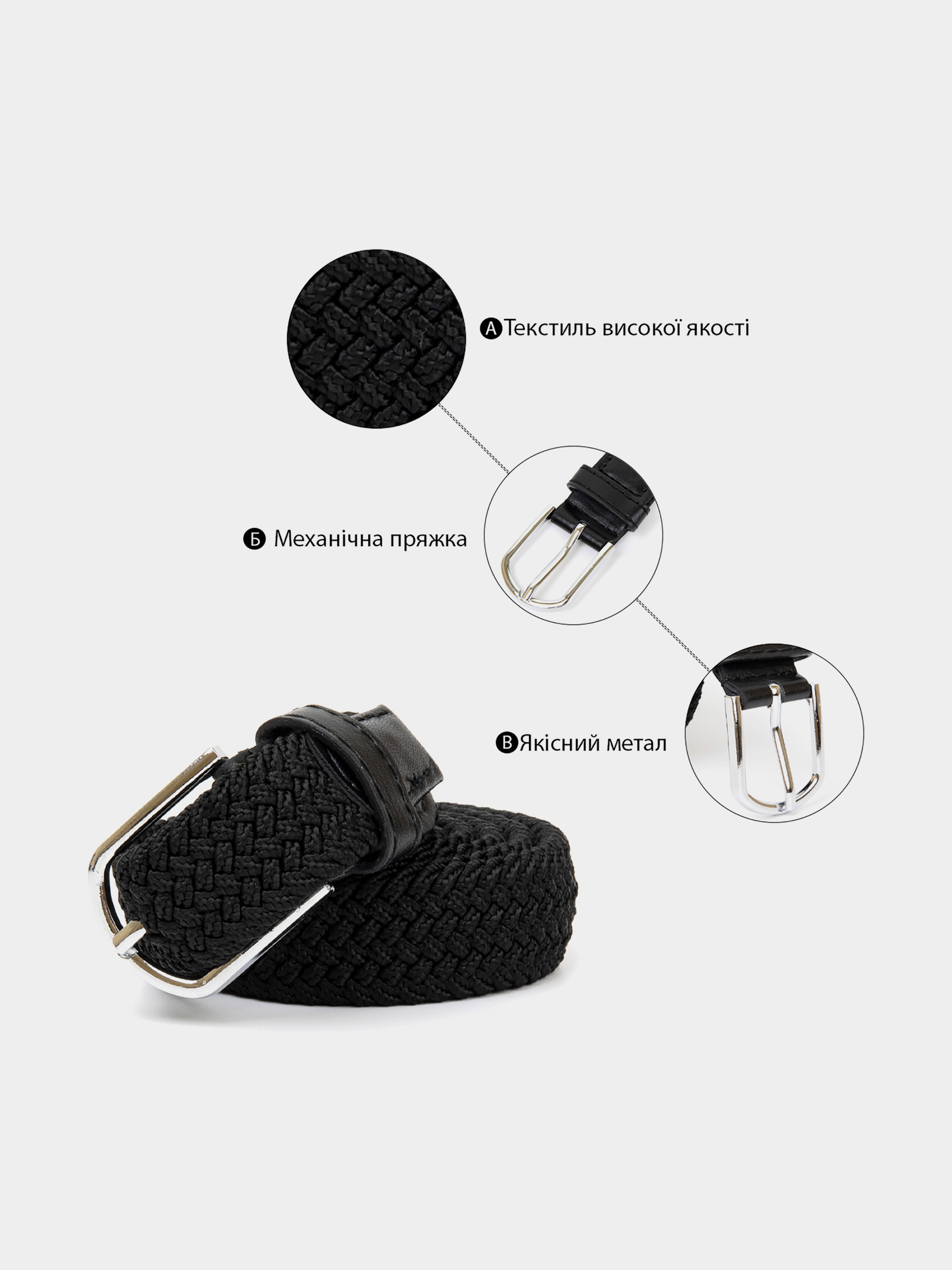 Матеріал: текстиль; Розмір: ширина 2,5 см; Колір чорний; Довжина: 90 см. Країна виробник: Китай. Текстильний ремінець для дівчат середньої ширини. Пояс має класичну пряжку сріблястого кольору. Тонкий ремінець підійде як під штани, так і під плаття. Виріб тягнеться і не шарується. Особливістю даного ремінця є те, що вам не потрібно робити дірки в полотні - вони з легкістю робляться за допомогою хлястика на пряжці. Візерунок текстильного полотна розсується і хлястик проходить наскрізь. Незважаючи на свою доступну вартість аксесуар має високу якість і прослужить вам далеко не один рік. На сайті виріб є в різних кольорах.