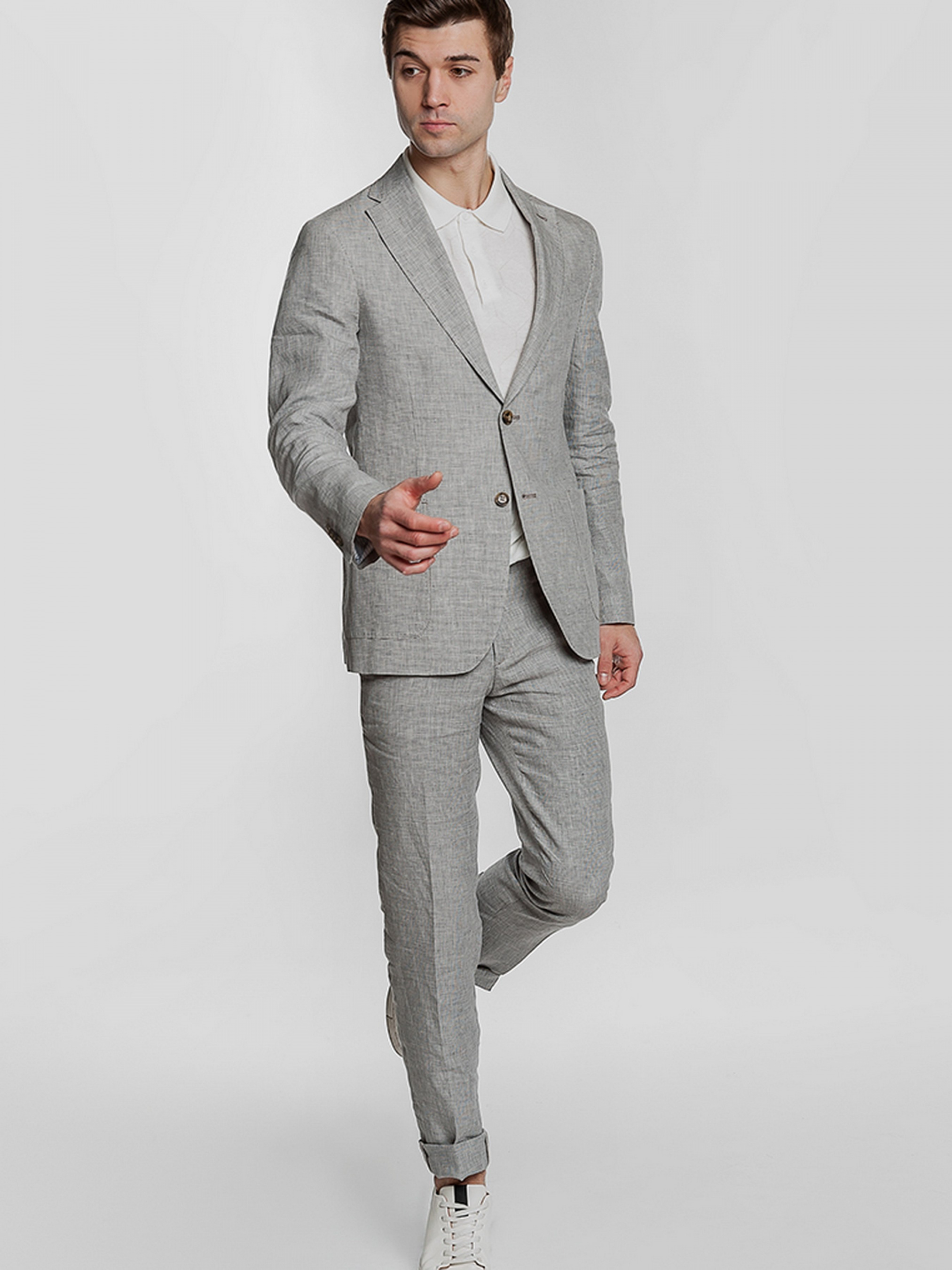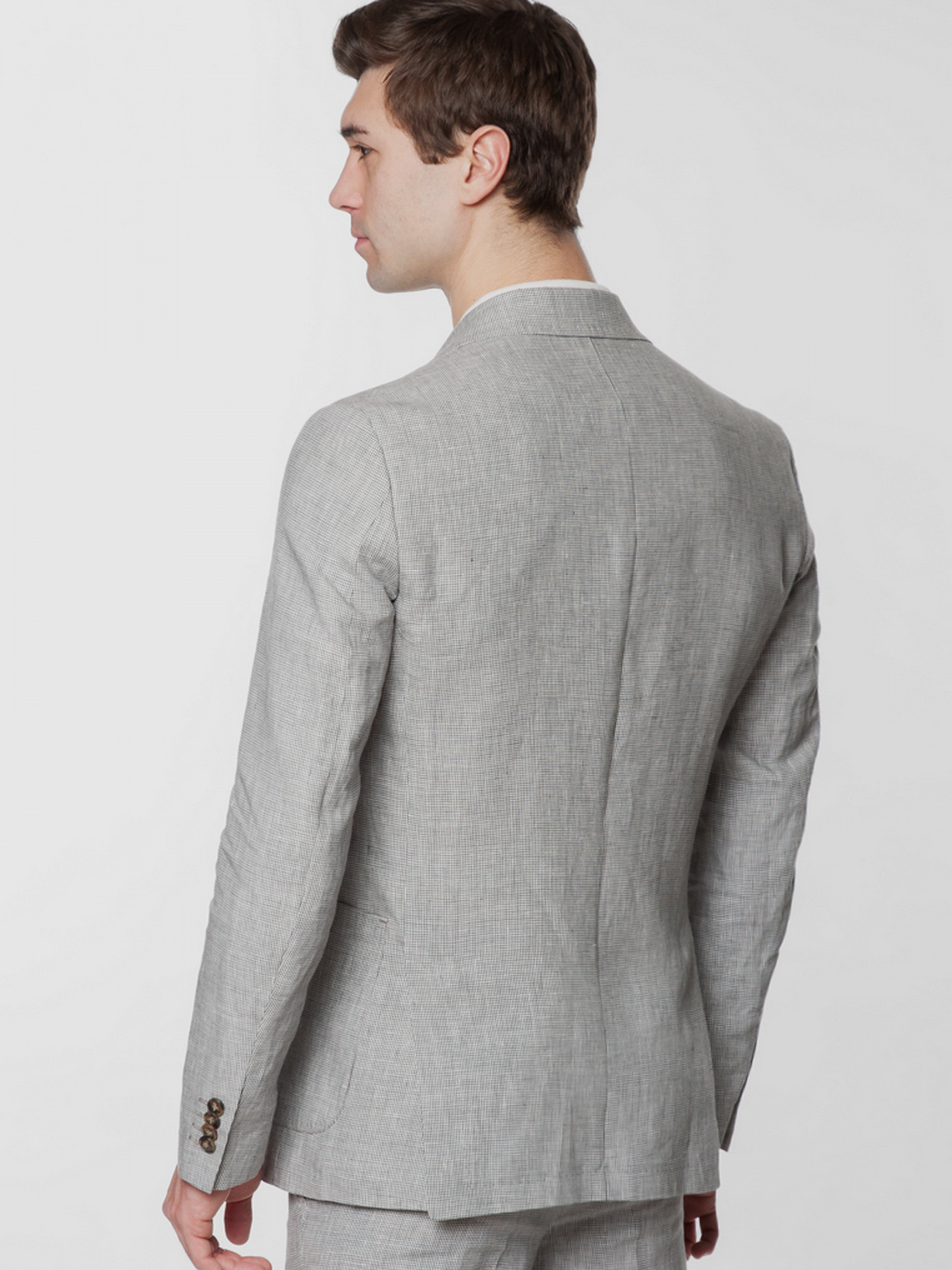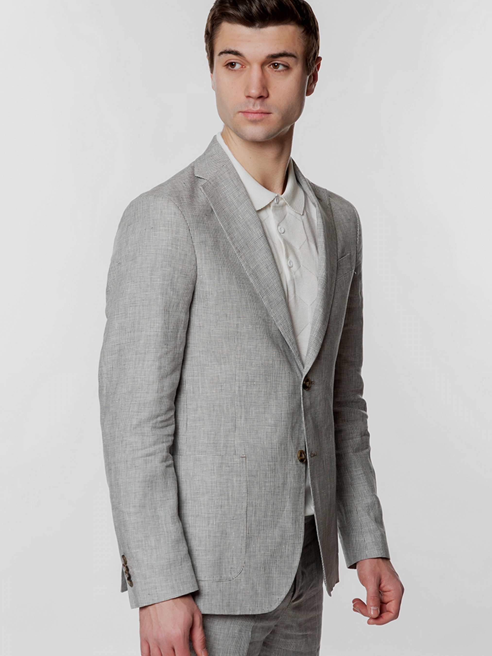 Легкий чоловічий піджак Gregory Arber з натуральної дихаючої тканини створеної з суміші волокон бавовни та льону, з укороченою підкладкою, що робить його придатним для теплих сонячних днів. Напівприлеглий силует, накладні кишені, прямий лацкан і дві шліци. Піджак вдало поєднується з брюками з бавовни та льону, доповнити образ можна тонким трикотажем, сорочкою casual та неформальним взуттям.