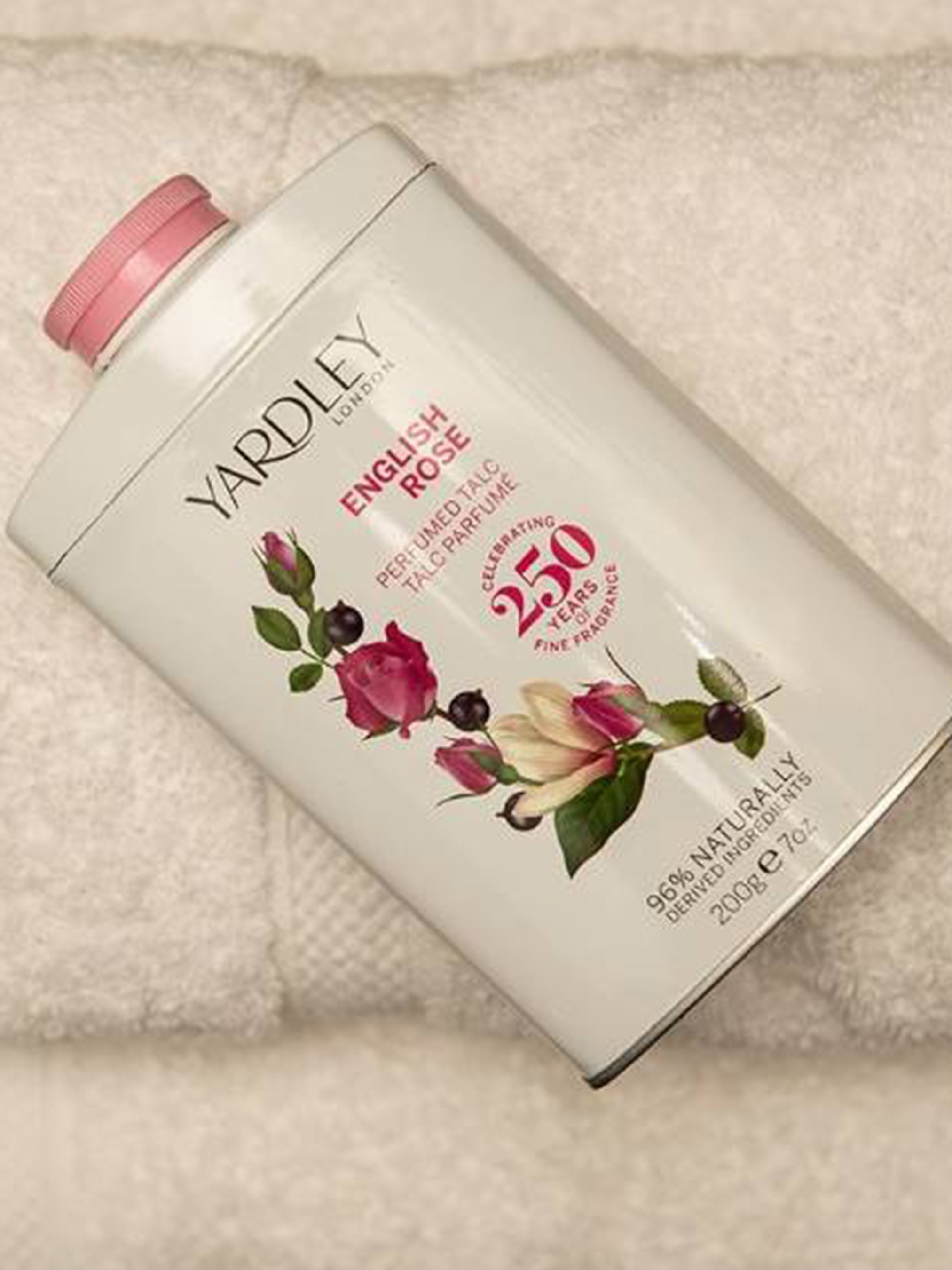 Легкий, ніжно ароматизований англійською трояндою тальк зробить вашу шкіру м'якою, гладкою і свіжою після купання або душа. Освіжаючий, легкий свіжий квітковий аромат з ігристими, цитрусовими і рожевими верхніми нотами, змішаними з чайним акордом. Поєднуючи складне квіткове серце з бутона троянди, магнолії, фіалки і чорної смородини з теплими деревними нотами, воно доповнено пачулі і мускусу, додаючи оксамитові відтінки до основи. Спосіб застосування: Нанести тальк тонким шаром на попередньо очищену поверхню шкіри і рівномірно розподілити серветкою. Склад: Talc, Magnesium carbonate, Calcium carbonate, Dipropylene glycol, Parfum (fragrance), Calcium silicate, Hexyl cinnamal, Limonene, Linalool, Hydroxycitronellal, Geraniol, Citronellol, Citral, Alpha-isomethyl ionone