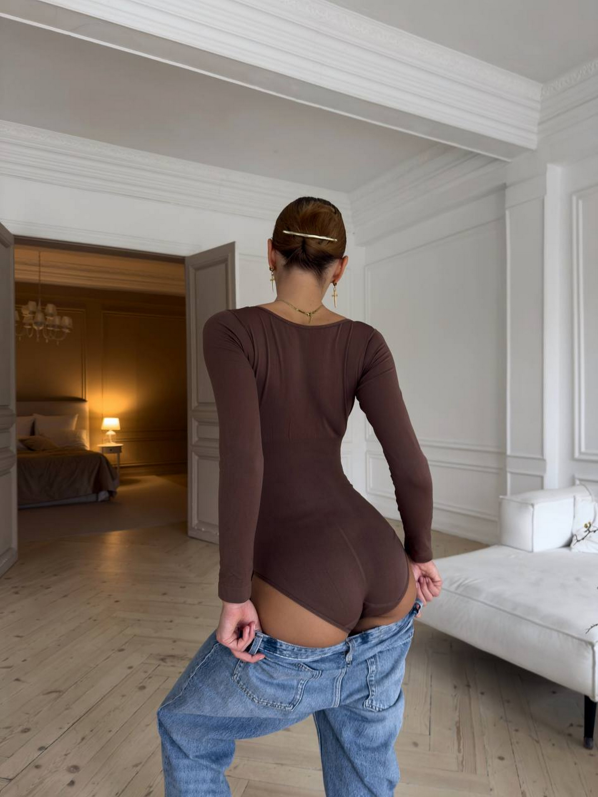 Базове боді, що замінить 5 речей у твоєму гардеробі. Піджак? Джинси? Спідниця? Ідеально під усе! Щільна еластична тканина з ефектом легкої утяжки: підтягує живіт і створює плавний силует. Зручна застібка знизу. М’яке до тіла, не просвічується, гарно тягнеться. Чорний боді з трусиками стрінг. Таблиця розмірів: S: груди 85-90, стегна 86-95 М: груди 90-95, стегна 95-100 L: груди 95-99, стегна 100-105 XL: груди 99-104, стегна 105-110 2XL: груди 104-109, стегна 110-115 3XL: груди 108-114, стегна 115-120 Товар обміну та поверненню не підлягає!