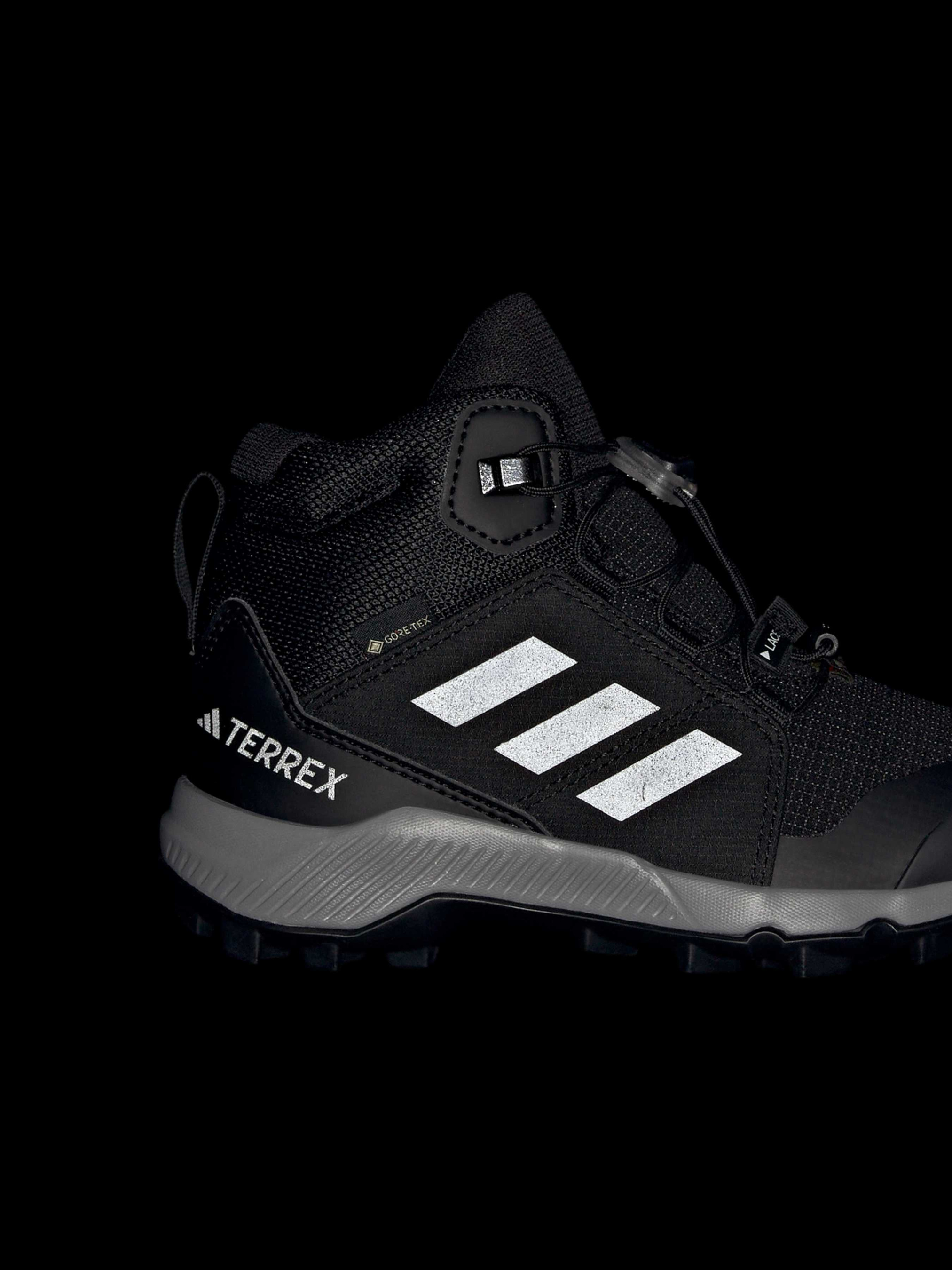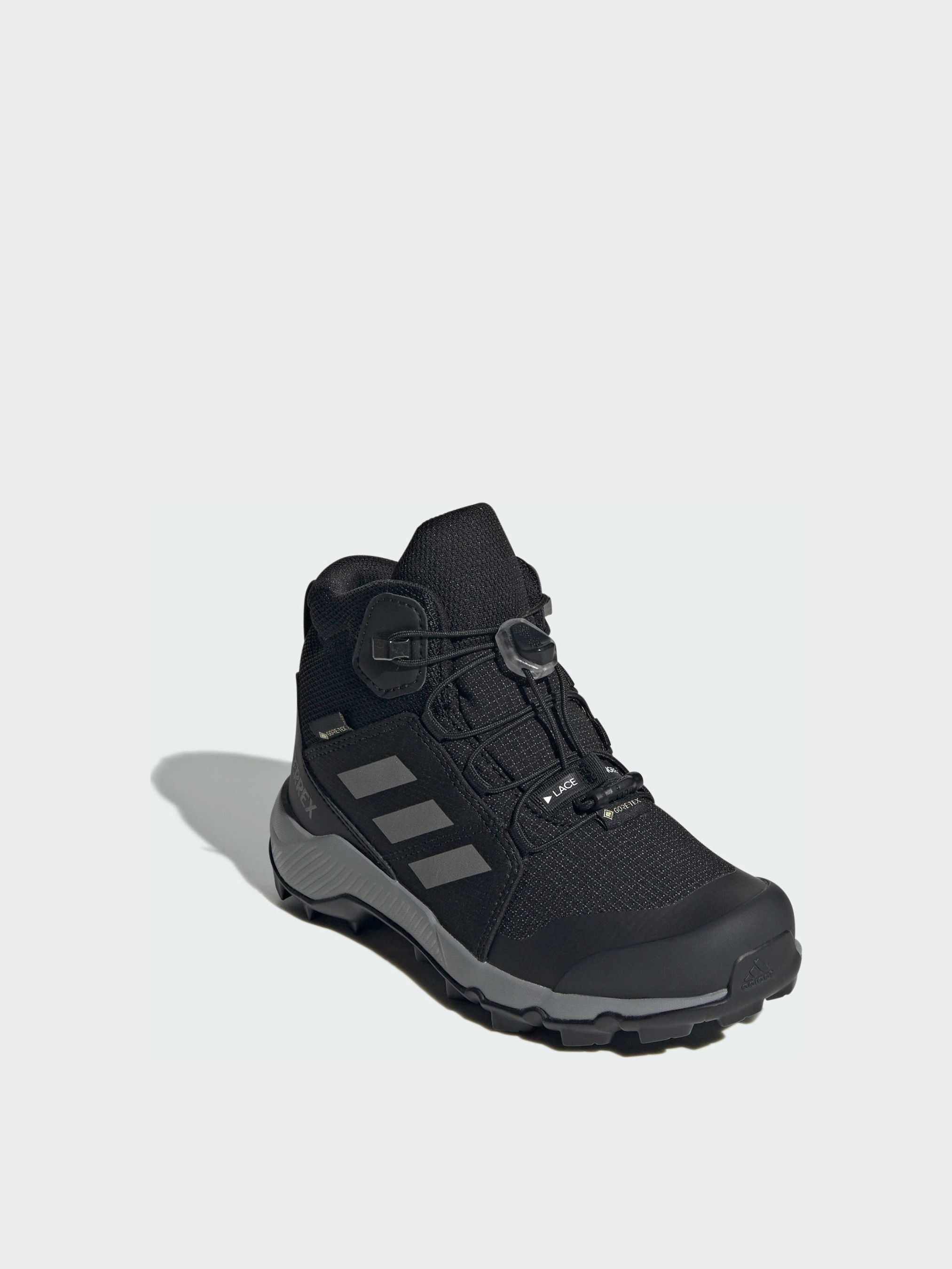 Характеристики Верх із текстилю та синтетичних матеріалів зі стійкими до стирання накладками Вимірювальна устілка Adifit Мембрана GORE-TEX Проміжна підошва із EVA Система швидкої шнурівки Стандартний крій Гумова підошва Continental™ Містить не менше 20% переробленої сировини Перепад підошви: 8 мм (п'ятка: 21 мм / носок: 13 мм) Вага: 238 г Опис Надихни свого маленького першовідкривача на великі подвиги з дитячими похідними черевиками adidas Terrex. Ці черевики створені для юних шукачів пригод: водонепроникна і дихаюча мембрана GORE-TEX захищає ніжки від бруду і калюж, зберігаючи комфорт і сухість. Легка підошва EVA дарує м'якість кожному кроку - від дворових ігор до справжніх походів. Міцні зносостійкі накладки витримають будь-які навантаження, а система швидкого шнурування - це секунда, і твій малюк готовий до нових вершин. Гумова підошва Traxion забезпечує впевнене зчеплення зі слизькими корінням, камінням і нерівними поверхнями.