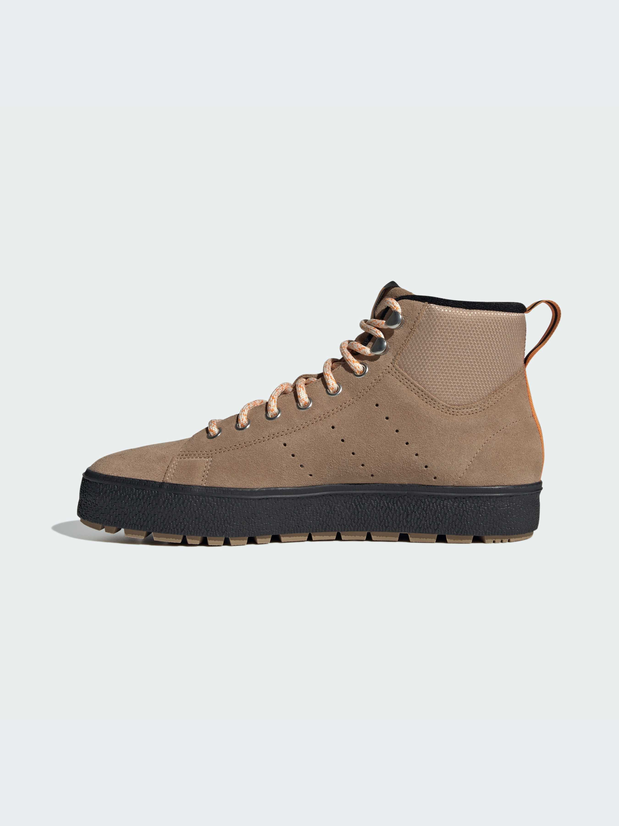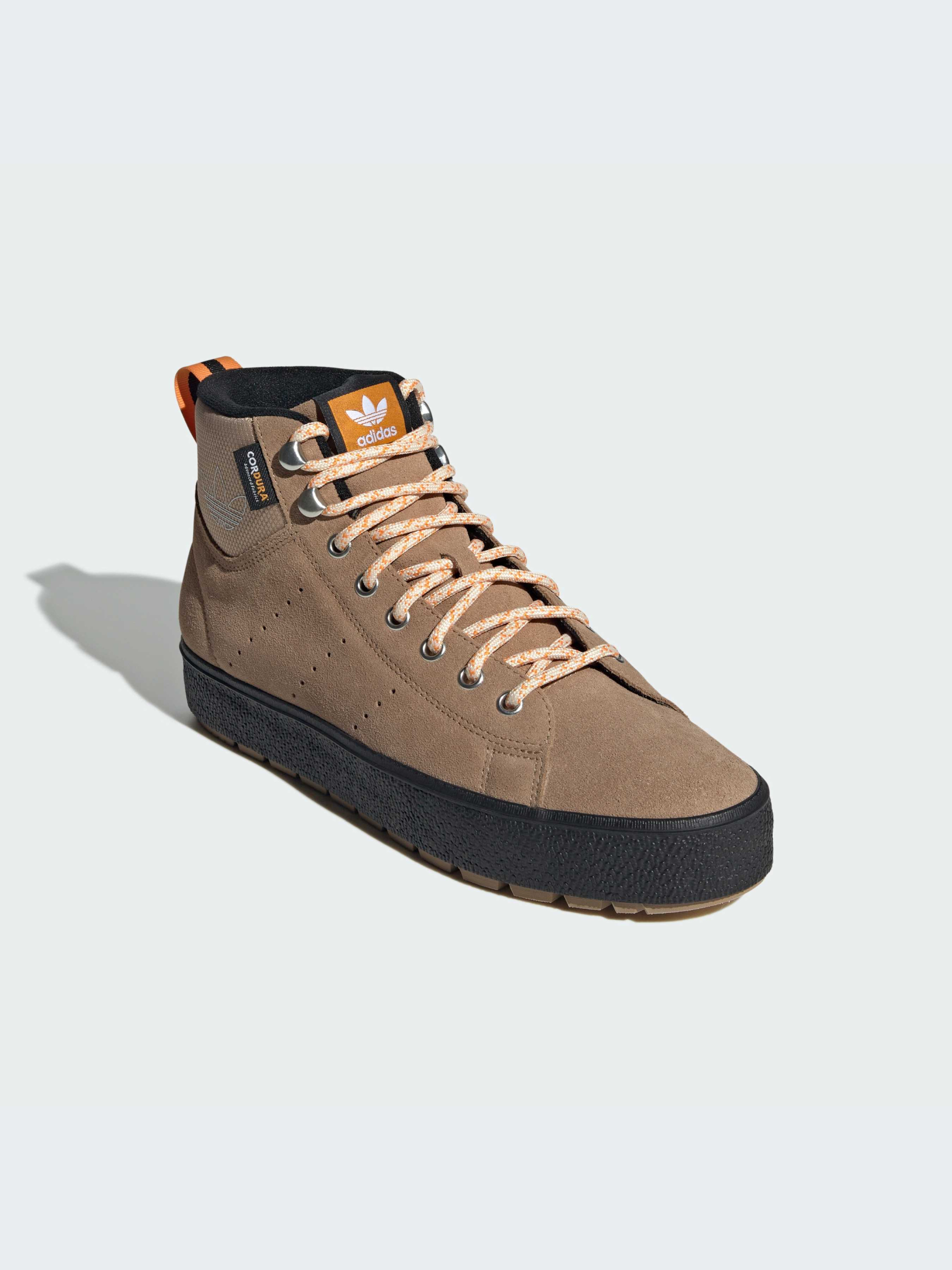 Вирушай у холодне, холодне місто в цих утеплених черевиках Stan Smith. Натхненні великою природою і перенесені в місто, вони готові до твоїх досліджень. Верх із фактурної замші захищає від негоди, а CORDURA® на халяві додає міцності. Фірмові деталі Stan Smith - перфоровані смужки та написи на язичку п'яти та зворотному боці тканого ярлика. Такі елементи для зимового сезону, як товстіша підошва, масивні накладки на підошві та металеві гачки для шнурків у стилі туристичних черевиків, створюють враження про взуття для активного відпочинку. Одягни їх із водонепроникними штанами в холодні та сирі дні або поєднай зі штанами-карго чи джинсами для повсякденного буденного образу.