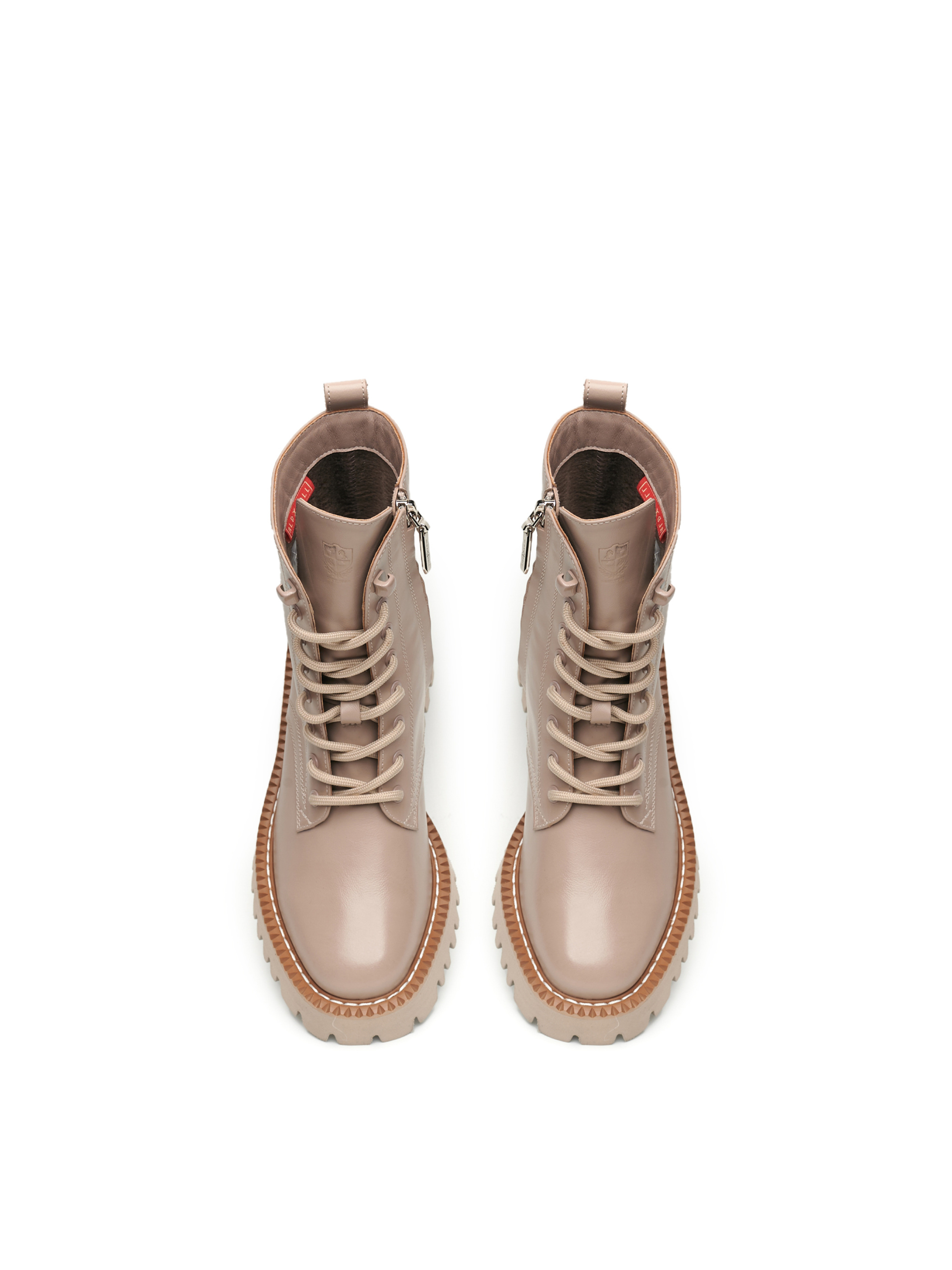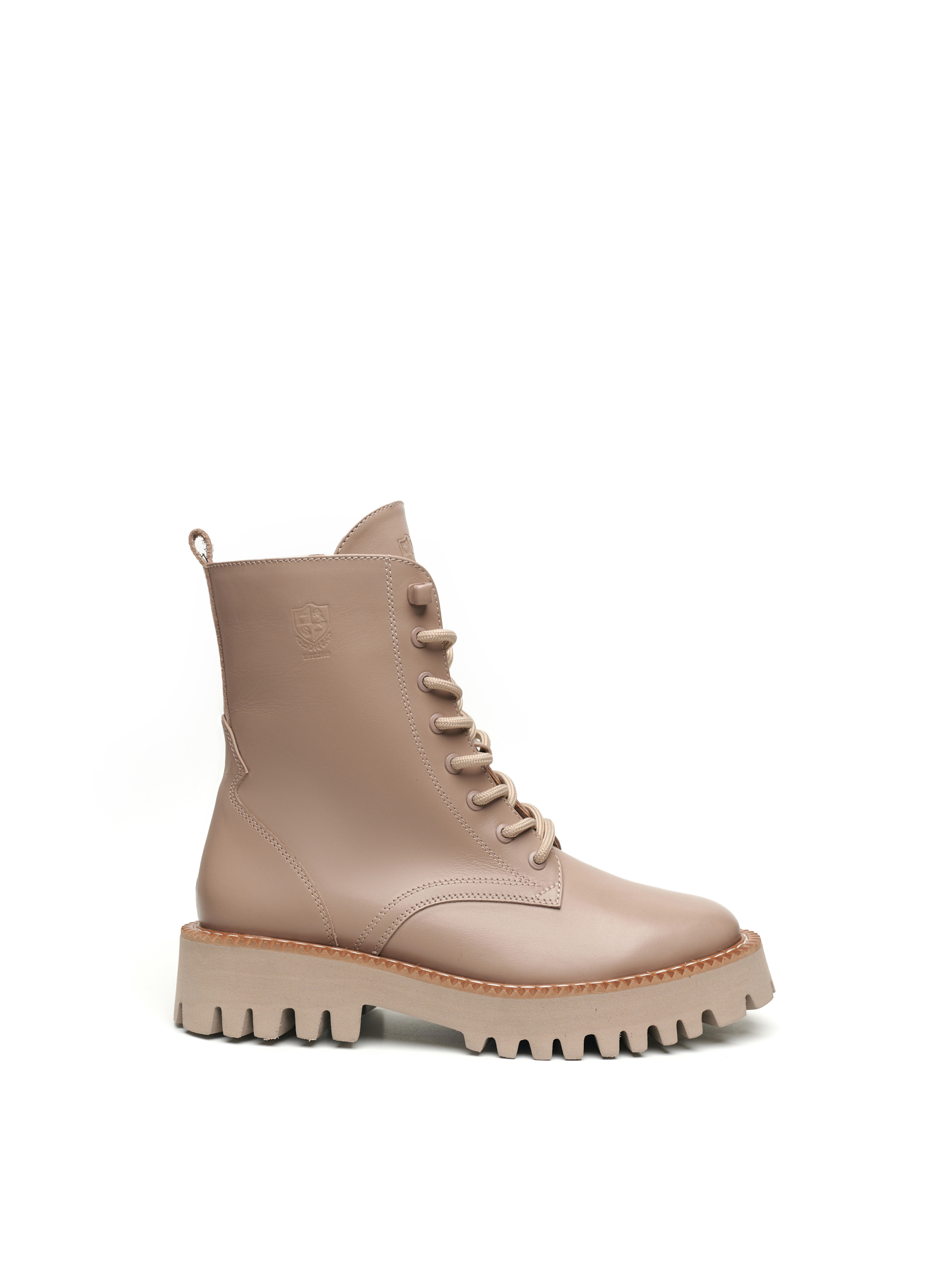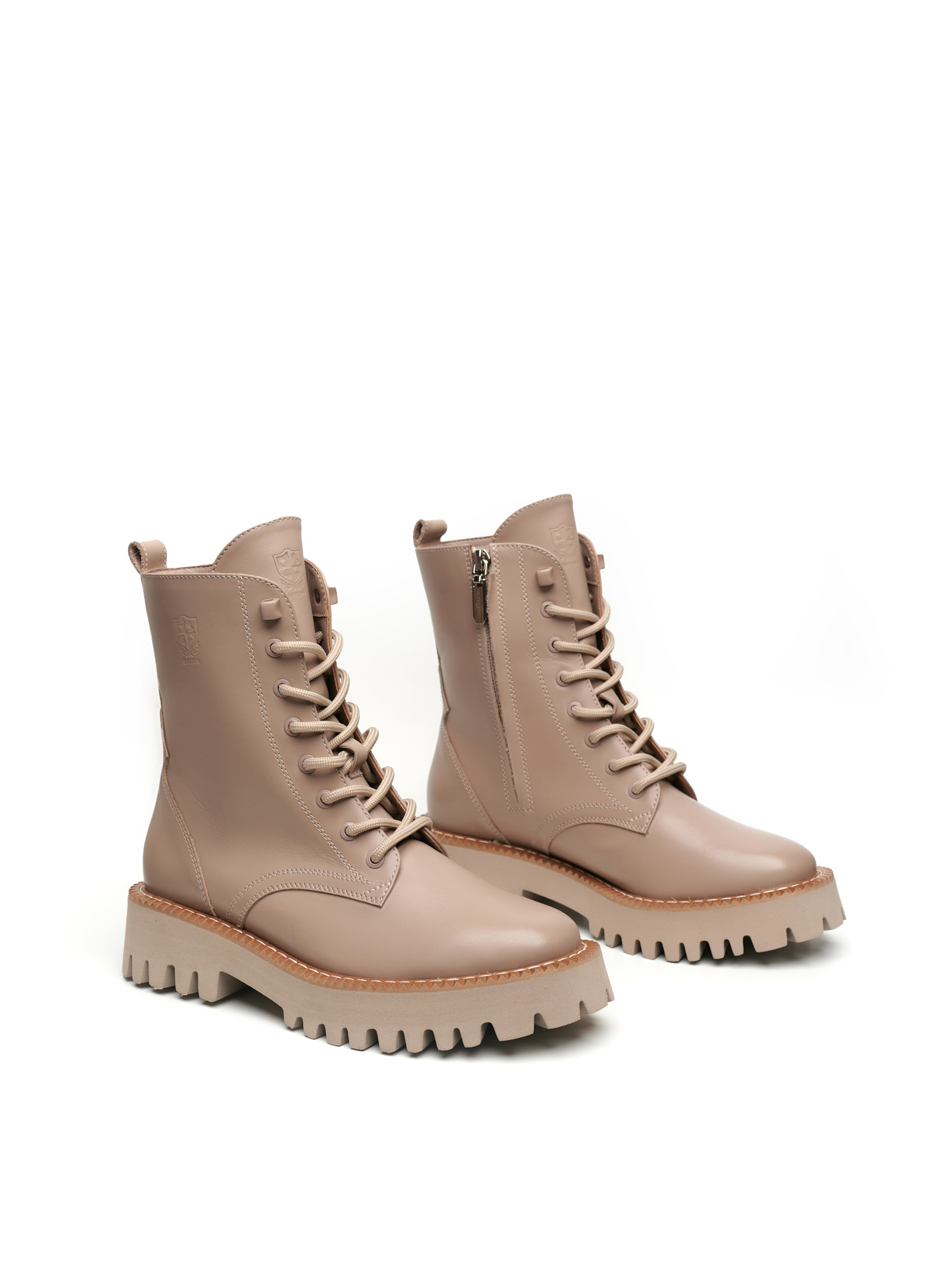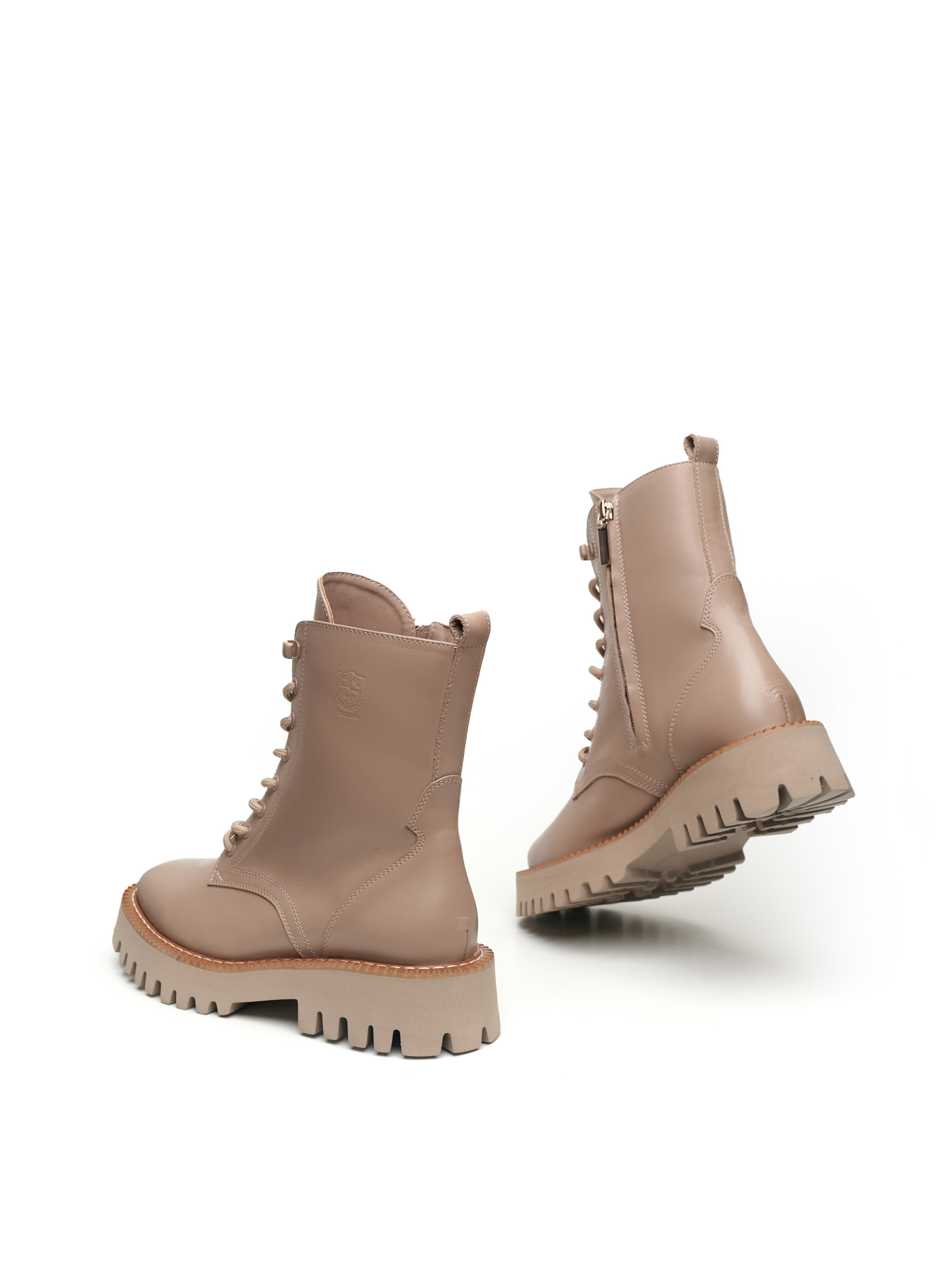 Бежеві жіночі черевики виготовлені з високоякісної шкіри, яка має природний блиск. Товста підошва 4 сантиметри з глибоко рифленою ходовою поверхнею, зможе запобігти ковзанню та буде чудовим захистом від вологи, у поєднанні з високими халявами взуття. Черевики щільно облягають ногу, а шнурівка і застібка-блискавка, з внутрішньої сторони, надає зручність і сучасний вигляд. Бренд Alex Bell для впевнених у собі особистостей!