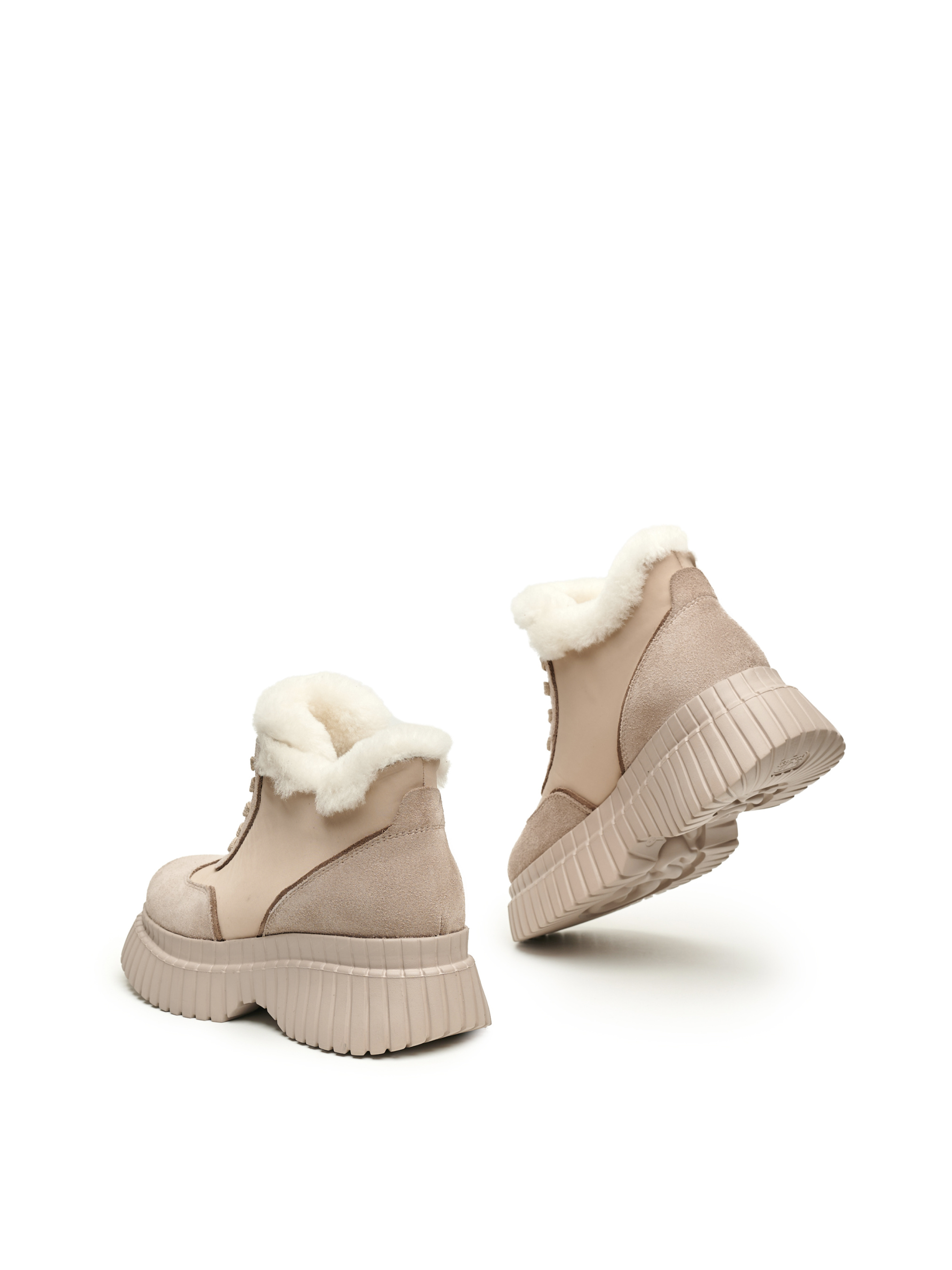 Набридли уггі? Хочеться виглядати менш банально і цікавіше? Тоді вас зацікавить ця пара черевиків від Alex Bell. Приємний колір бежевого відтінку, ідеальна італійська замша, зручна мінімалістична шнурівка і товста трендова підошва роблять модель оригінальною і незабутньою. На комфорт працюють такі характеристики, як анатомічність зручної колодки та якісне утеплення. Ця пара точно стане вашою улюбленою і дозволить створювати унікальні образи цієї зими!