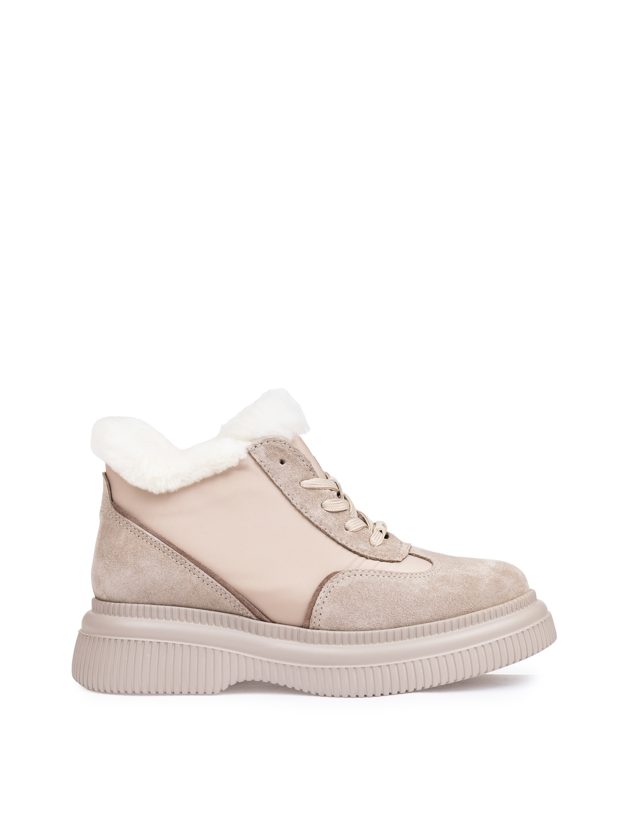Хочеться виглядати менш банально і цікавіше? Тоді вас зацікавить ця пара черевиків від Alex Bell. Приємний колір бежевого відтінку, ідеальна італійська замша, зручна мінімалістична шнурівка і товста трендова підошва роблять модель оригінальною і незабутньою. На комфорт працюють такі характеристики, як анатомічність зручної колодки та якісне утеплення. Ця пара точно стане вашою улюбленою і дозволить створювати унікальні образи цієї зими!