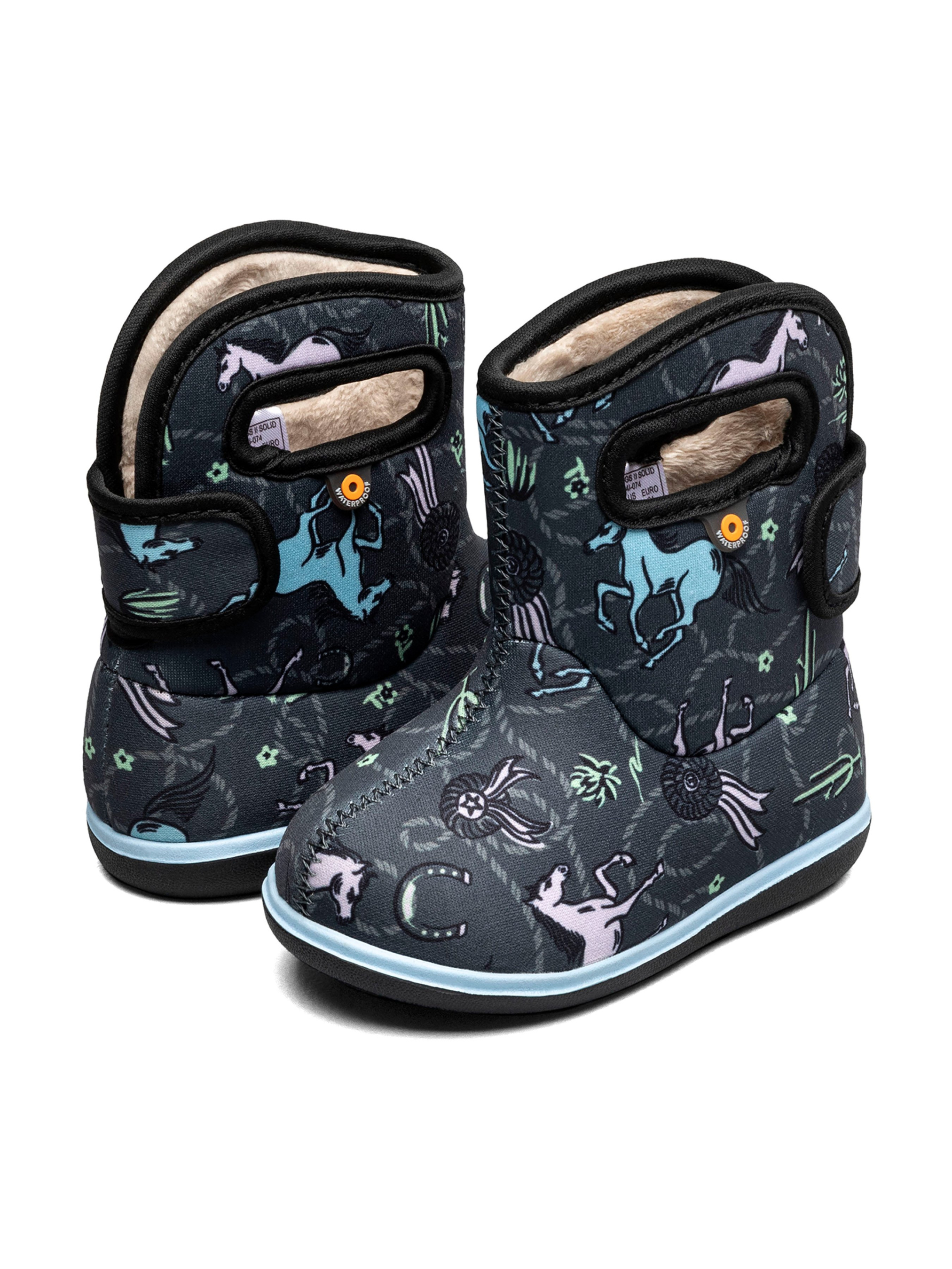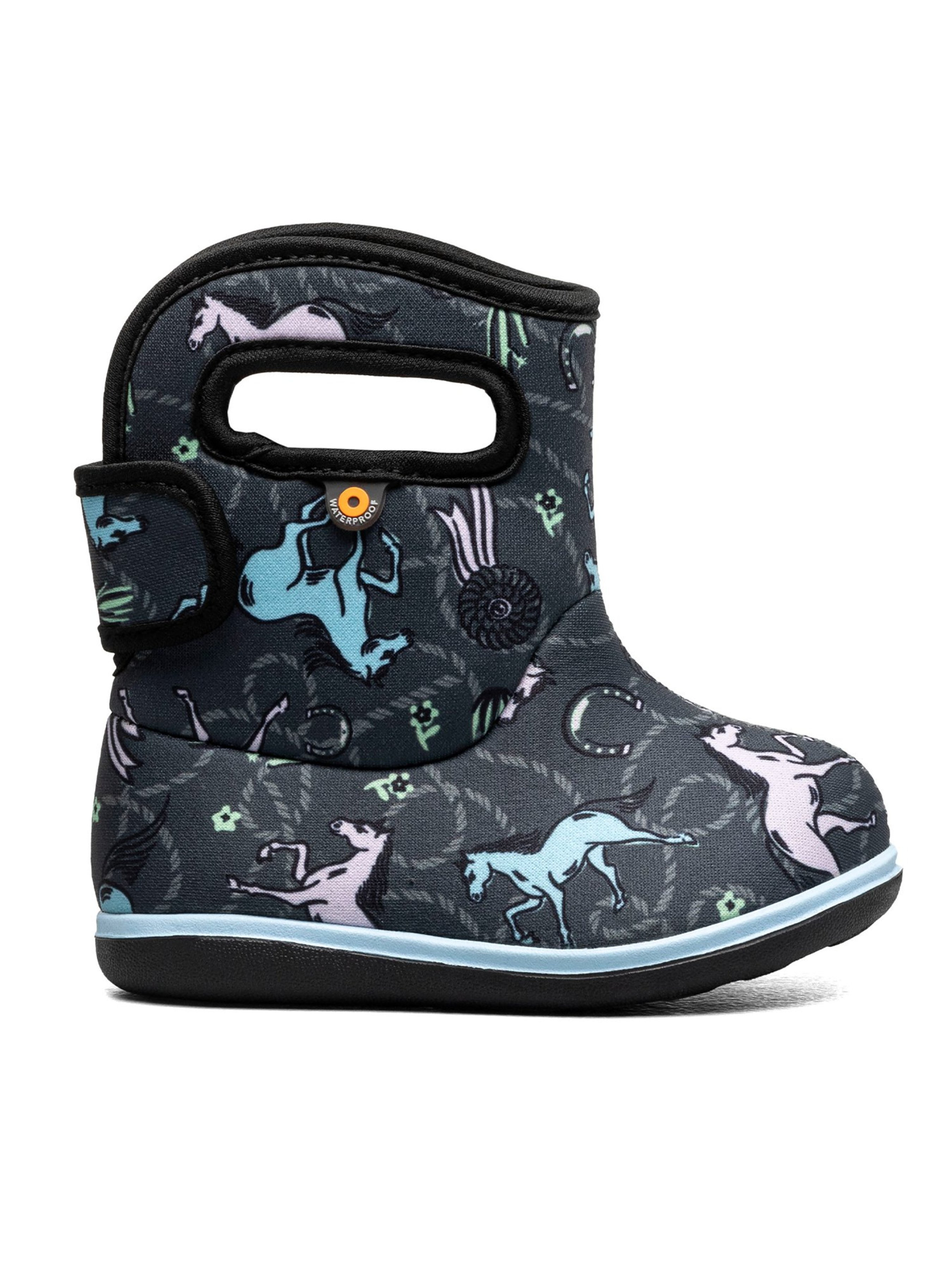 Водонепроникні чоботи Bogs "Baby Horses" виготовлені із 3 мм утеплювача Neo-Tech з м'якою плюшевою підкладкою.Особливості: в поєднанні з термошкарпетками зберігають тепло і комфорт до -10°С DuraFresh – екологічна біотехнологія, що запобігає появі неприємного запаху Max-Wick – технологія, яка сприяє швидкому відведенню поту, щоб ніжки залишалися сухими застібка-липучка для комфортної посадки на ніжці легко надягати за допомогою "отворів-ручок" каучукова підошва стійка до низьких температур дозволене прання в пральній машині (max 30°С). Технології Bogs: 100% Waterproof Waterproof 100% водонепроникність взуття гарантує сухість і комфорт незалежно від погодних умов і пори року. Neo-Tech Neo Tech Інноваційний утеплювач, при якому взуття залишається максимально еластичним. Чоботи Bogs "Baby Horses" ідеально підходять для активного відпочинку в будь-яких погодних умовах. Подаруйте своїй дитині щасливе дитинство, сповнене неймовірними відкриттями з взуттям від американського бренду Bogs.
