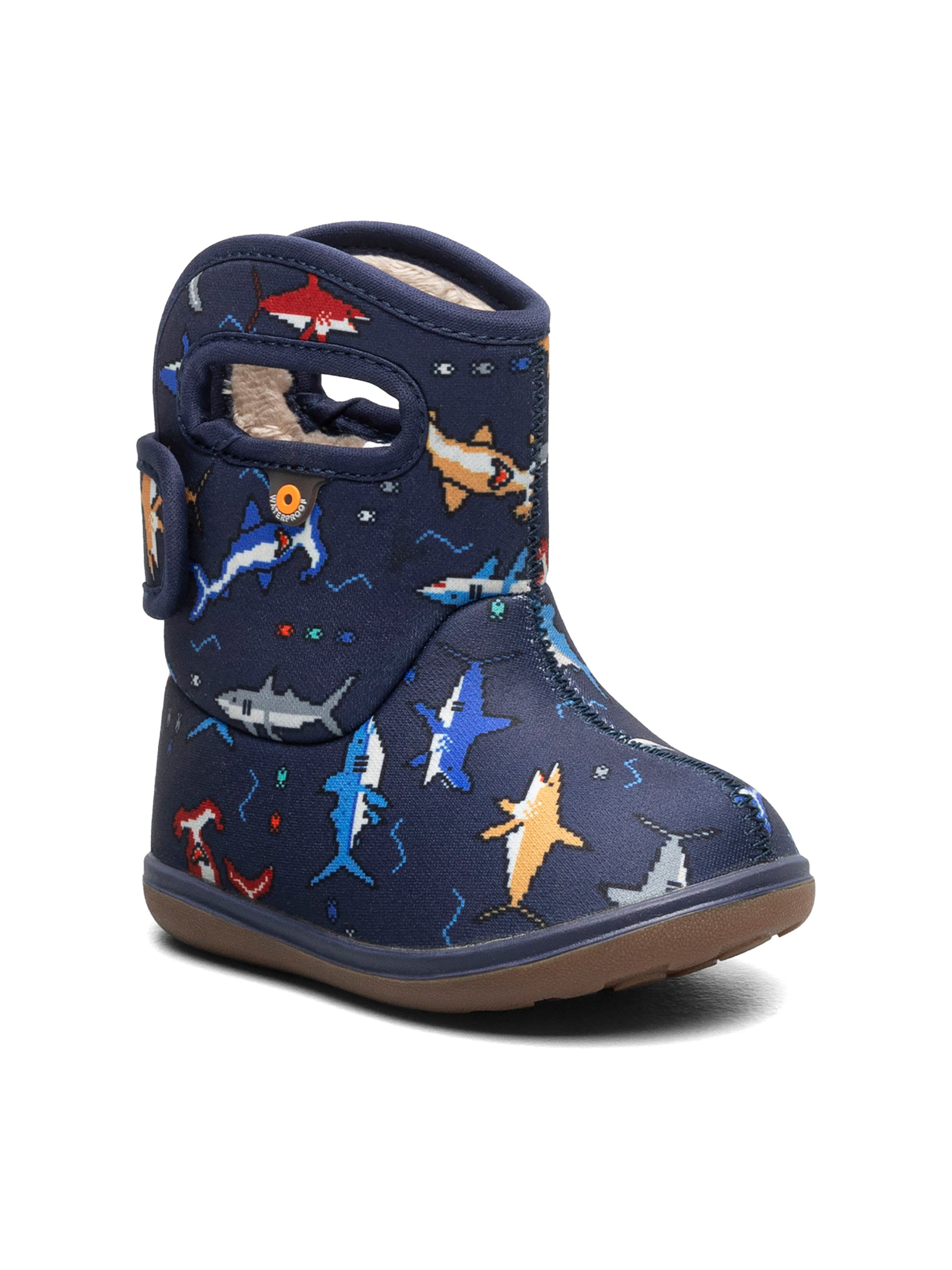 Водонепроникні чоботи Bogs "Baby Pixel Shark" виготовлені із 3 мм утеплювача Neo-Tech з м'якою плюшевою підкладкою.Особливості: в поєднанні з термошкарпетками зберігають тепло і комфорт до -10°С DuraFresh – екологічна біотехнологія, що запобігає появі неприємного запаху Max-Wick – технологія, яка сприяє швидкому відведенню поту, щоб ніжки залишалися сухими застібка-липучка для комфортної посадки на ніжці легко надягати за допомогою "отворів-ручок" каучукова підошва стійка до низьких температур дозволене прання в пральній машині (max 30°С). Технології Bogs: 100% Waterproof Waterproof 100% водонепроникність взуття гарантує сухість і комфорт незалежно від погодних умов і пори року. Neo-Tech Neo Tech Інноваційний утеплювач, при якому взуття залишається максимально еластичним. Чоботи Bogs "Baby Pixel Shark" ідеально підходять для активного відпочинку в будь-яких погодних умовах. Подаруйте своїй дитині щасливе дитинство, сповнене неймовірними відкриттями з взуттям від американського бренду Bogs.