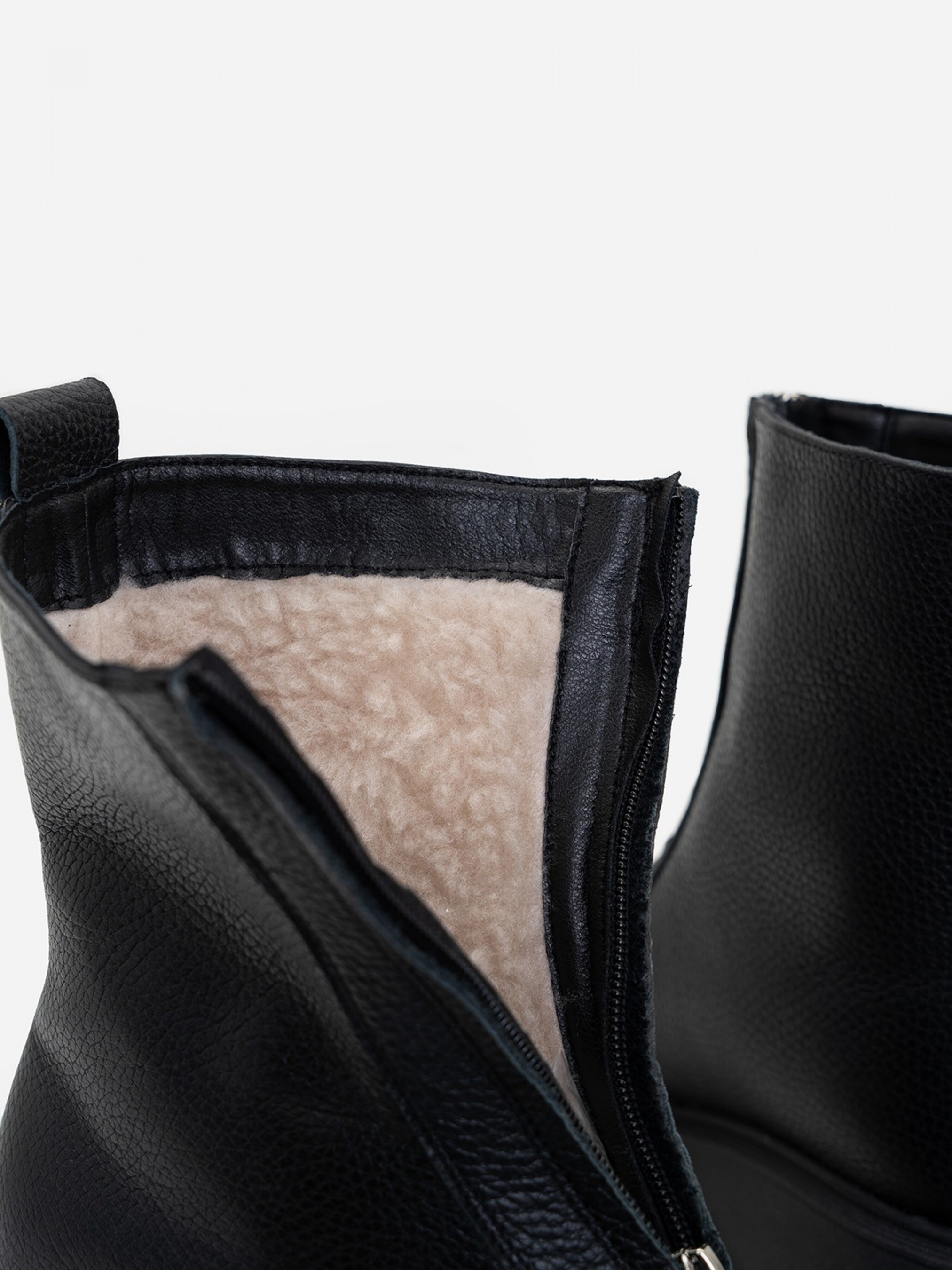 Матеріал верху: натуральна шкіра.Підклад: штучне хутро. Підошва: ТР (термопластична гума)Висота підошви: 4 та 3 см.Висота черевика: 16 см.Наявність змійки: так. Матеріал: шкіра./хутро.. 36 (23,5), 37 (24), 38 (24,5), 39 (25,5), 40 (26), 41 (26,5)