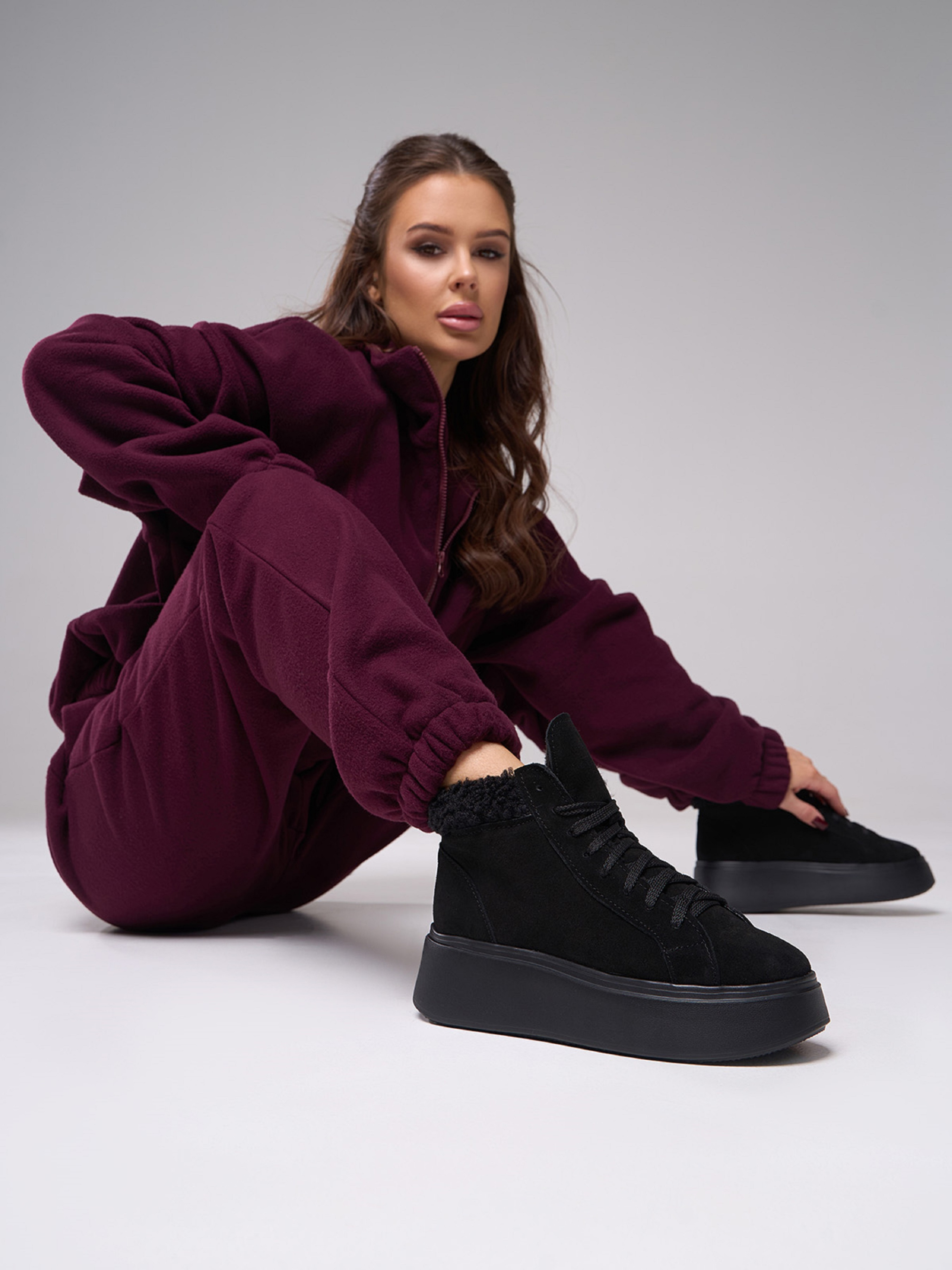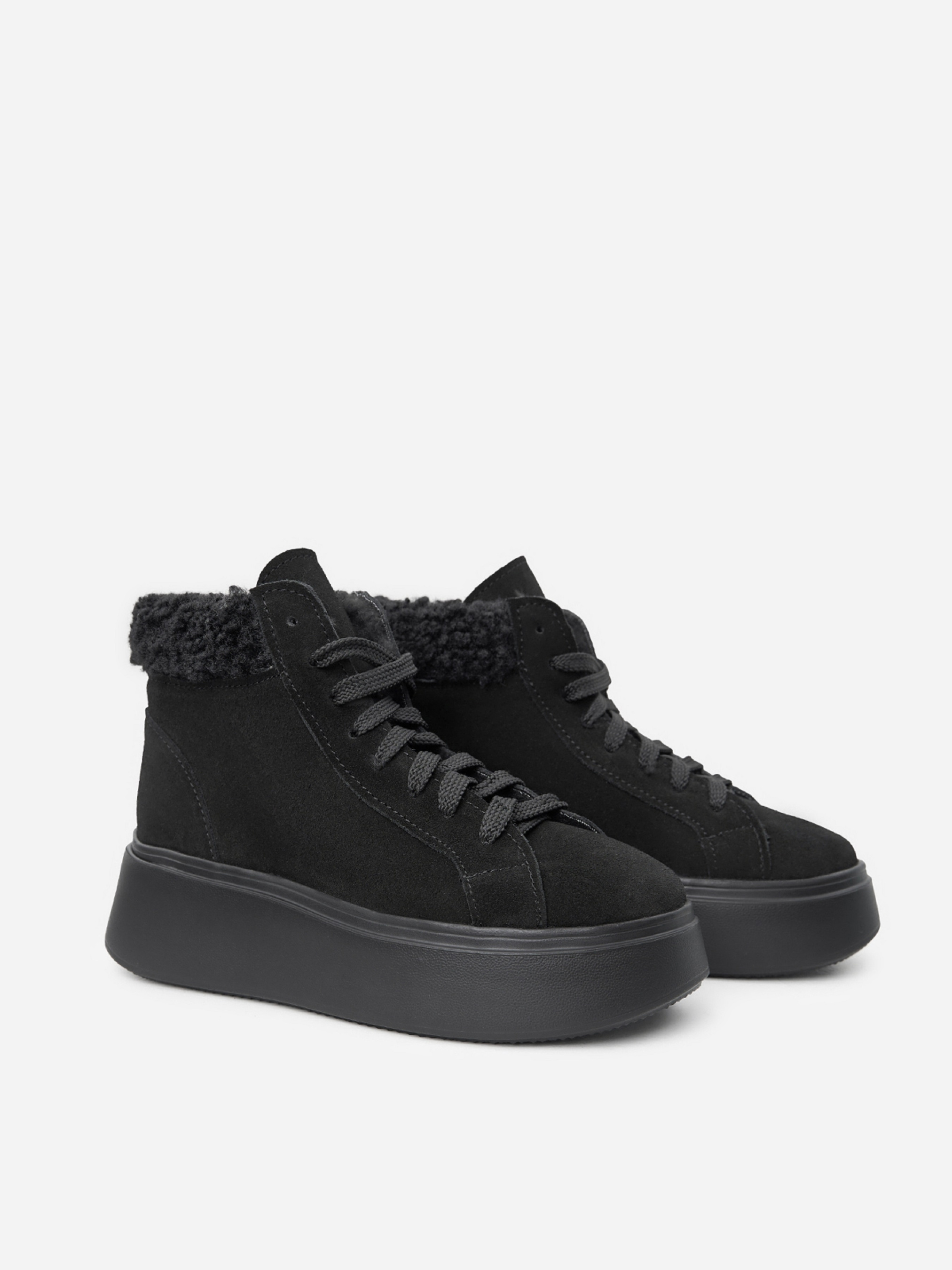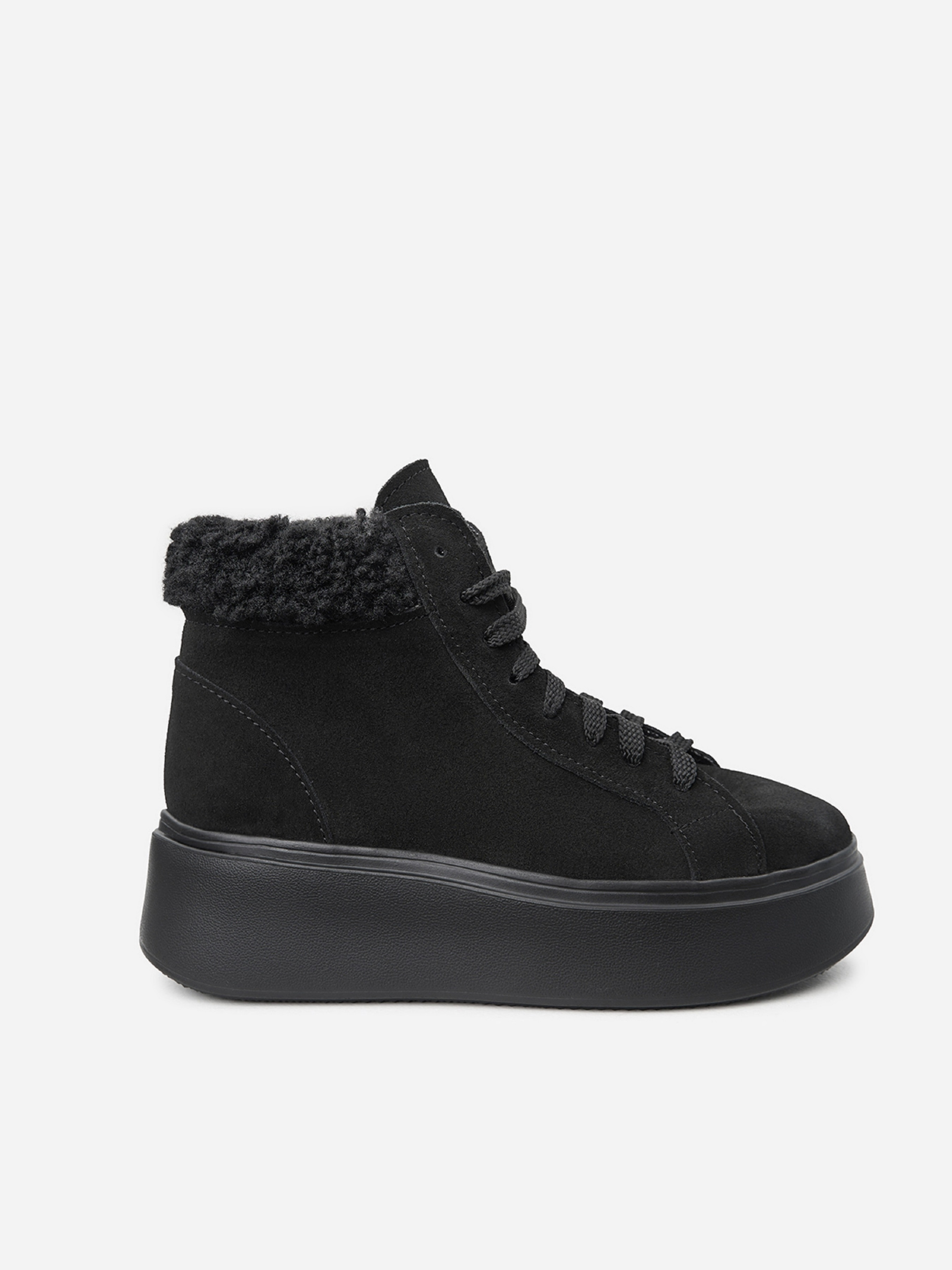 Утеплені хутром замшеві черевики на платформі. Модель з хутряним манжетом та шнурівкою. Матеріал верху: натуральна замша. Підклад: хутро штучне. Підошва: Ева. Висота підошви: 5,5 см та 4 см. Висота черевиків: 10,5 см. Заміри: 36 (23,5), 37 (24), 38 (24,5), 39 (25), 40 (25,5), 41 (26)