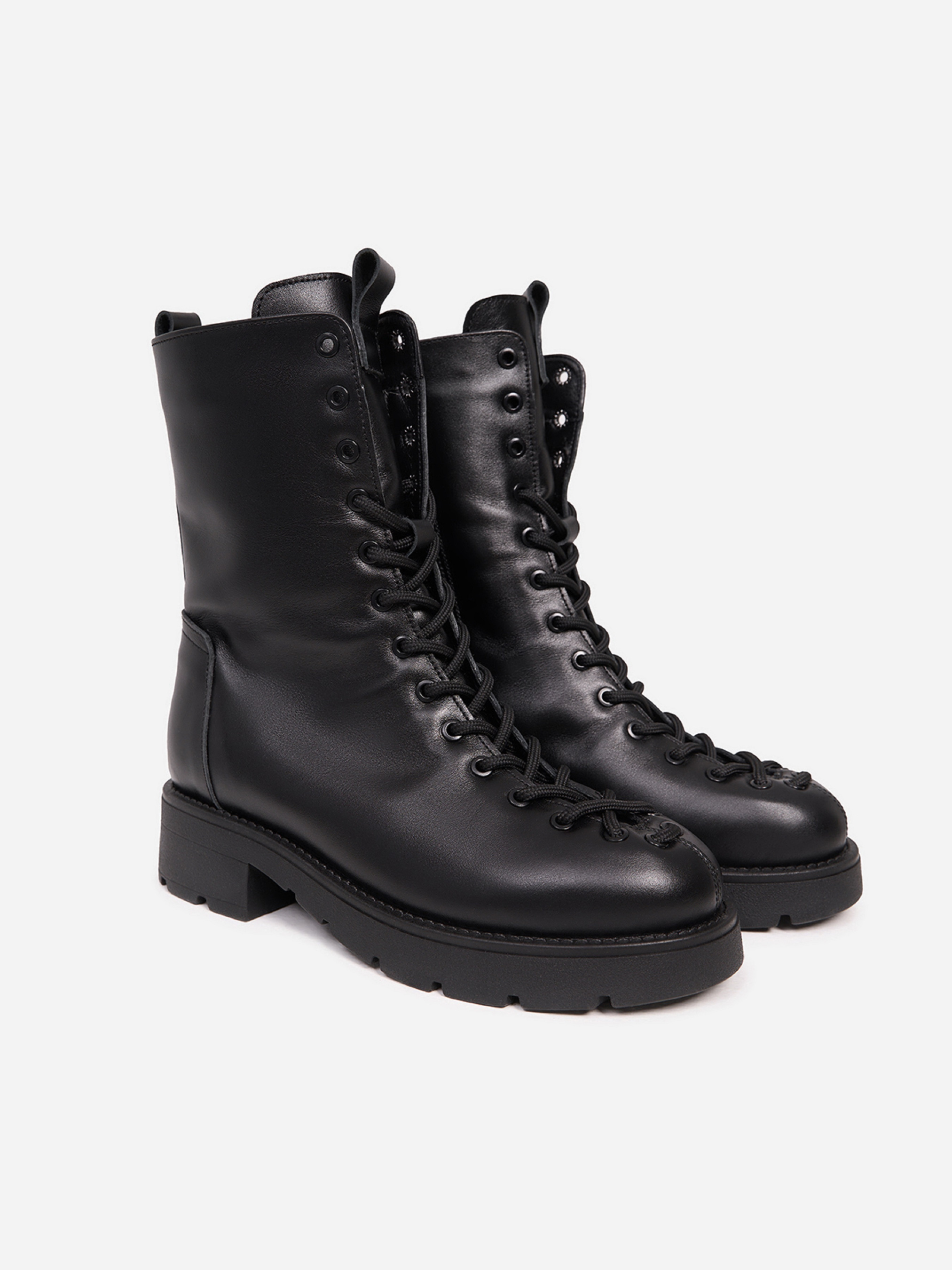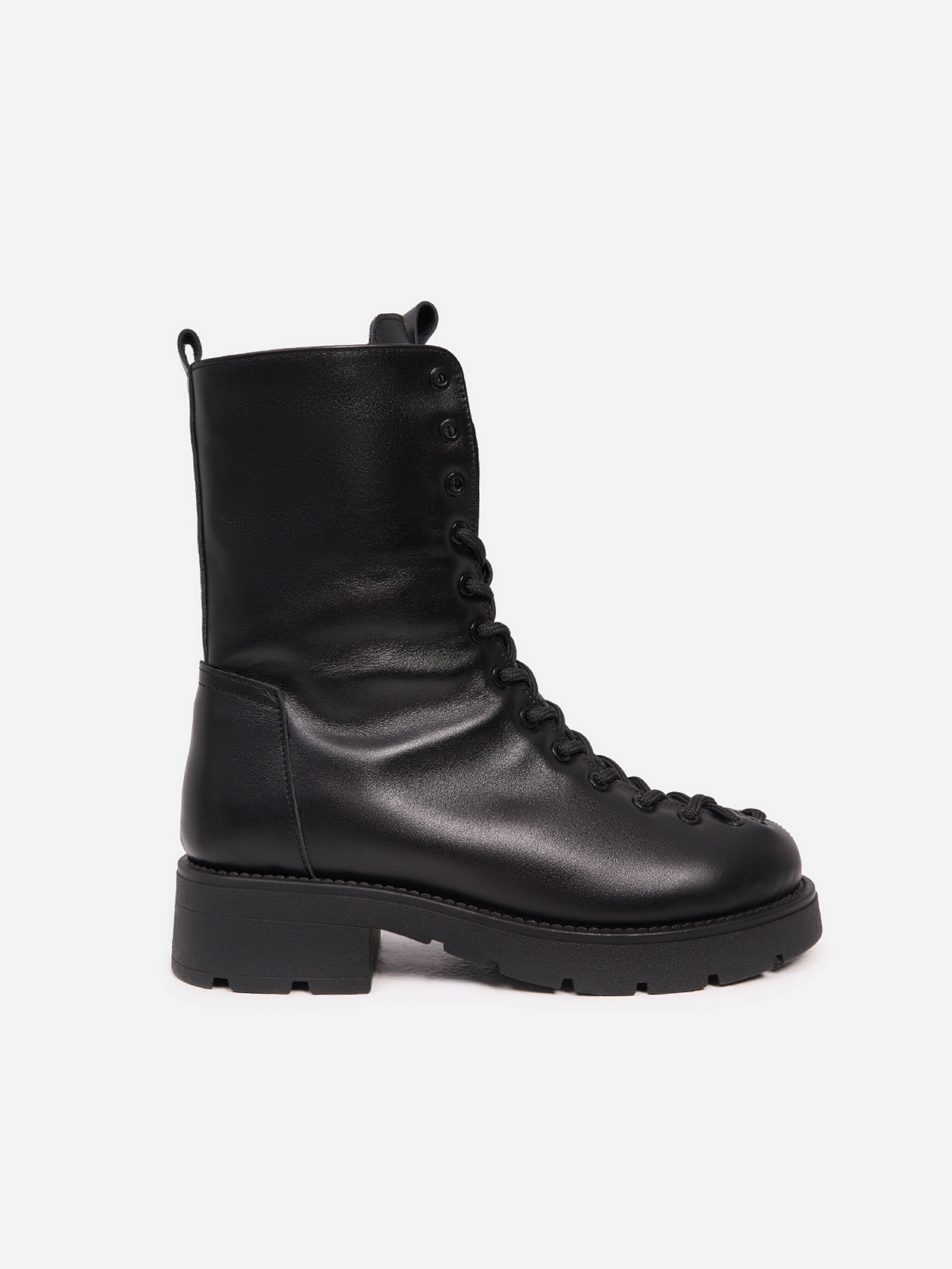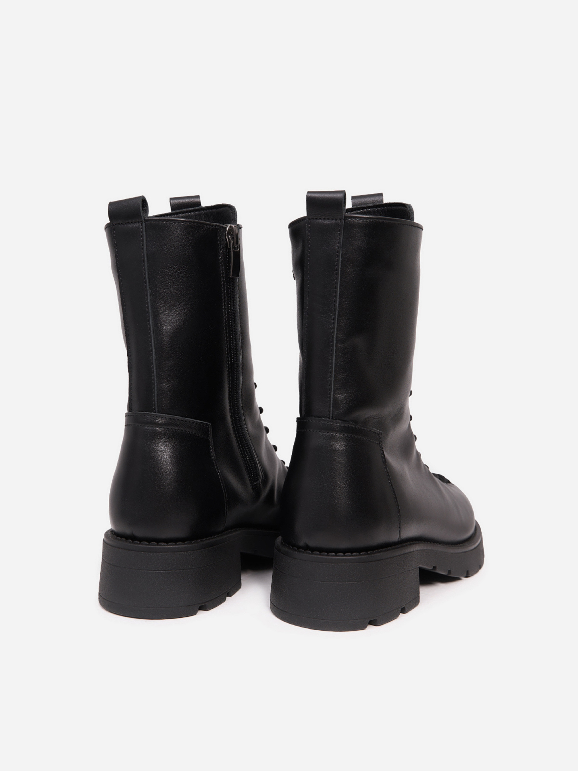 Чорні полегшені черевики з натуральної шкіри на хутрі. Модель зі шнурівкою та бічною блискавкою оснащена високою підошвою з низьким підбором. Матеріал верху: натуральна шкіра. Підклад: хутро штучне. Підошва: TR (терморезина полегшена). Висота підошви: 4,5см та 2 см. Висота черевиків: 19 см. Заміри: 36 (23,5), 37 (24), 38 (24,5), 39 (25), 40 (25,5), 41 (26)