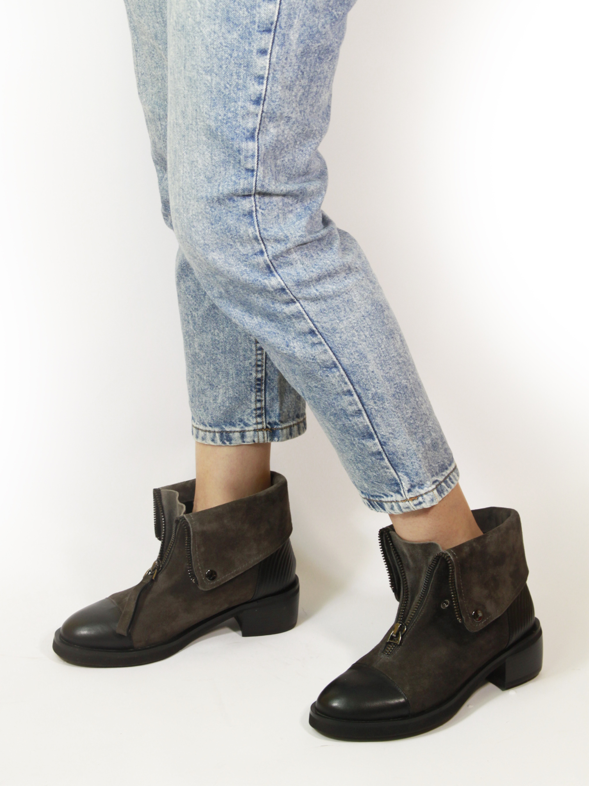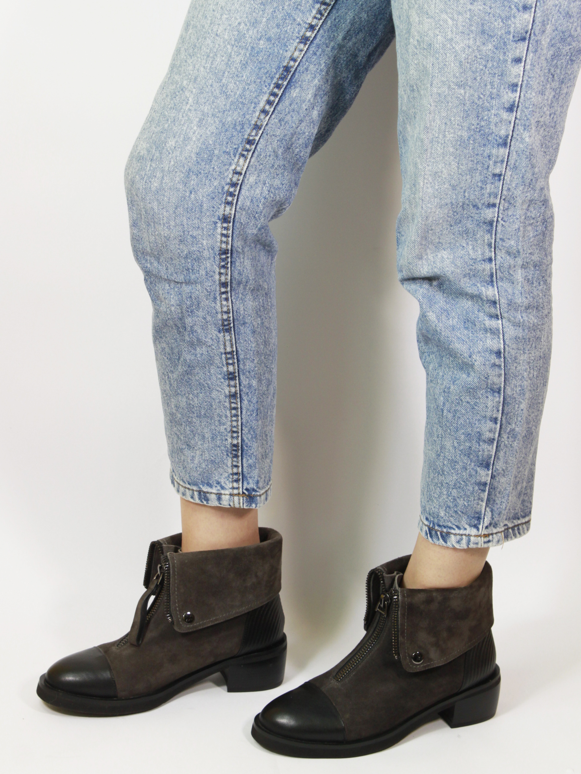 Жіночі замшеві черевики з декоративним відворотом та блискавкою модель X250-L83-R-4