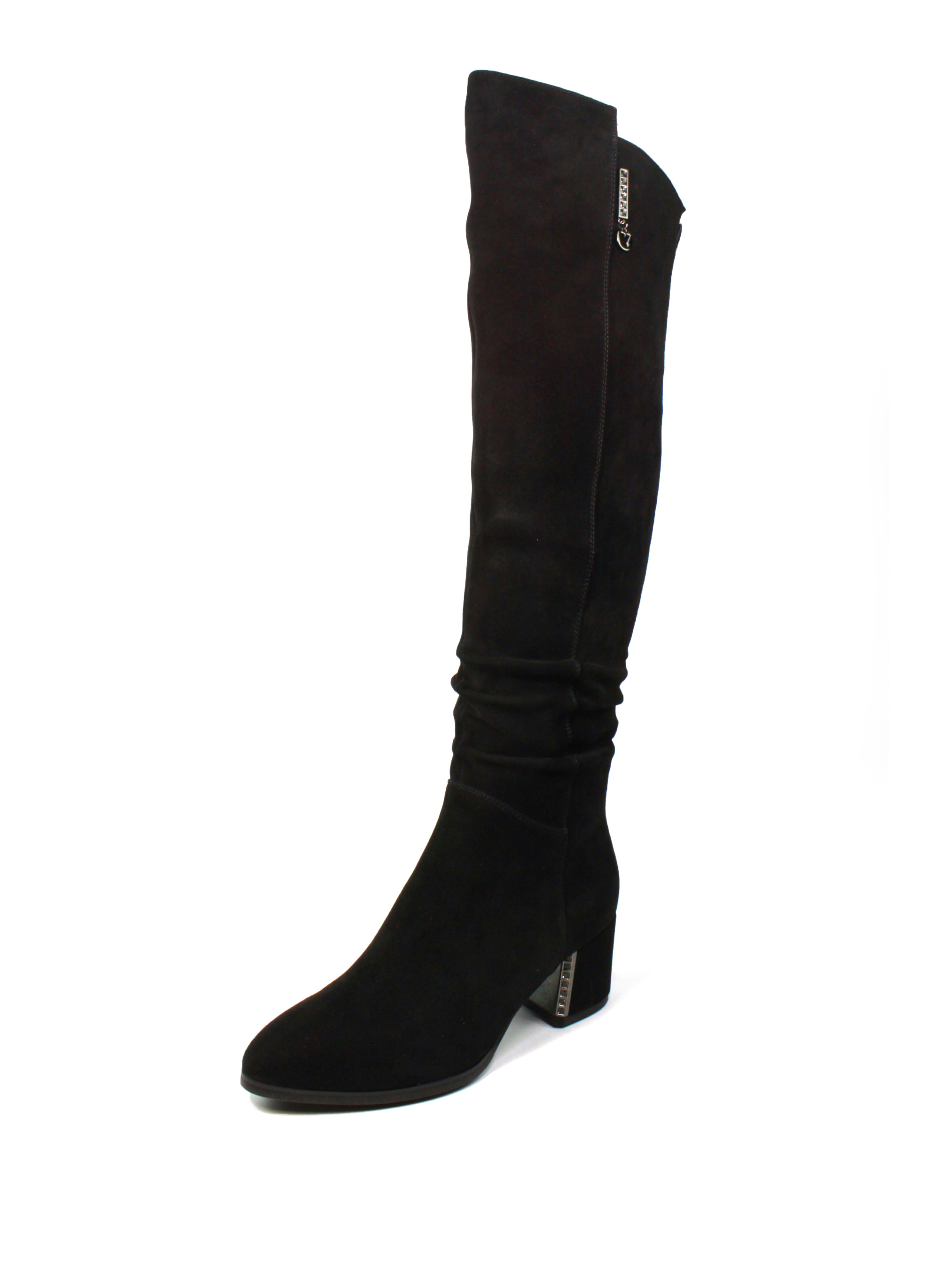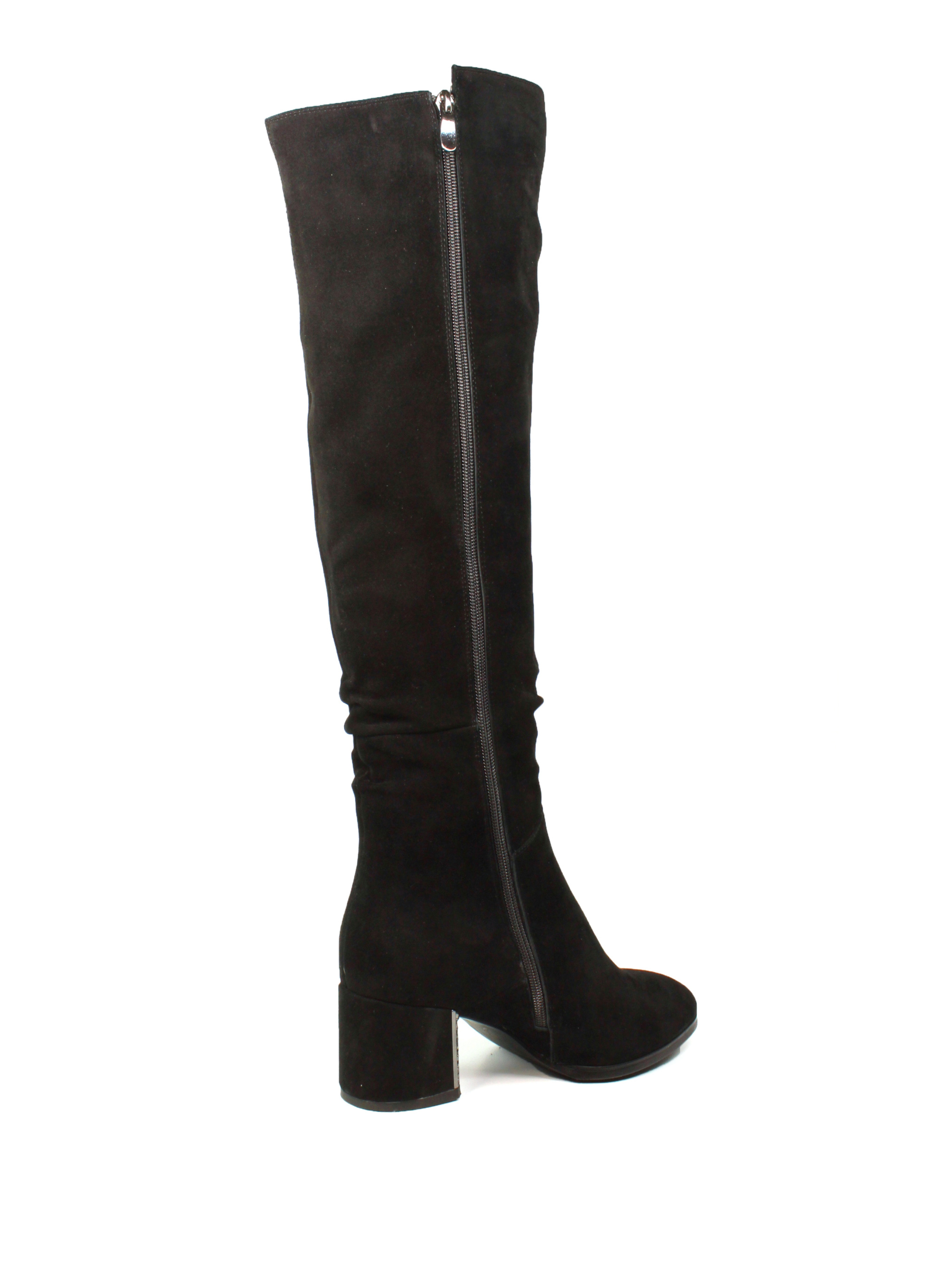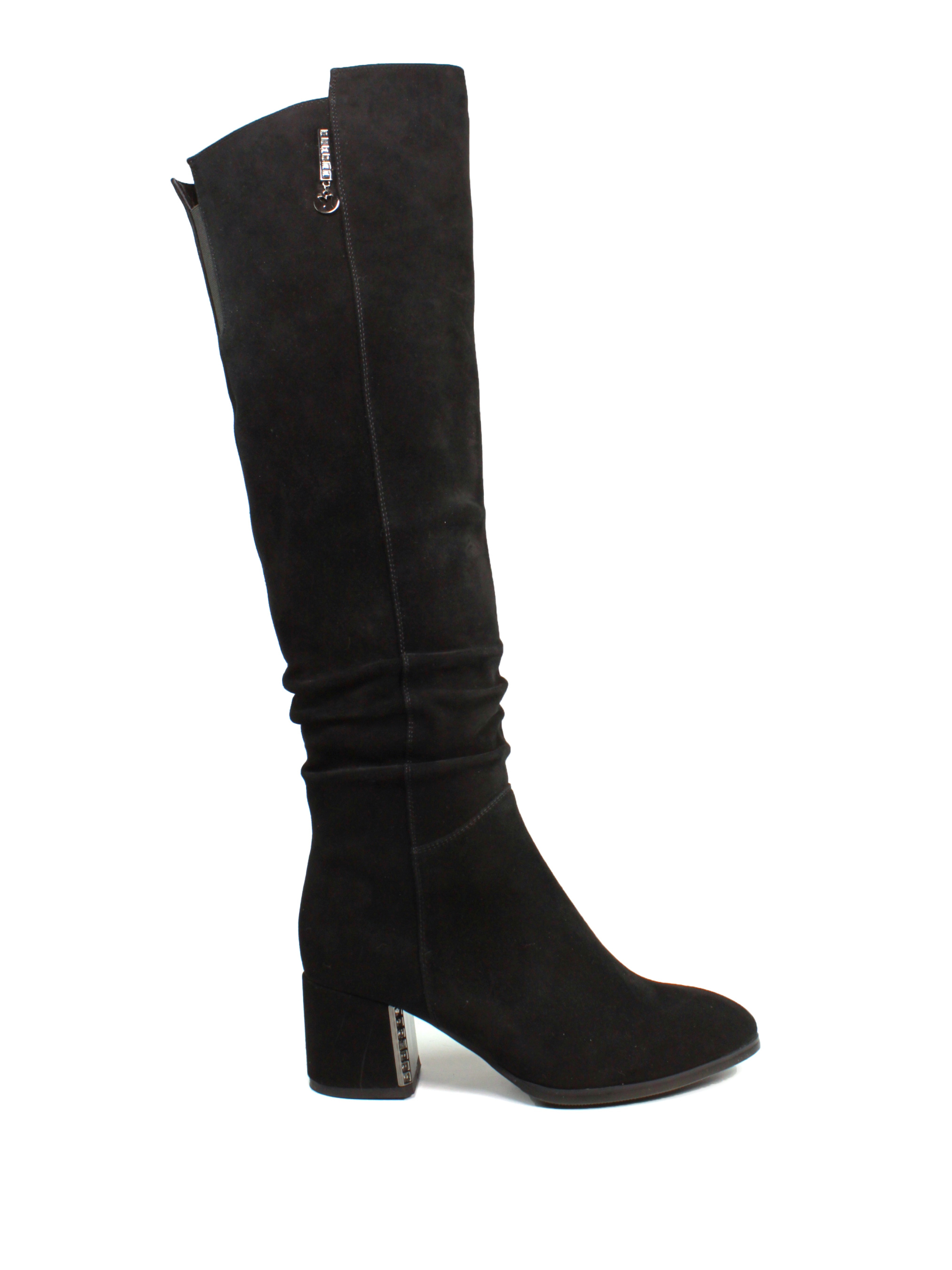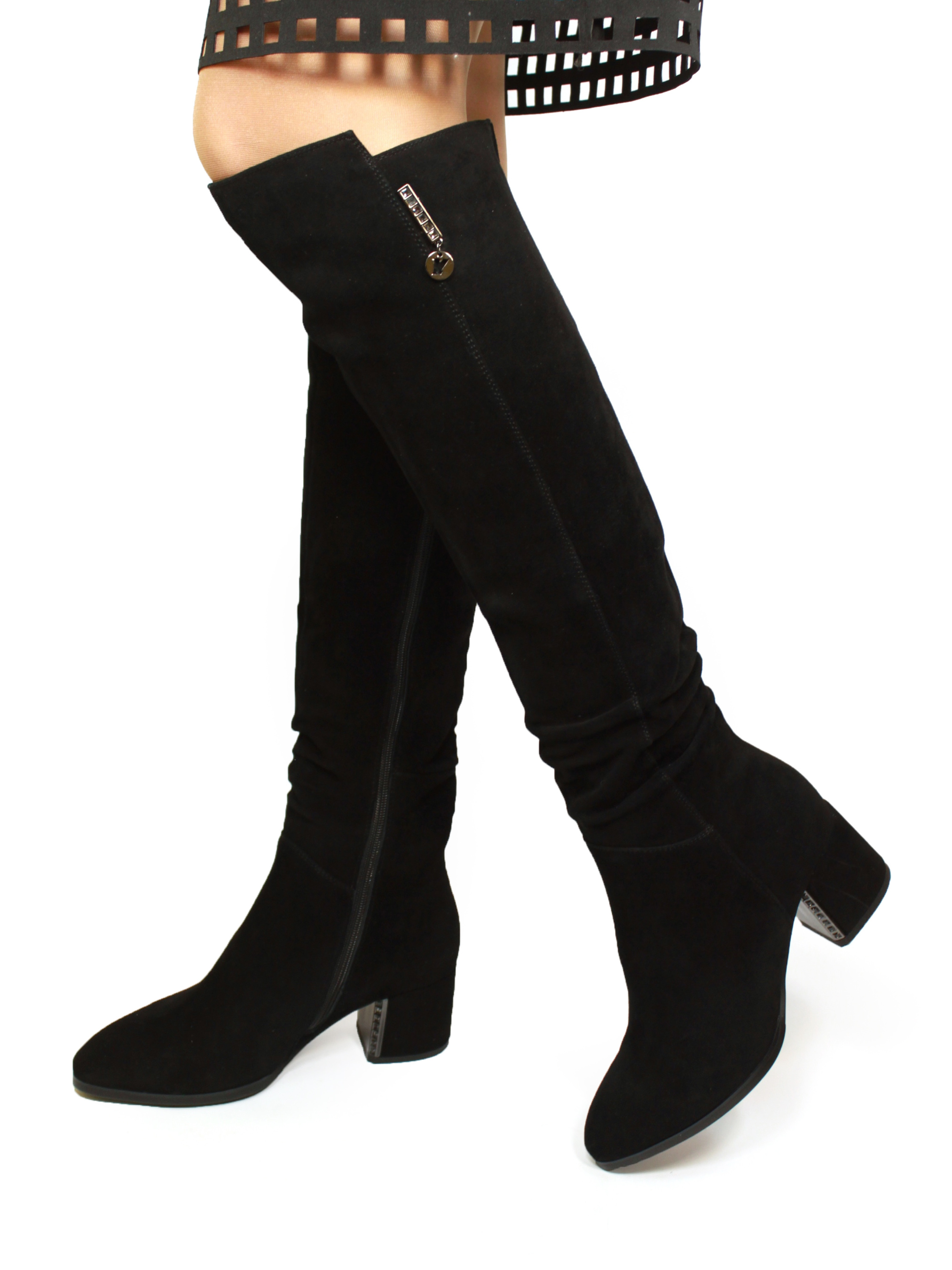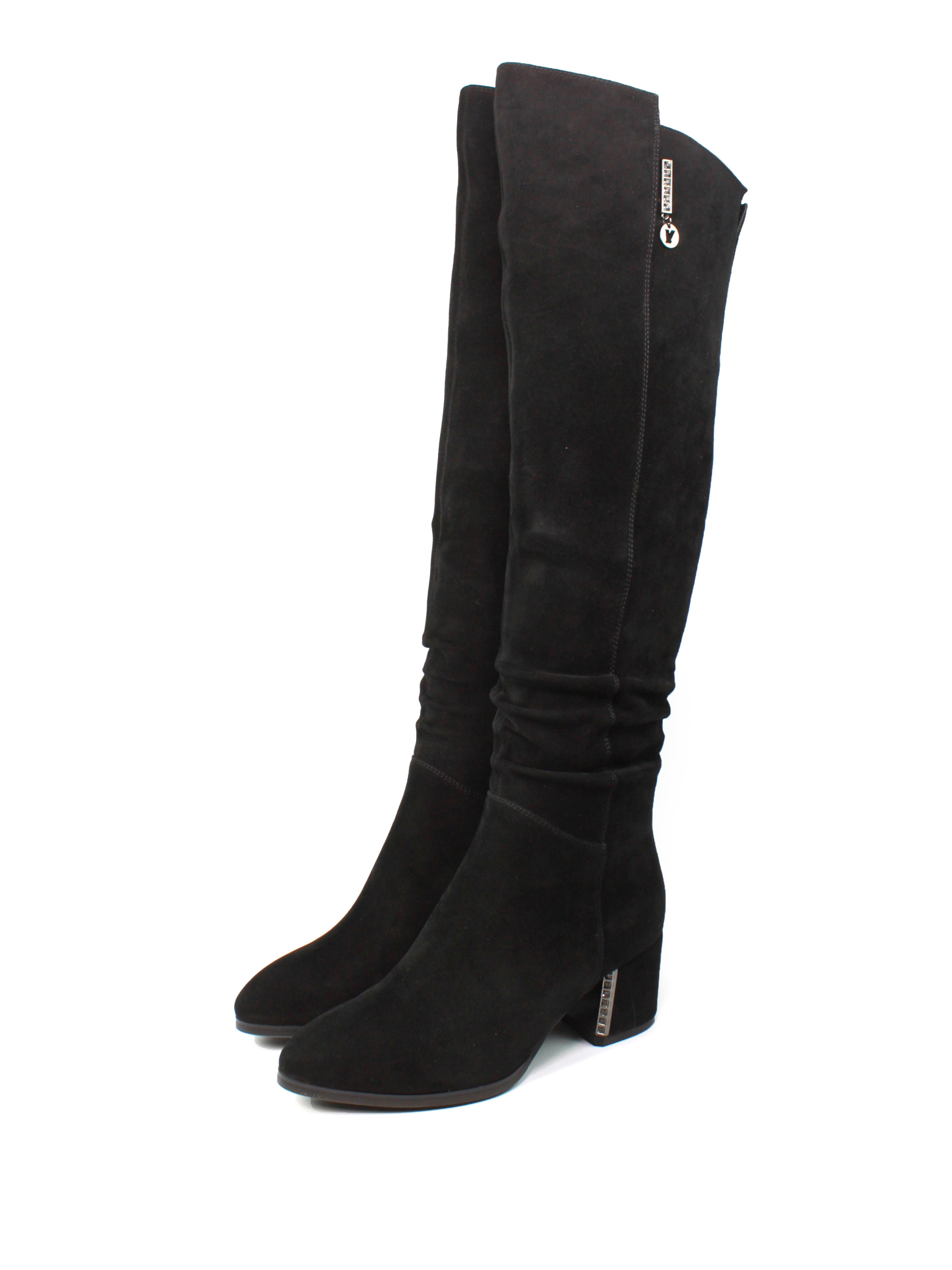 Елегантні чорні чоботи з натуральної замші стануть незамінним доповненням вашого зимового гардероба. М'який матеріал верху та акуратні збірки додають витонченості. Широкий стійкий каблук забезпечує комфорт під час ходьби, а мінімалістичний дизайн дозволяє легко поєднувати цю модель з будь-яким стилем. Ідеально підходять як для повсякденного образу, так і для святкових подій. Матеріал верху: натуральна замша. Колір: чорний. Підошва: гнучка, із термополіуретану. Каблук: широкий, висотою 6 см. Розмірна сітка: 36р-23,5 см 37р-24 см 38р-24,5 см 39р-25 см 40р-25,5 см 41р-26 см.