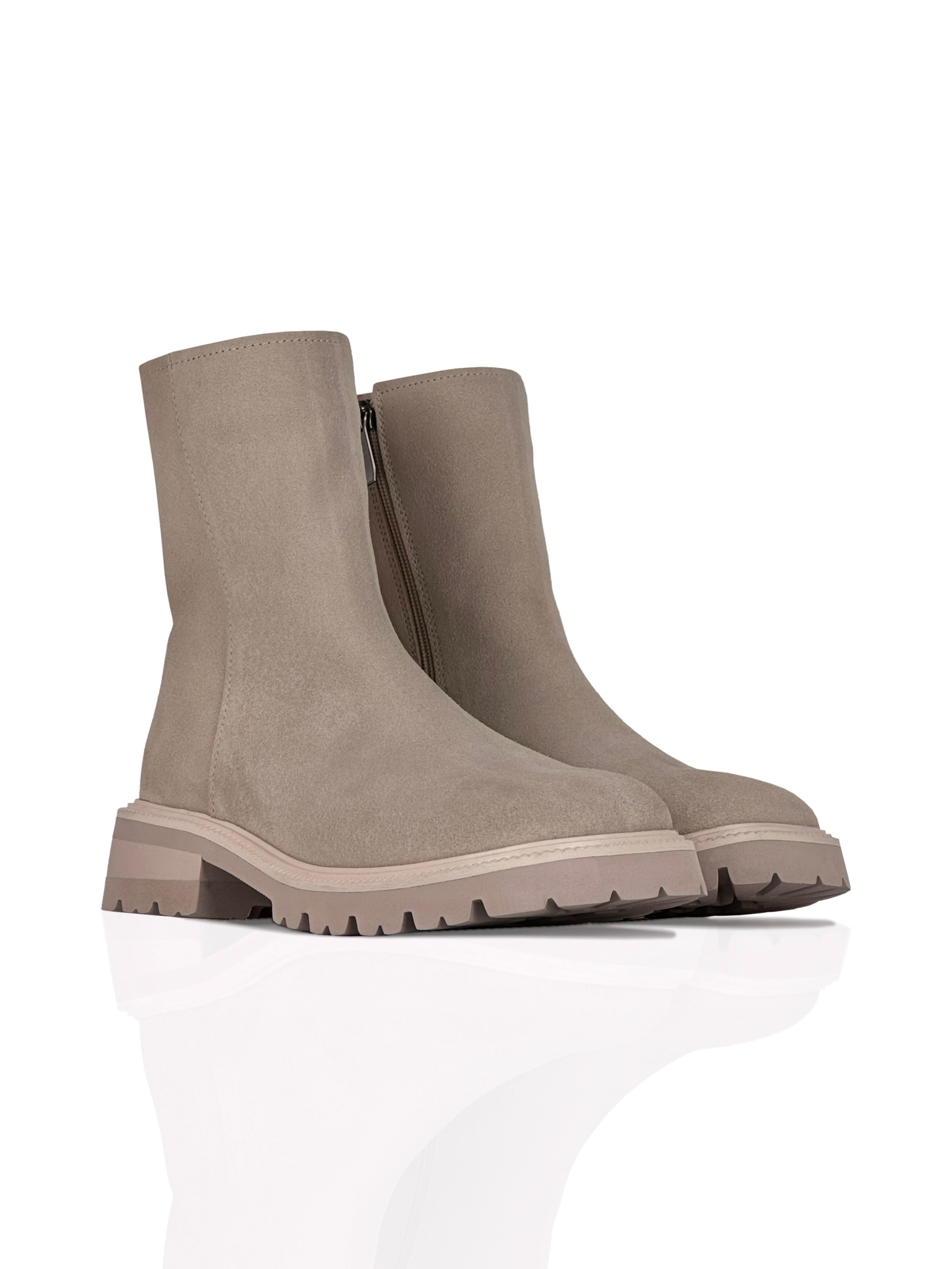 Зовнішній матеріал: Спилок-замша — натуральна шкіра, що отримується в процесі шарування, після зняття лицьового шару шкіри. Має м’яку, бархатисту поверхню, характеризується легкістю, порівняною водостійкістю та повітропроникністю, добре зберігає тепло всередині взуття. Спилок зовні схожий на велюр, але відрізняється більшою щільністю.
