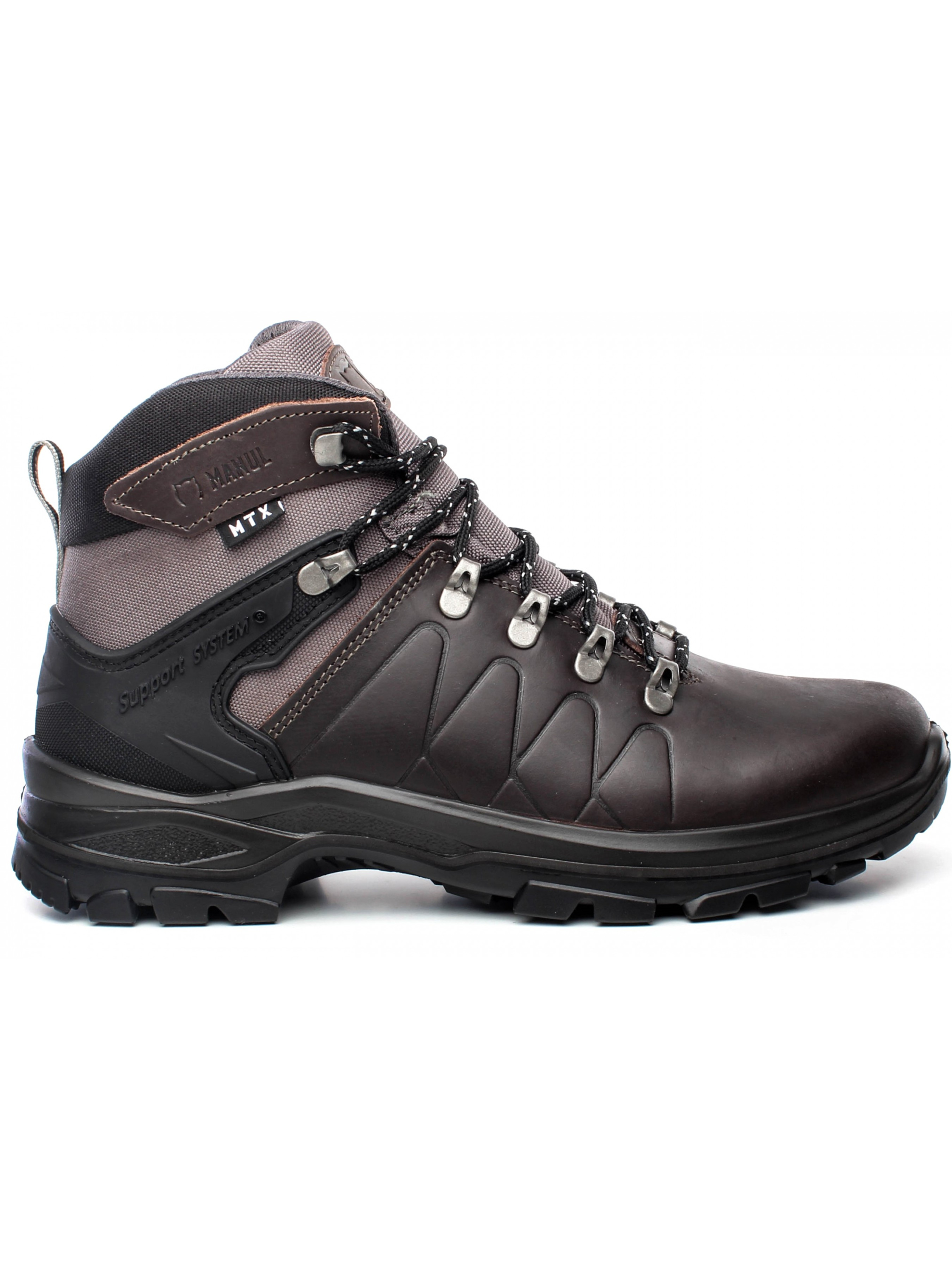 Шкіряні черевики Pangolin від бренду Manul виготовлені з високоякісних матеріалів по новітнім технологіям. Мають універсальний та базовий дизайн. Оснащені мембраною МТХ, є водонепроникною та повітропроникною, що робить їх ідеальними для будь-яких погодних умов. Система легкої фіксації та технологія Support System зменшує завалення стопи. Також передбачено посилення носка поліуретаном. Всередині розташована спеціальна технологічна 3D AIR сіточка, яка утворює повітропроникність й циркуляцію. Устілка Arch, є ідеальною для правильного положення, створена з урахуванням анатомії стопи для максимальної підтримки. Технологія R-system – це жорсткий нейлоновий супінатор, який перешкоджає скручуванню й деформації, та забезпечує комфорт. Зовнішня підошва ефективно поглинає та пом'якшує удар, має рельєфний малюнок для зчеплення із будь-якою поверхнею.