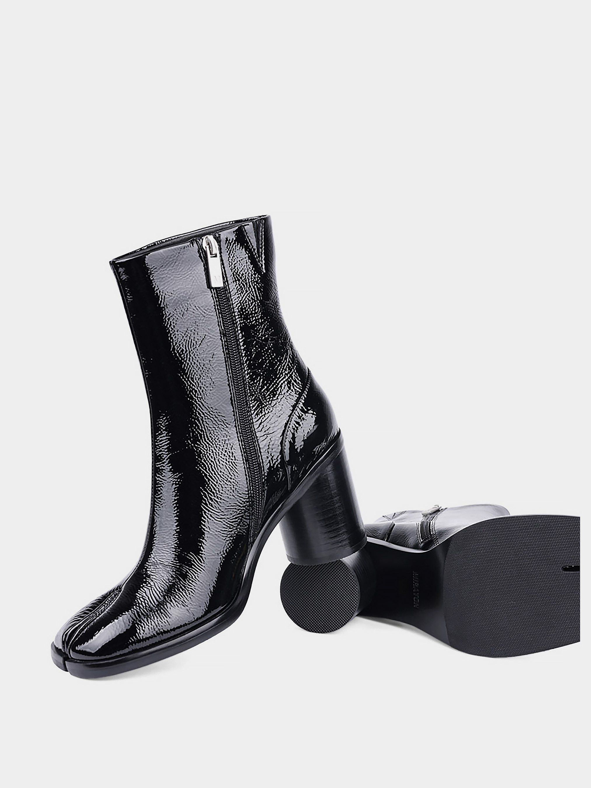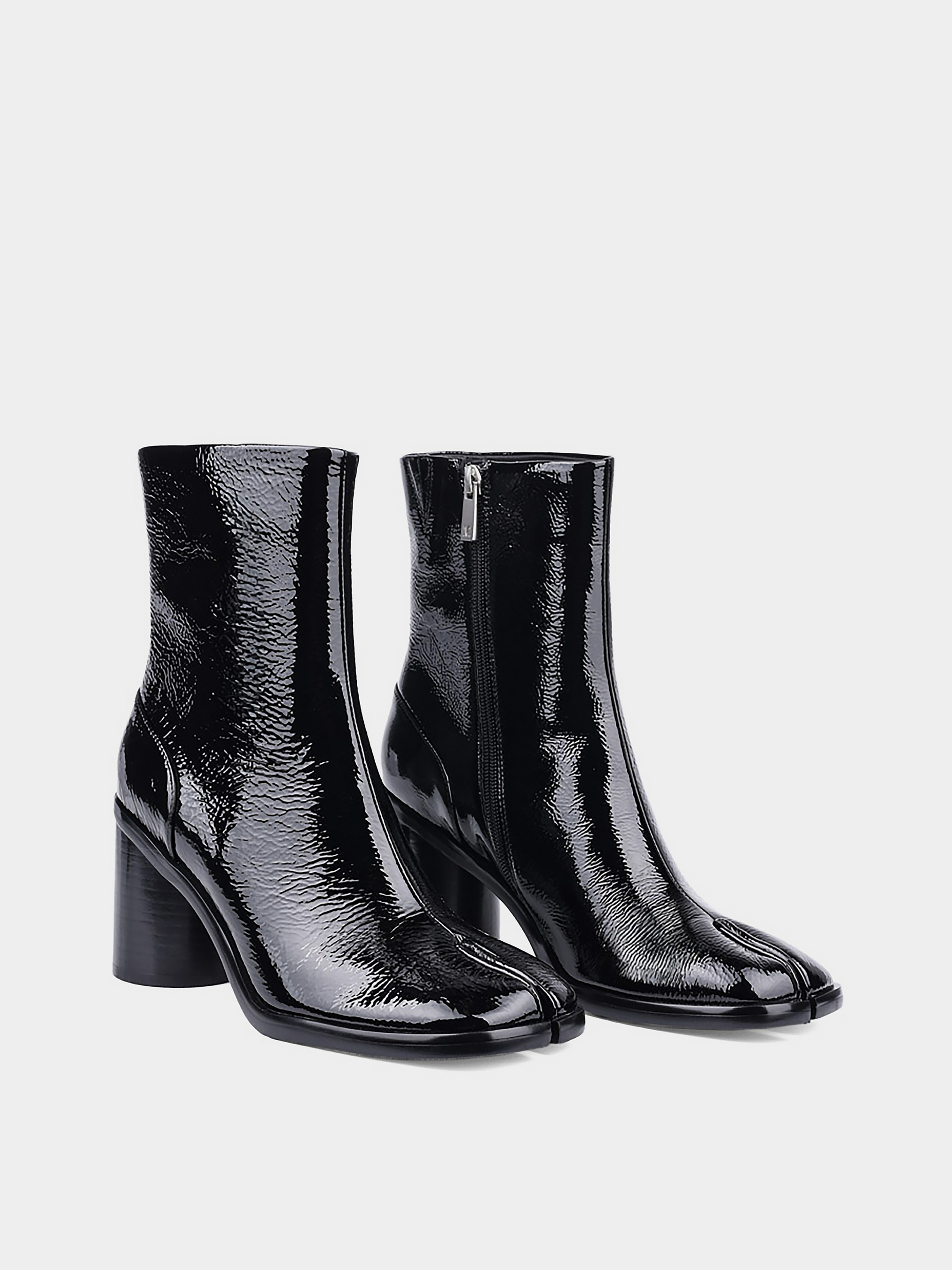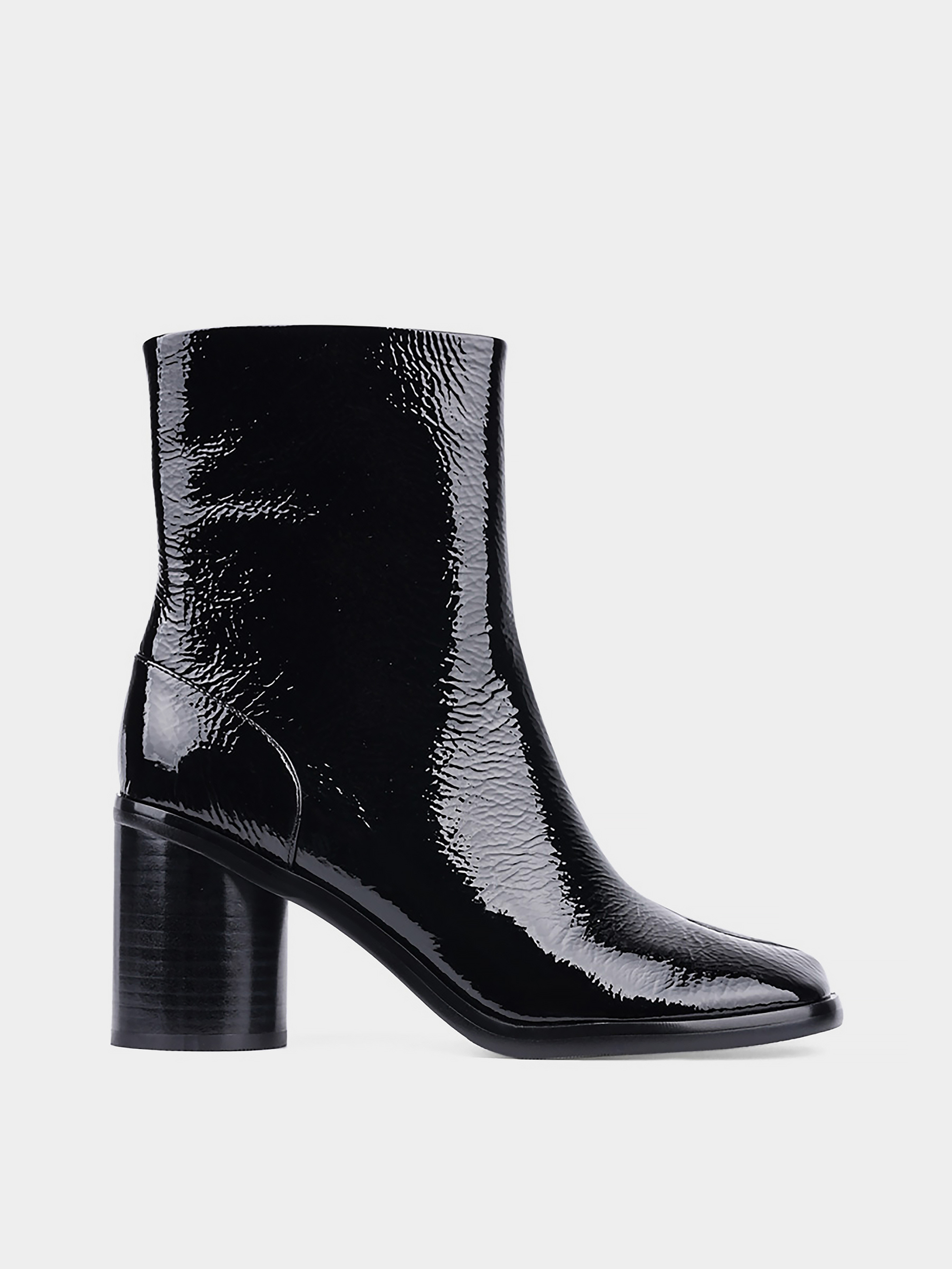 Жіночі осінні лакові черевики MIRATON чорні на круглих підборах і мисом табі. Колір: чорний. Застібка: блискавка. Мис: табі. Стиль:мода. Підкладка: байка