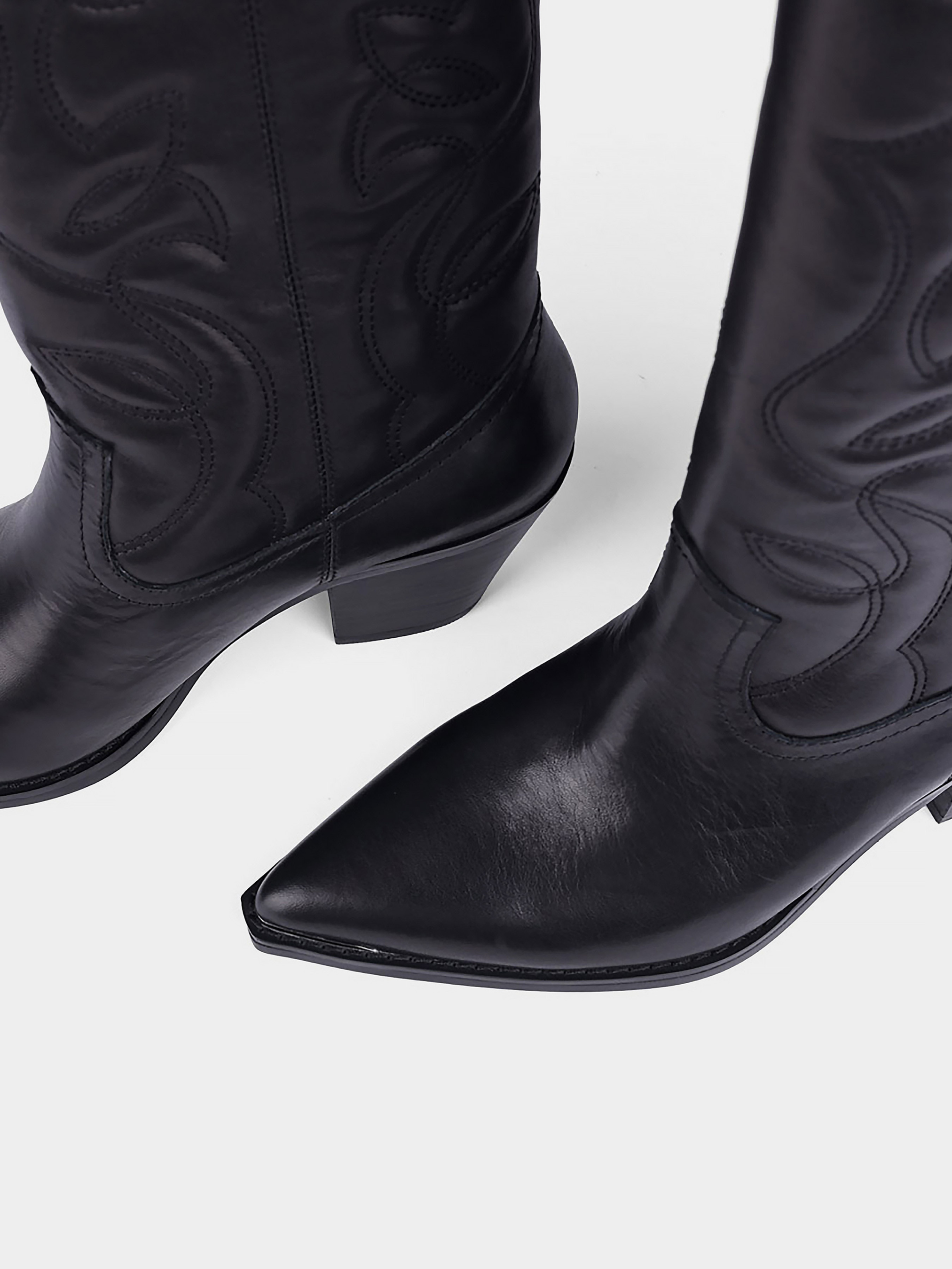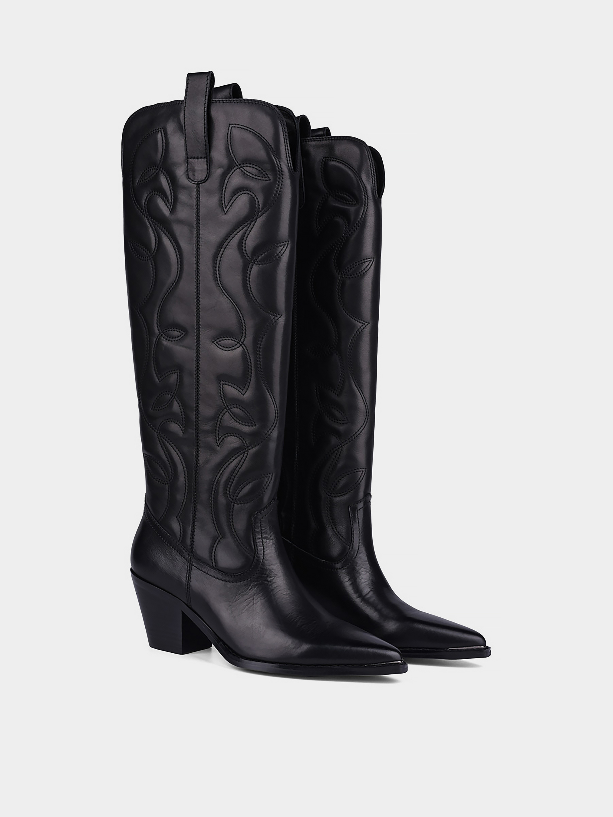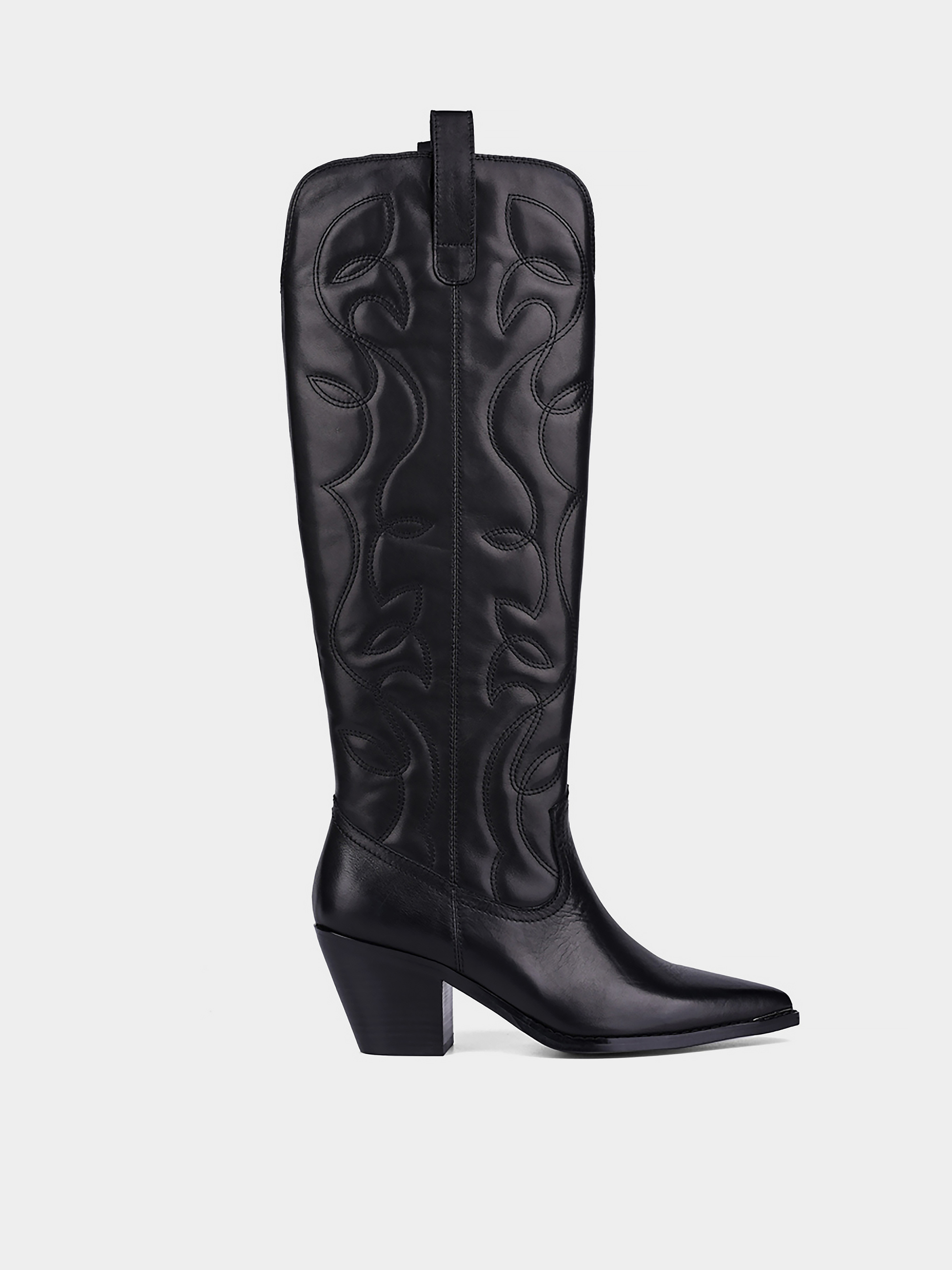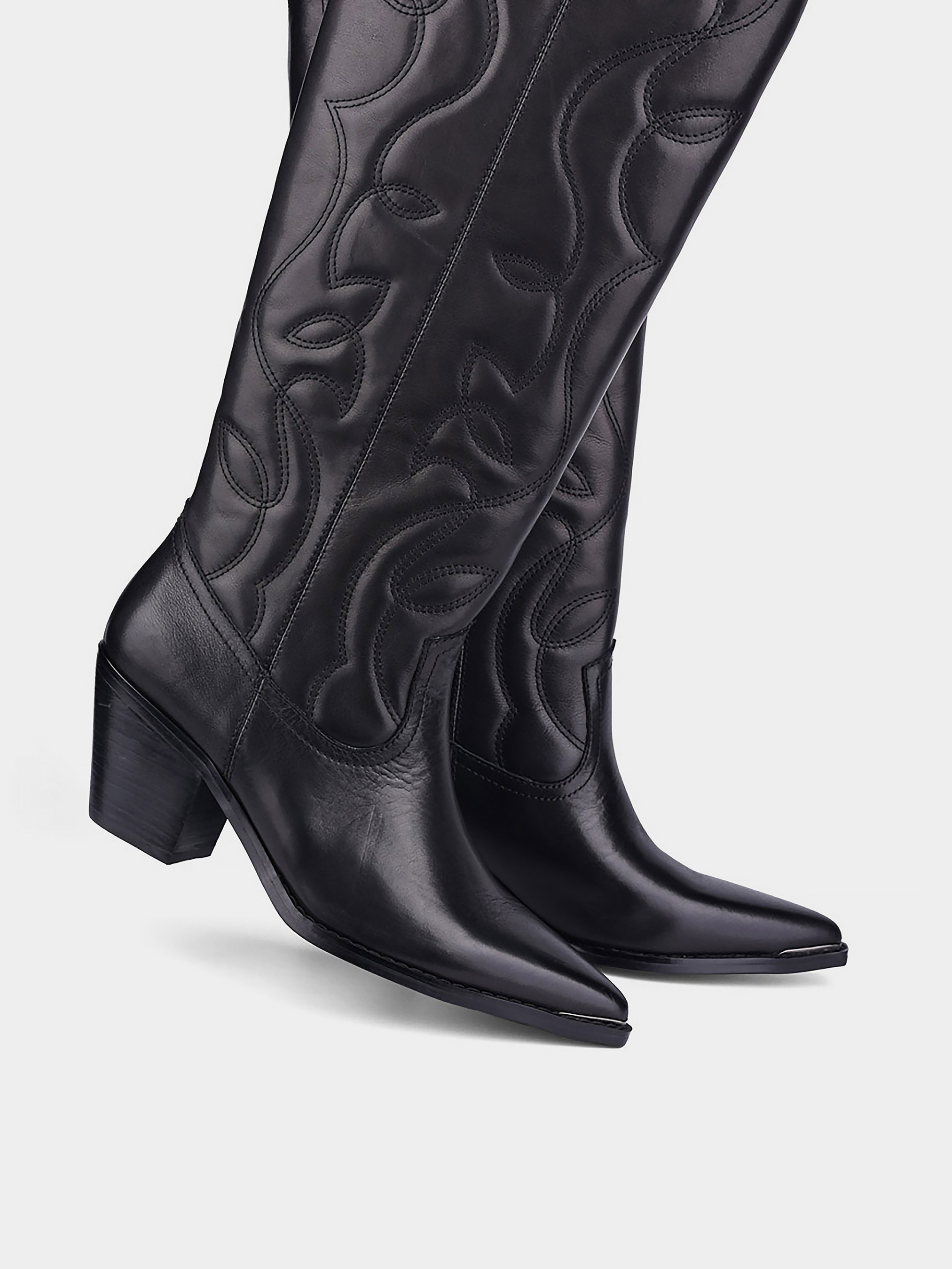 Жіночі осінні шкіряні осінні чоботи козаки MIRATON Підкладка: байка. Підошва: тонка. Каблук: скошений. Висота каблука: 6. Колір: чорний. Застібка: блискавка. Декор: вишивка.