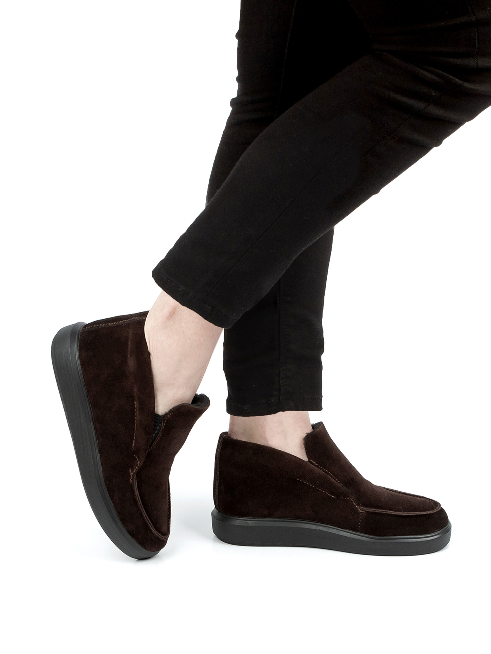 Черевики жіночі зимові HIVER - це практичне тепле взуття від OLDCOM виконане з натуральної замші і утеплені набивним хутром змішаного складу (70% натуральне хутро, 30% штучне). Модель в коричневому кольорі, без застібки, заокруглений носок з простроченим кантом, хутрове утеплення по всій моделі та прорезинова підошва. Черевики неймовірно зручні, стильні і універсальні. Їх легко поєднувати з джинсами, трикотажними штанами і навіть з класичними брюками.