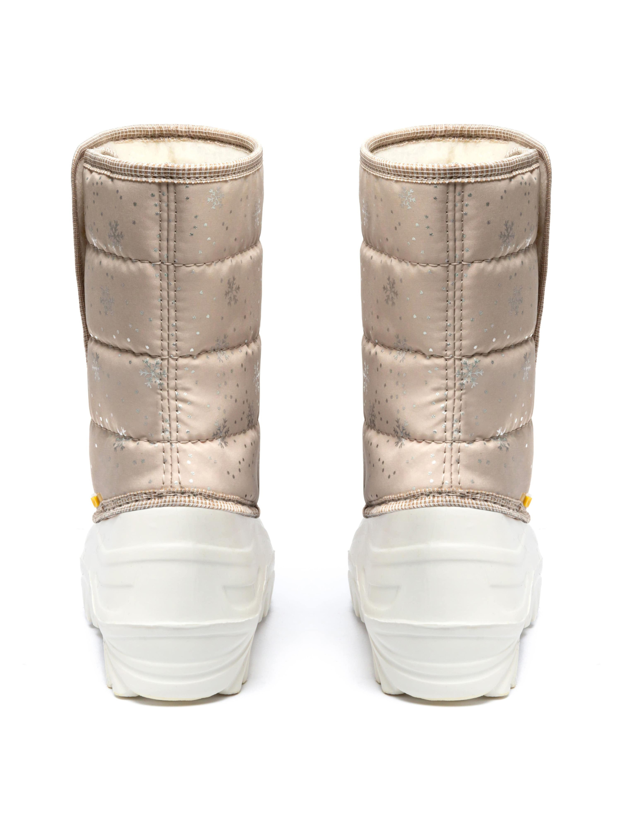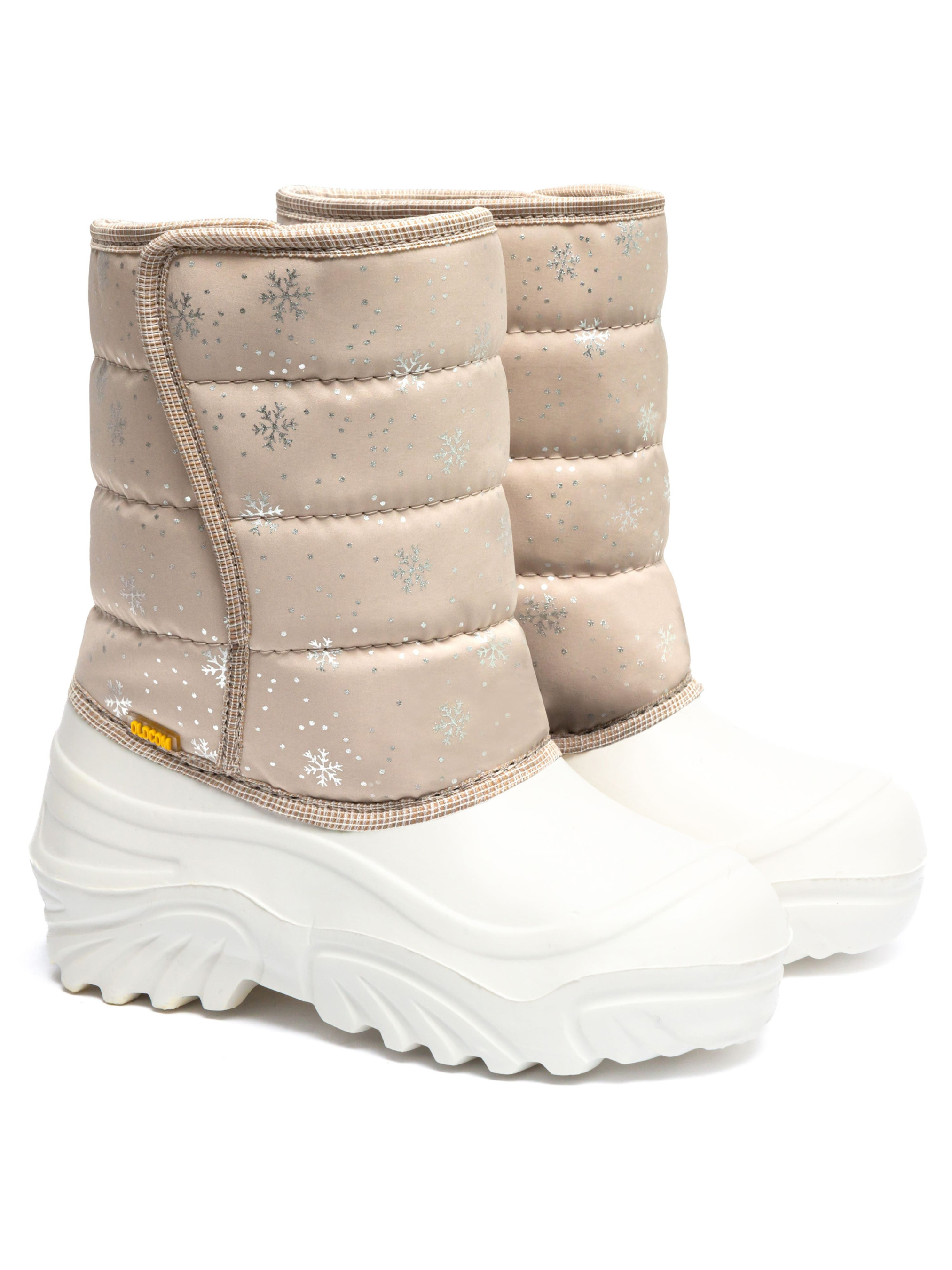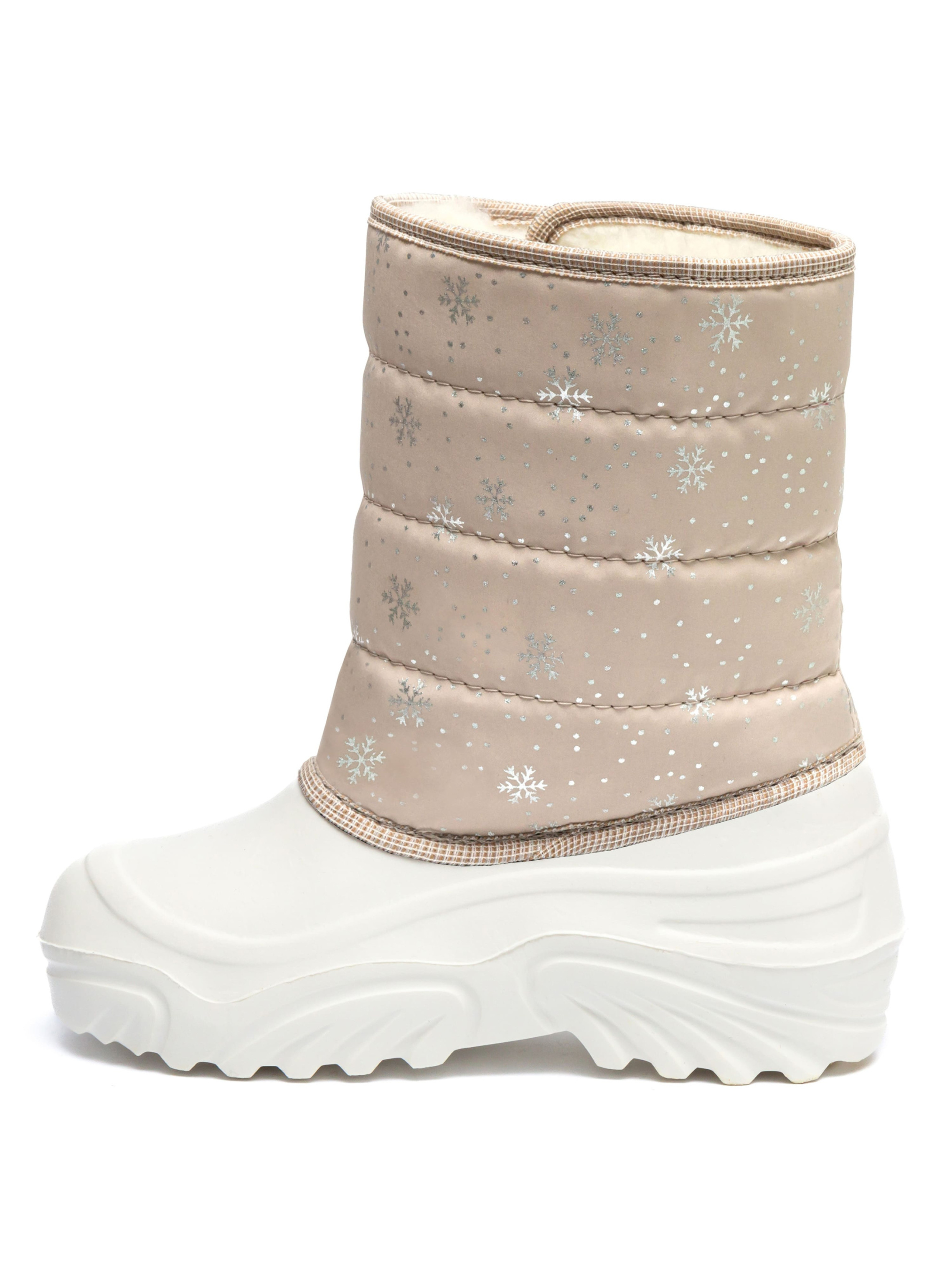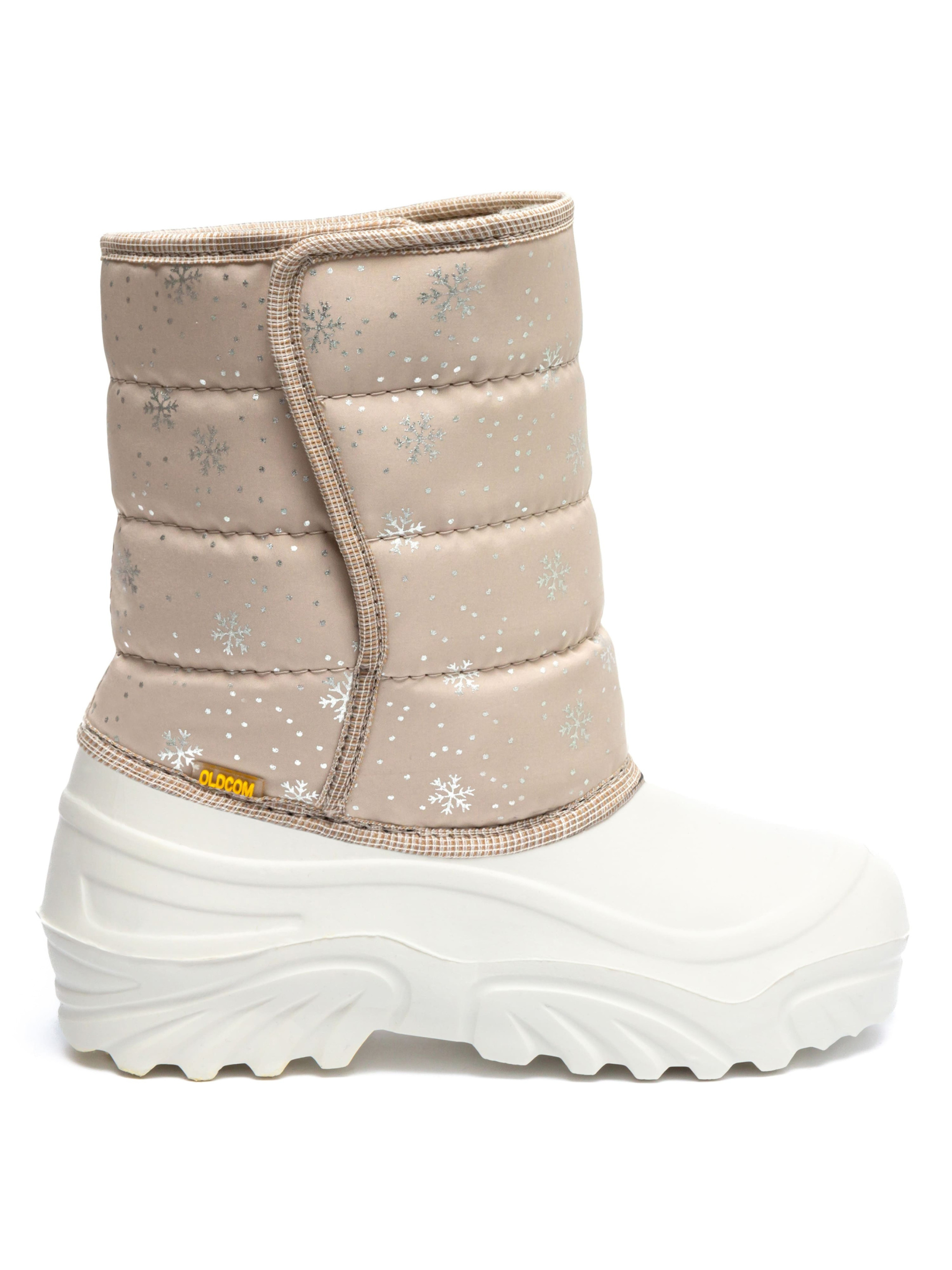 Дутики дитячі JUMPER Сніжинка бежеві - зручне і тепле взуття для холодної погоди. Головна перевага — не тільки в оптимальному збереженні тепла, але і в повній ізольованості дитячих чобіт зимових від вологи. Рифлена підошва і верх взуття суцільні і литі, виготовлені зі спіненого каучука ЕВА. Це надійний і комфортний матеріал. Голенища чоботів зроблені з 95-відсоткового нейлону, а в якості утеплювача використовується вовна. Це найкращий матеріал для зимових умов. В таких чоботах дитині буде зручно, тепло і безпечно. 30/31 р. - 17.00 см. 32/33 р. - 18.50 см. 34/35 р. - 20.00 см. 36/37 р. - 21.50 см.