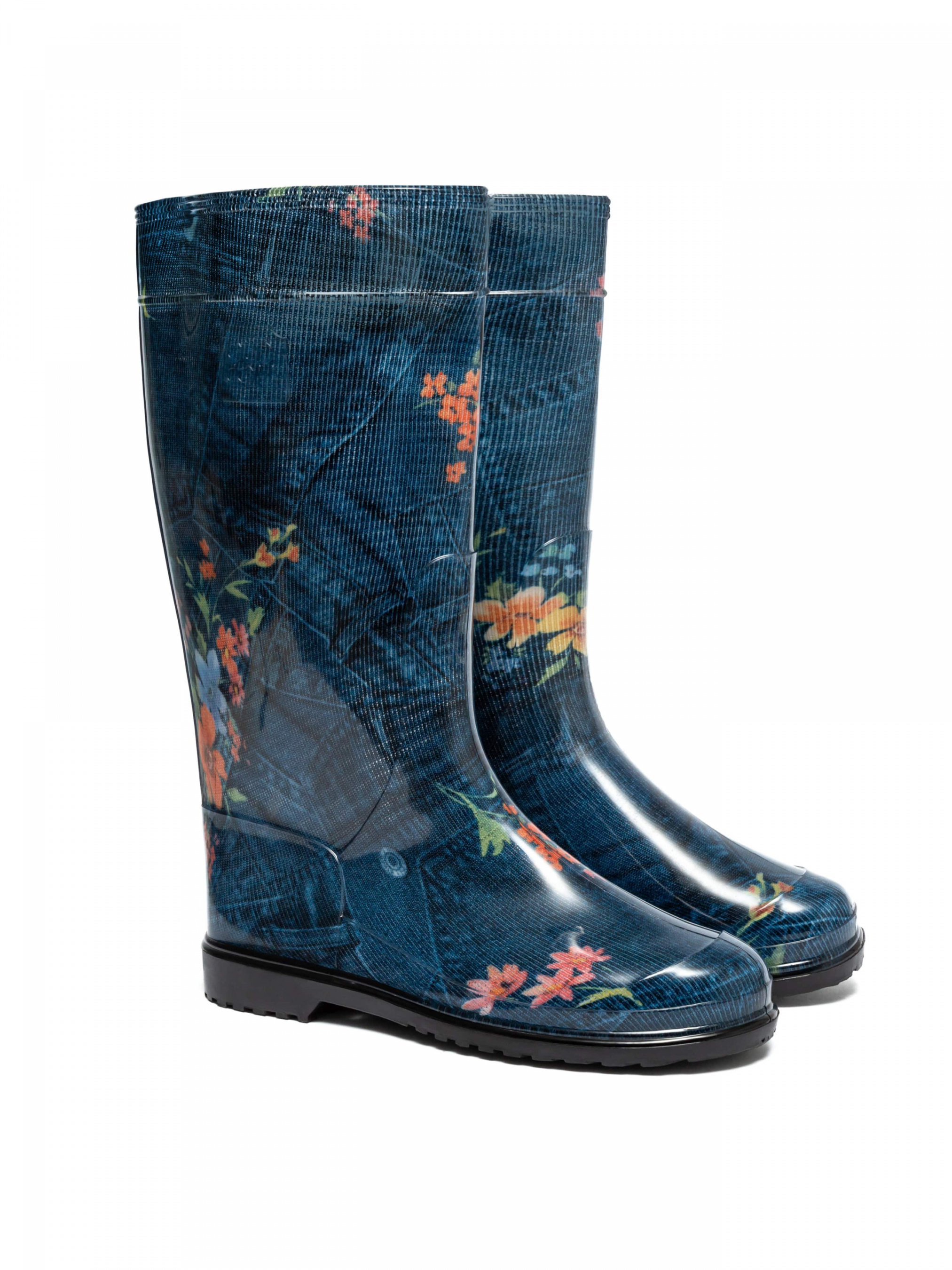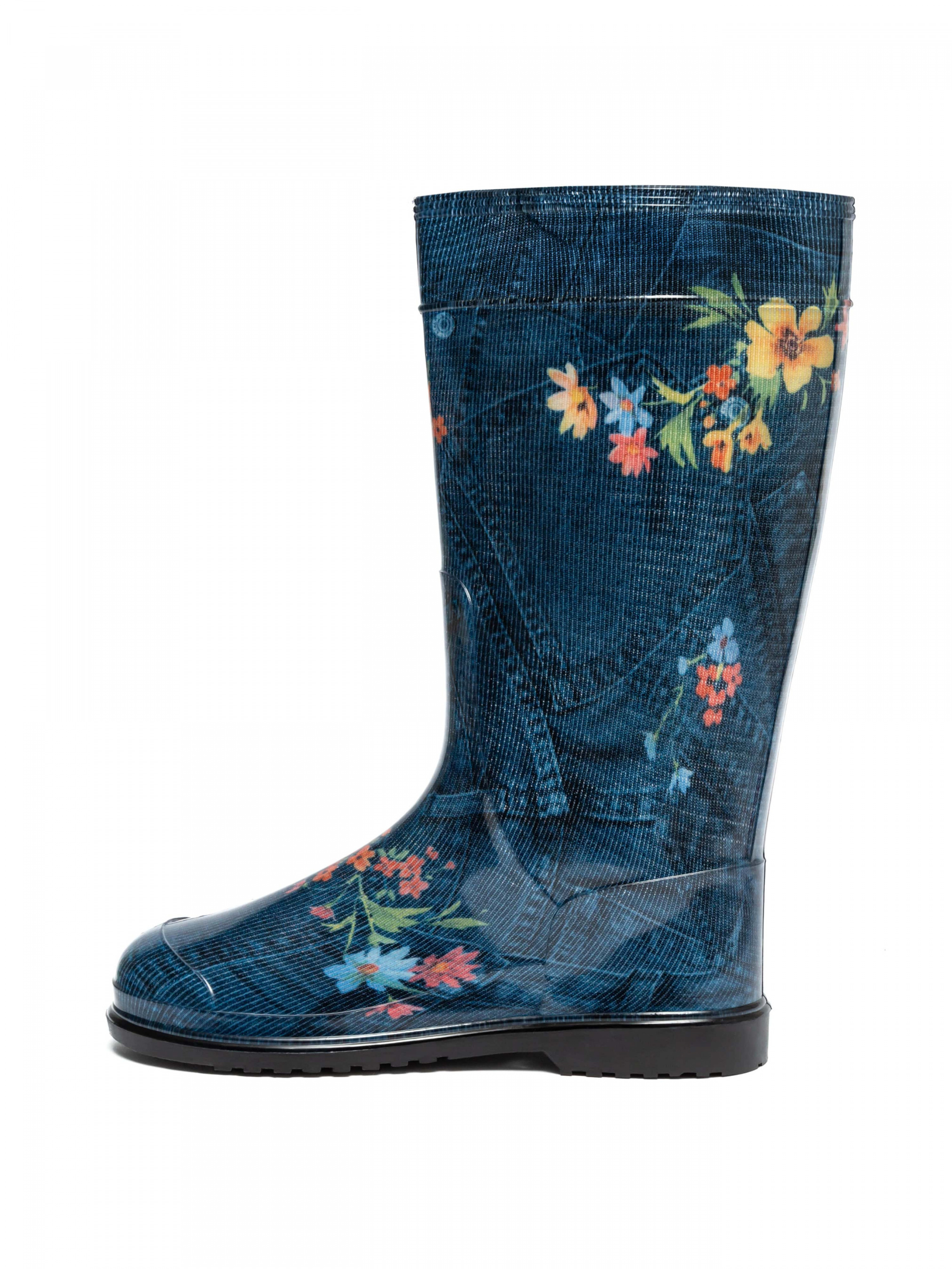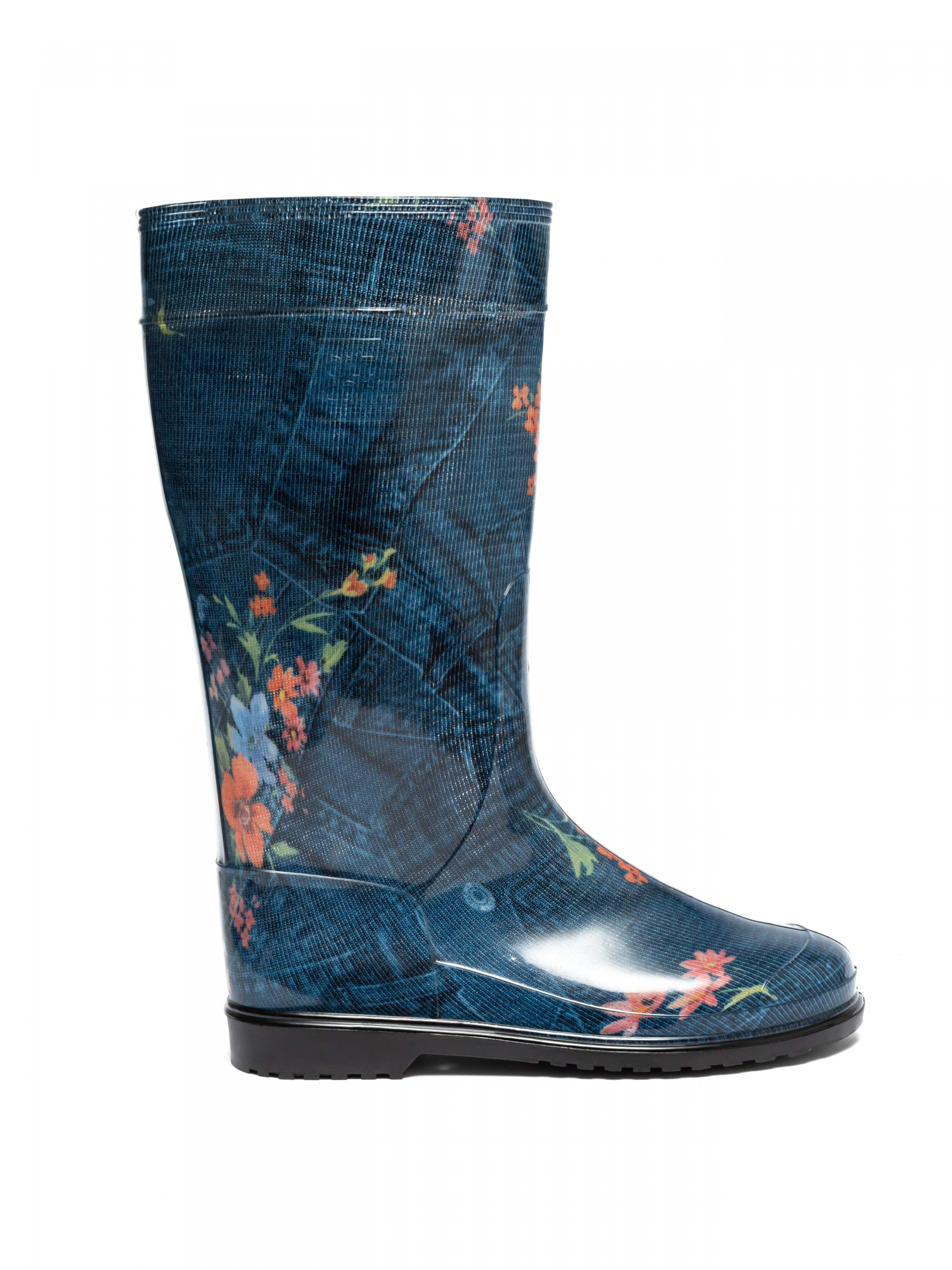 Гумові чоботи жіночі з принтом Джинс з квітами від виробника взуття OLDCOM виготовляються з полівінілхлорид (ПВХ). Гумові чоботи застосовуються для захисту ніг від вологи, бруду, хімічних речовин і можуть використовуватися в багатьох сферах життя, таких як садівництво, риболовля, будівництво, промисловість, а також під час дощової погоди. ПВХ чоботи легкі, гнучкі та міцні, що робить їх зручними у використанні. Вони також мають хороші властивості стійкості до вологи, що дозволяє зберігати ноги сухими у вологих умовах. ПВХ чоботи Олдком мають стійку підошву, що забезпечує безпеку на різних поверхнях. Крім того, ПВХ чоботи легко миються та досить довговічні. Вони доступні для замовлення в різних розмірах, стилях та кольорах.