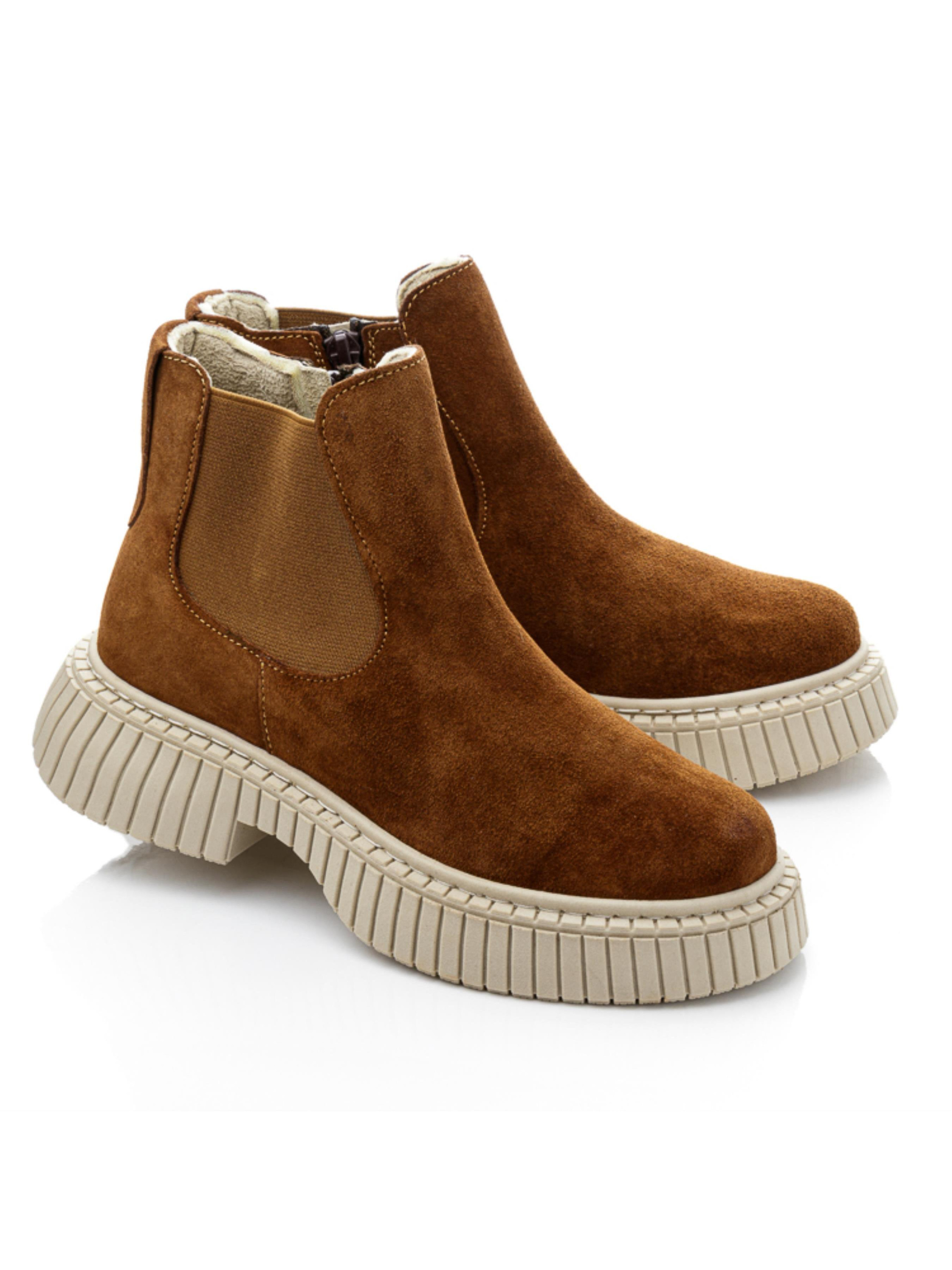 Хочете доповнити гардероб юної модниці актуальним взуттям? Ці демісезонні черевики для дівчат-підлітків у насиченому коричневому кольорі — справжній хіт сезону! Верх виготовлений із натуральної замші, приємний на дотик та гарно зберігає тепло. Усередині — м’який фліс для комфорту у прохолодну погоду. Жорсткий задник та супінатор підтримують правильну форму стопи. Завдяки резинці з одного боку та блискавці з іншого, взування стає максимально зручним. А модна підошва додає взуттю сучасного вигляду. Ця модель чудово підходить як на кожен день, так і для стильних образів у міжсезоння.
