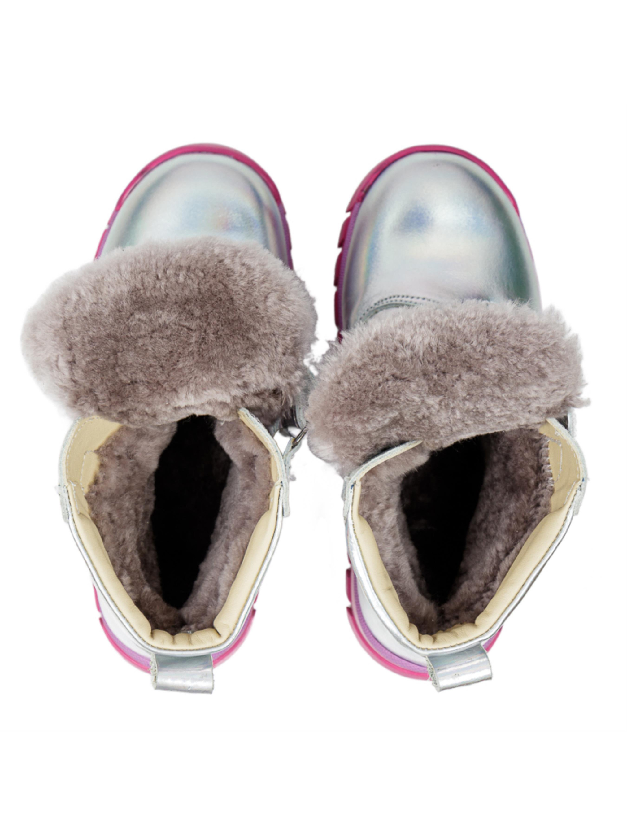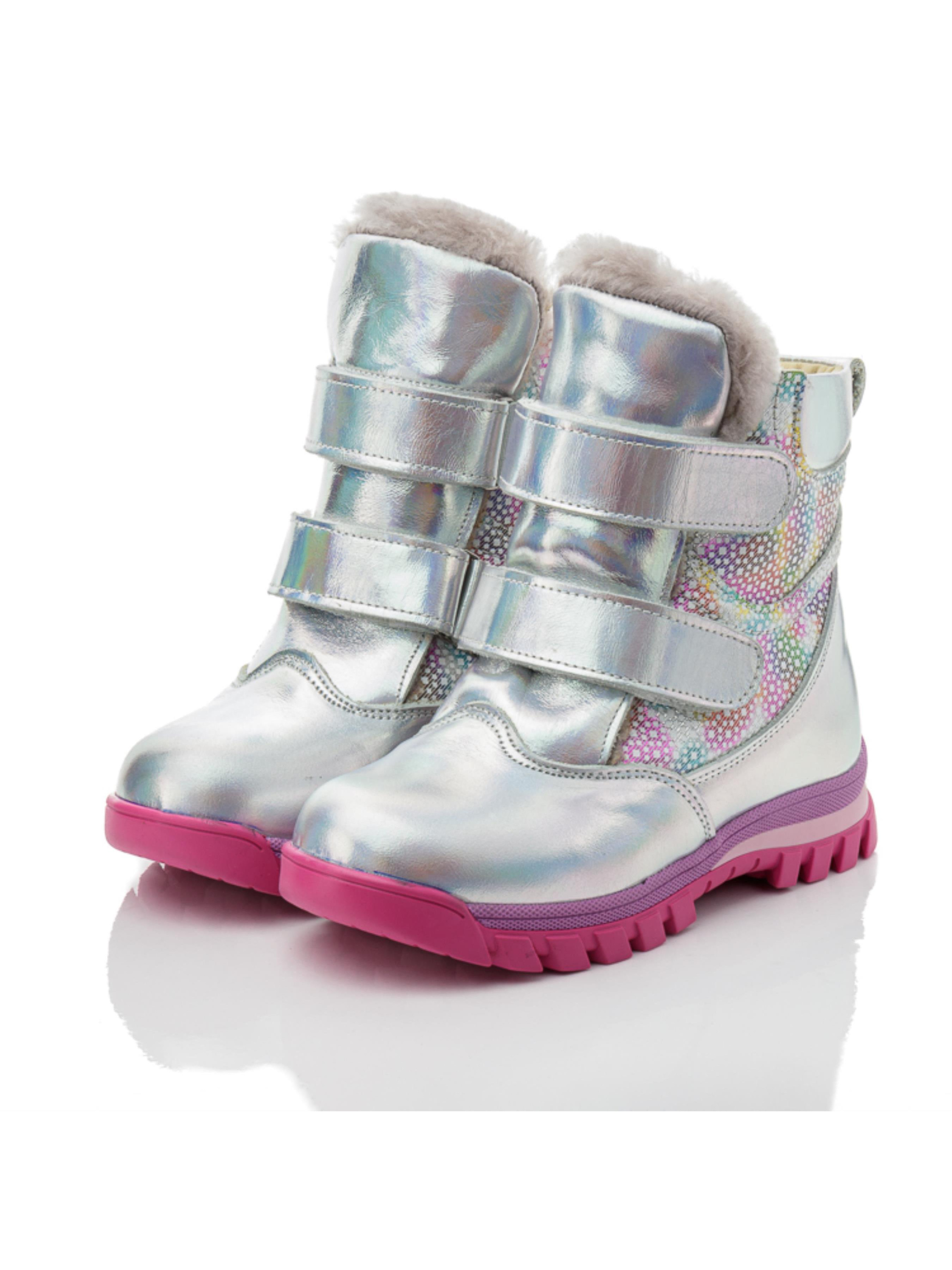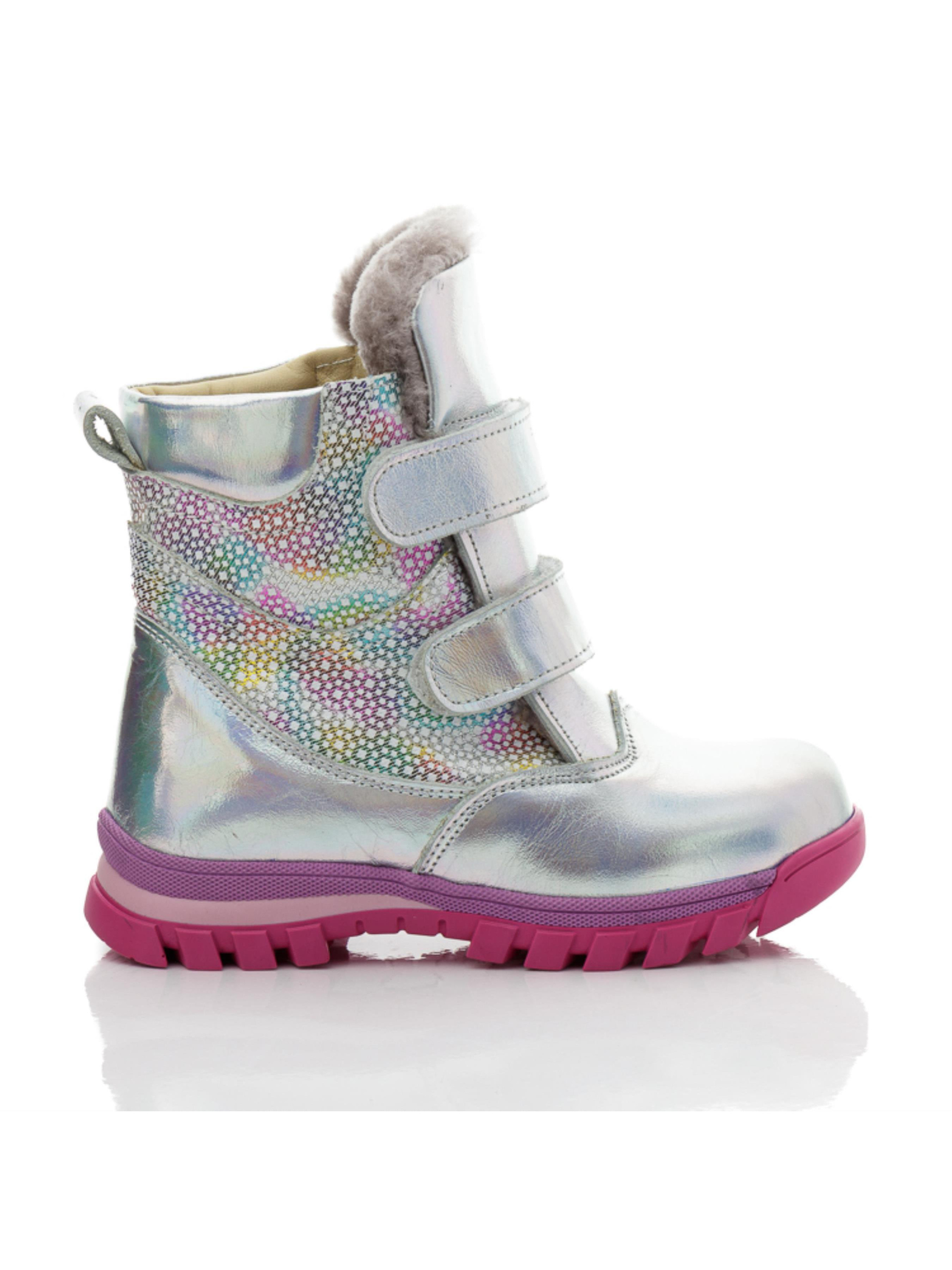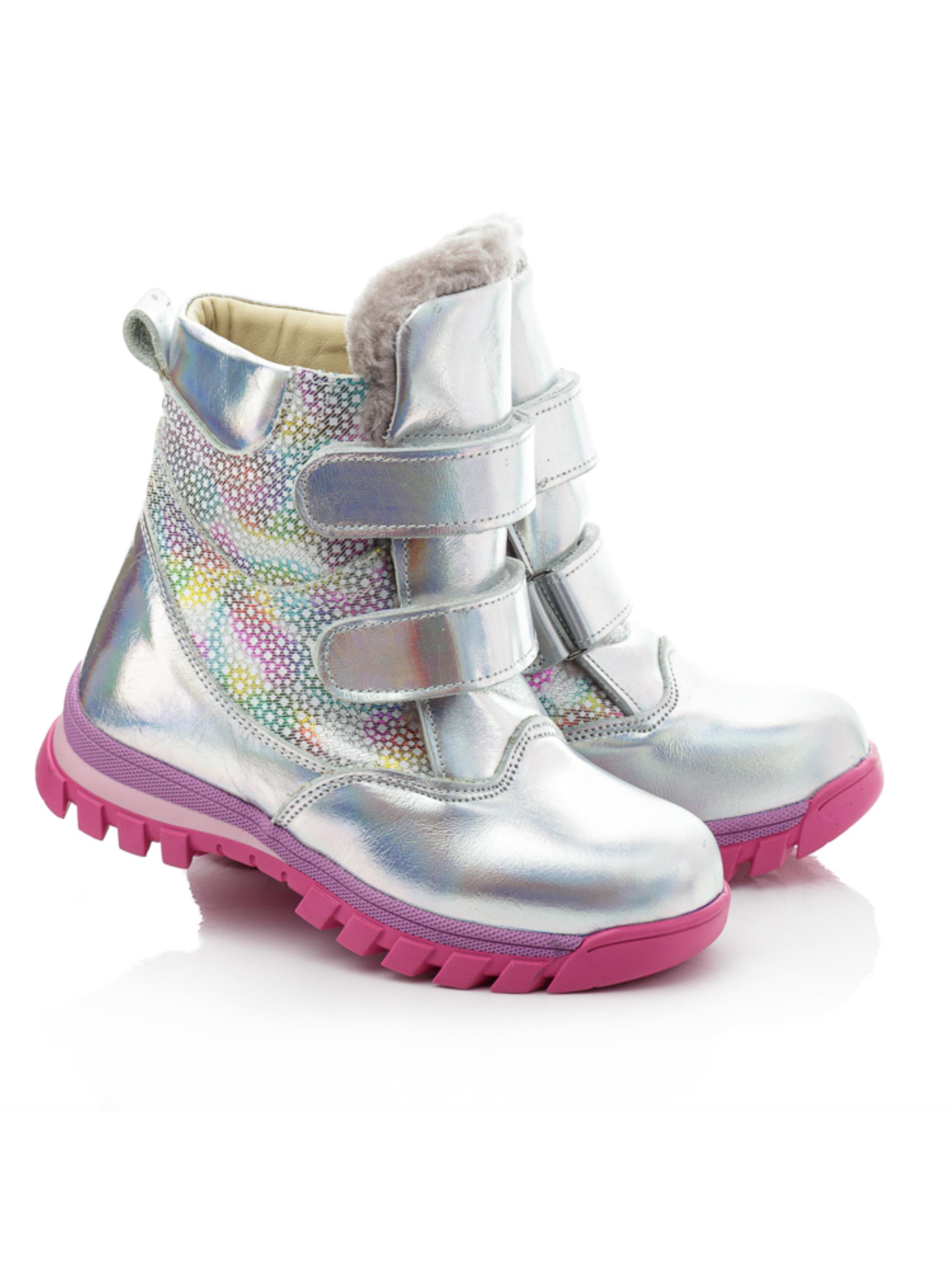 Ці стильні та теплі зимові чобітки для дівчат від турецького бренду Papi – ідеальний вибір для холодної пори року. Всередині – натуральна цигейка, яка надійно зберігає тепло та забезпечує максимальний комфорт для ніжок навіть у морозні дні. Сучасний дизайн з яскравим, райдужним ефектом привертає увагу та радує дітей своїм оригінальним виглядом. Чобітки оснащені міцною нековзкою підошвою та зручними липучками, що дозволяє легко вдягати та знімати взуття, що особливо важливо для маленьких модників. Чудовий вибір для зимових прогулянок та активних ігор на вулиці.