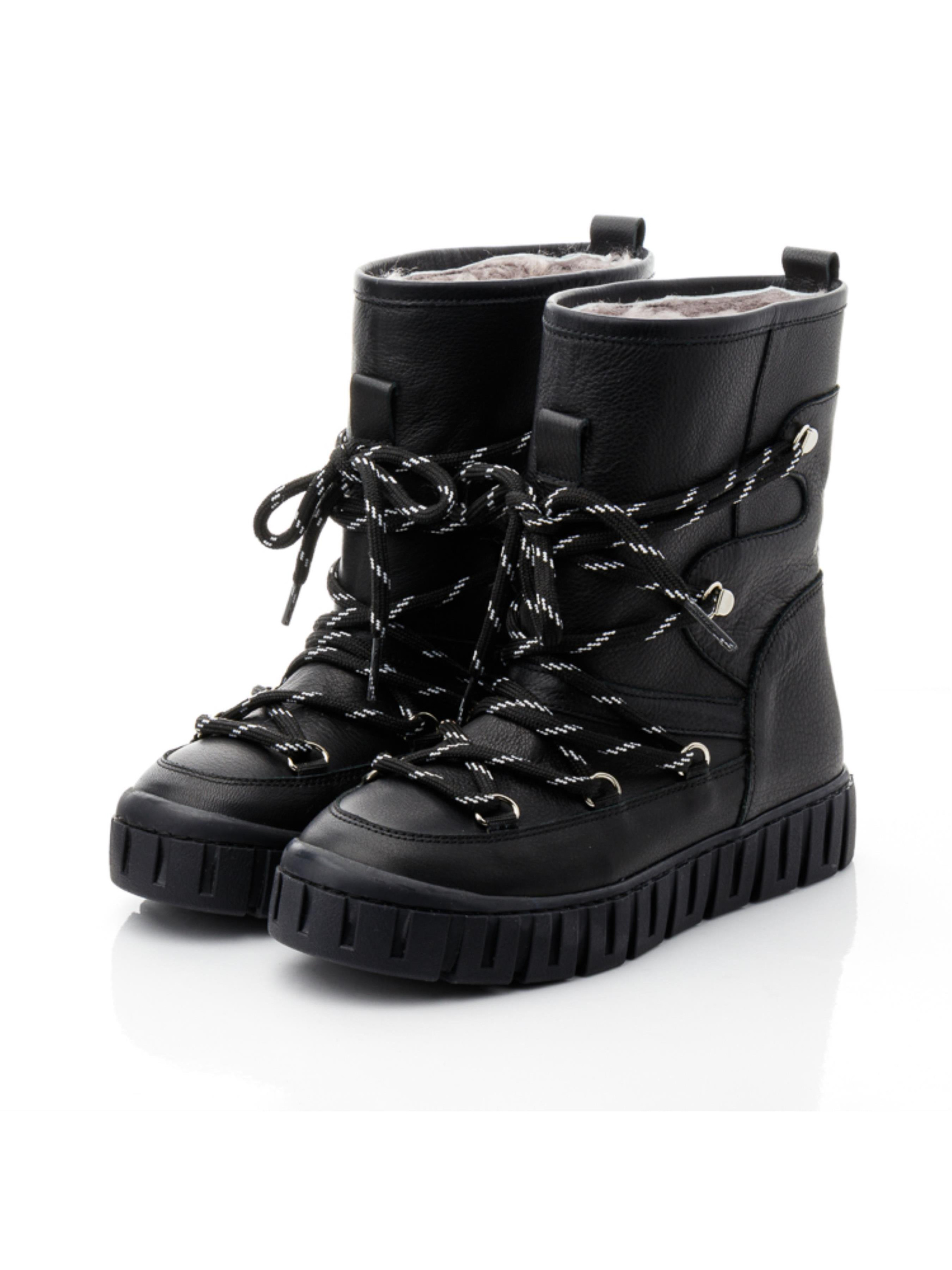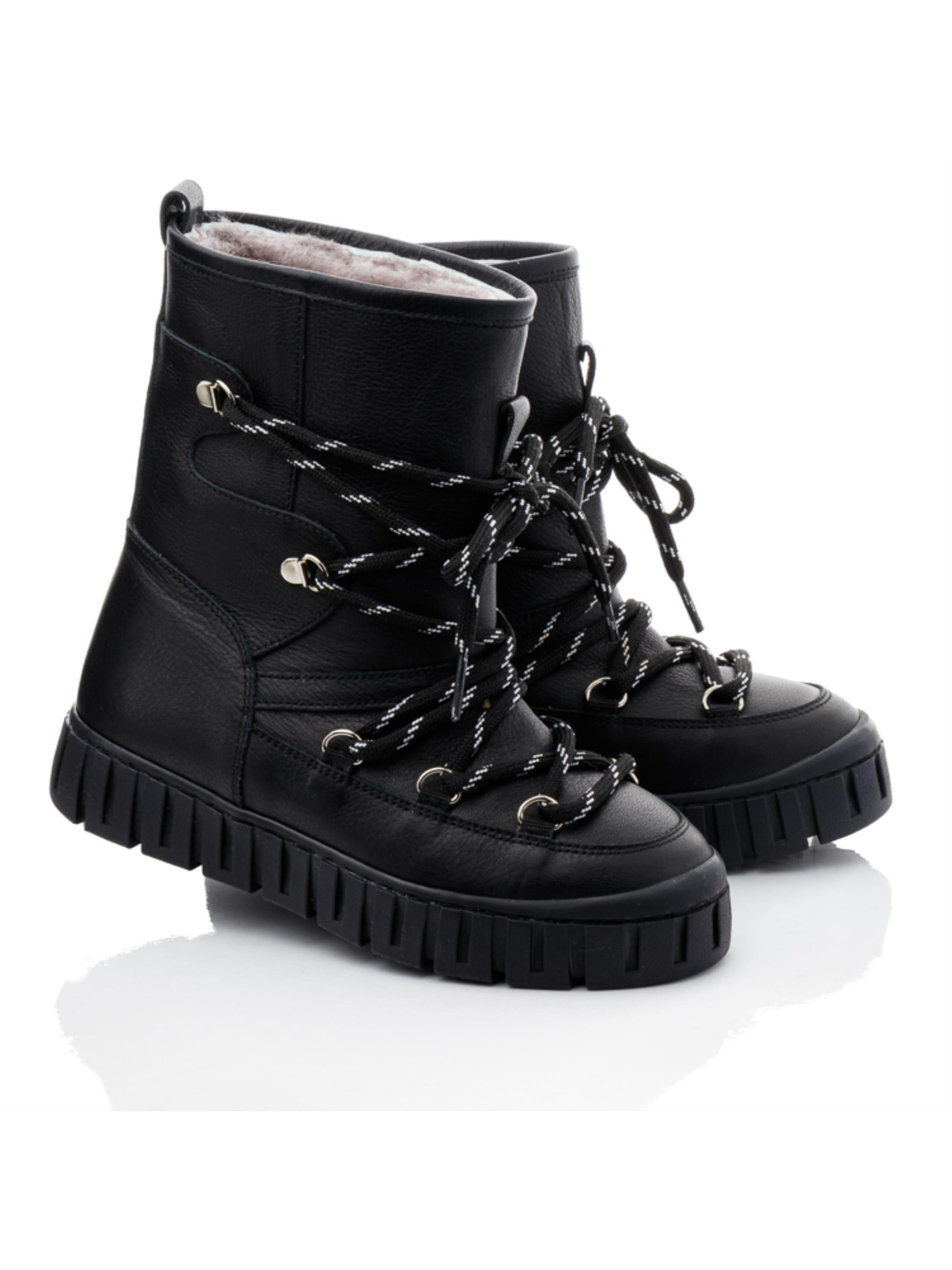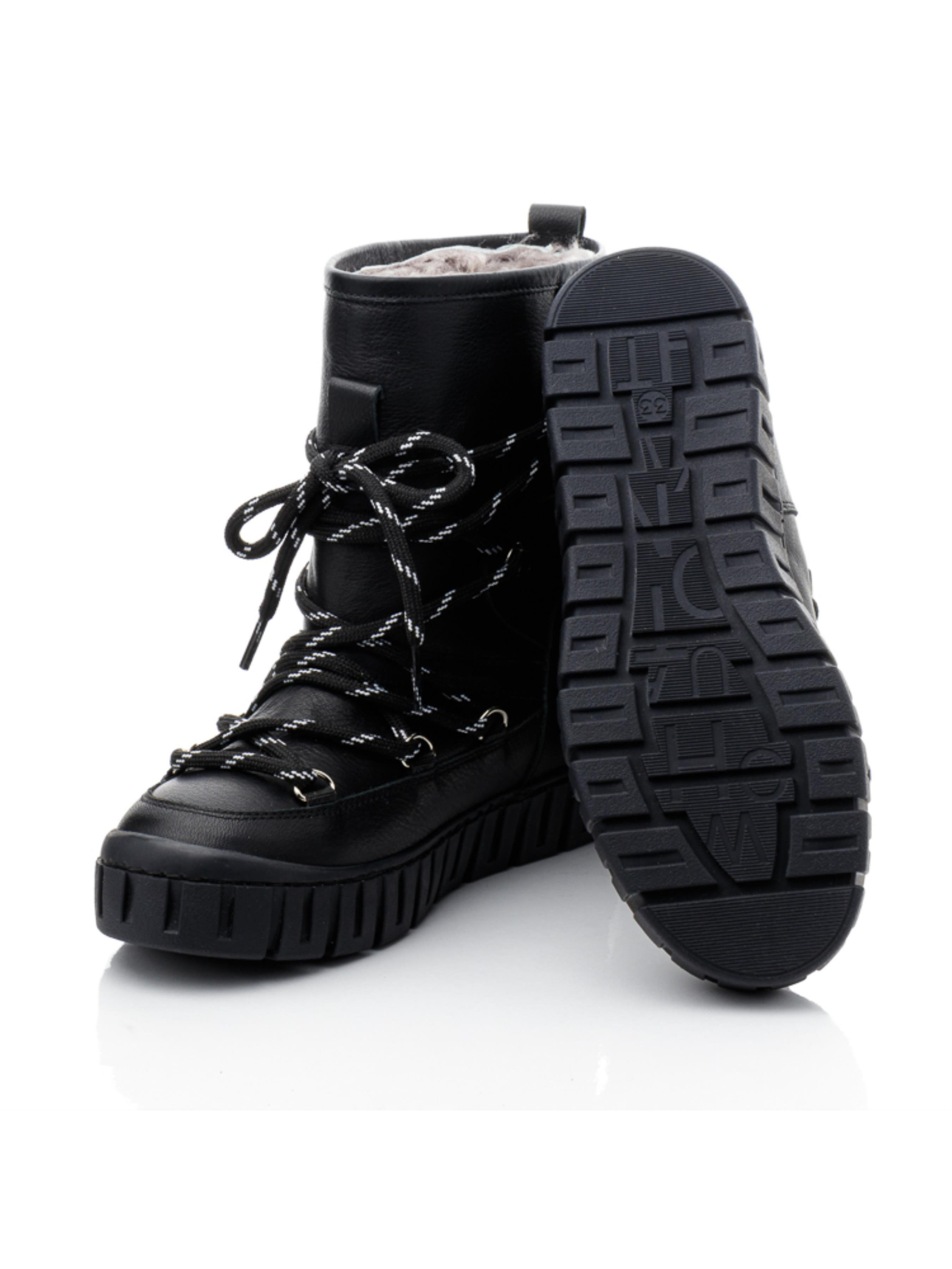 Ці елегантні зимові чобітки для дівчаток від турецького бренду Papi створені для того, щоб забезпечити тепло та комфорт навіть у найморозніші дні. Всередині чобітків – натуральна цигейка, яка чудово зберігає тепло та дозволяє ніжкам дихати. Чорний колір і стильний дизайн з акуратною декоративною шнурівкою додають взуттю вишуканості, а міцна підошва з глибоким протектором гарантує стійкість на слизьких поверхнях. Ці чобітки підійдуть для активних прогулянок і стануть стильним доповненням зимового гардероба.