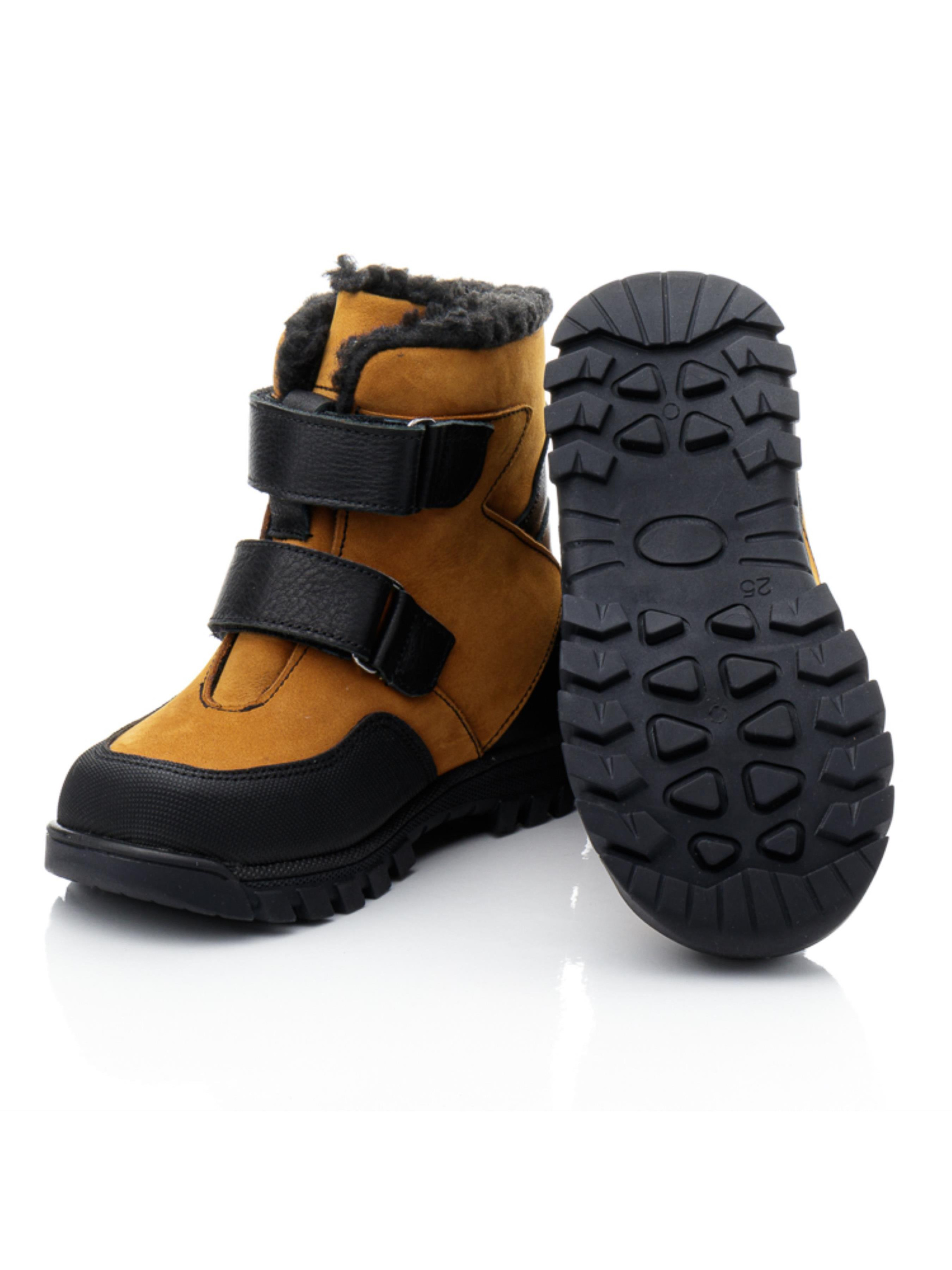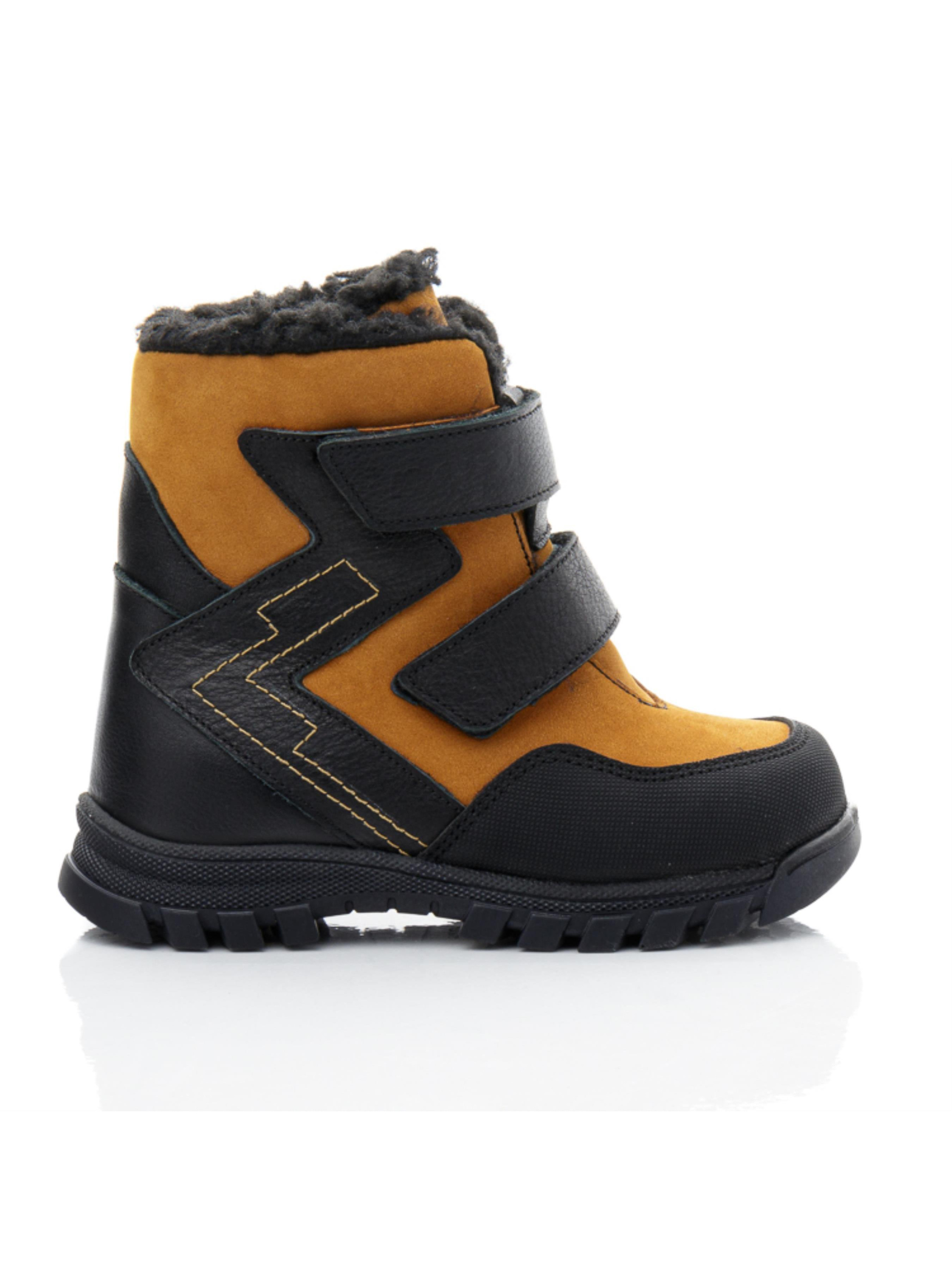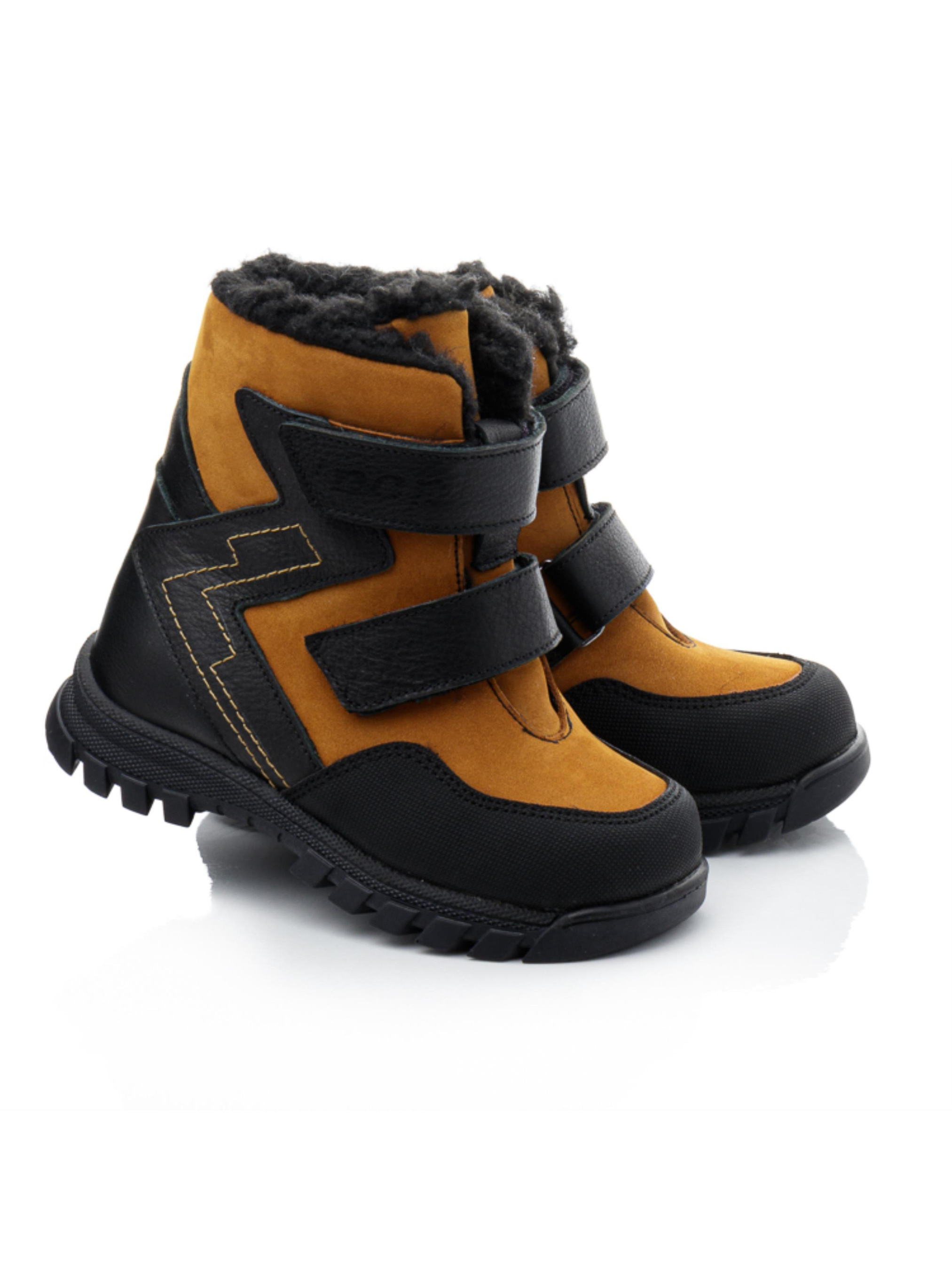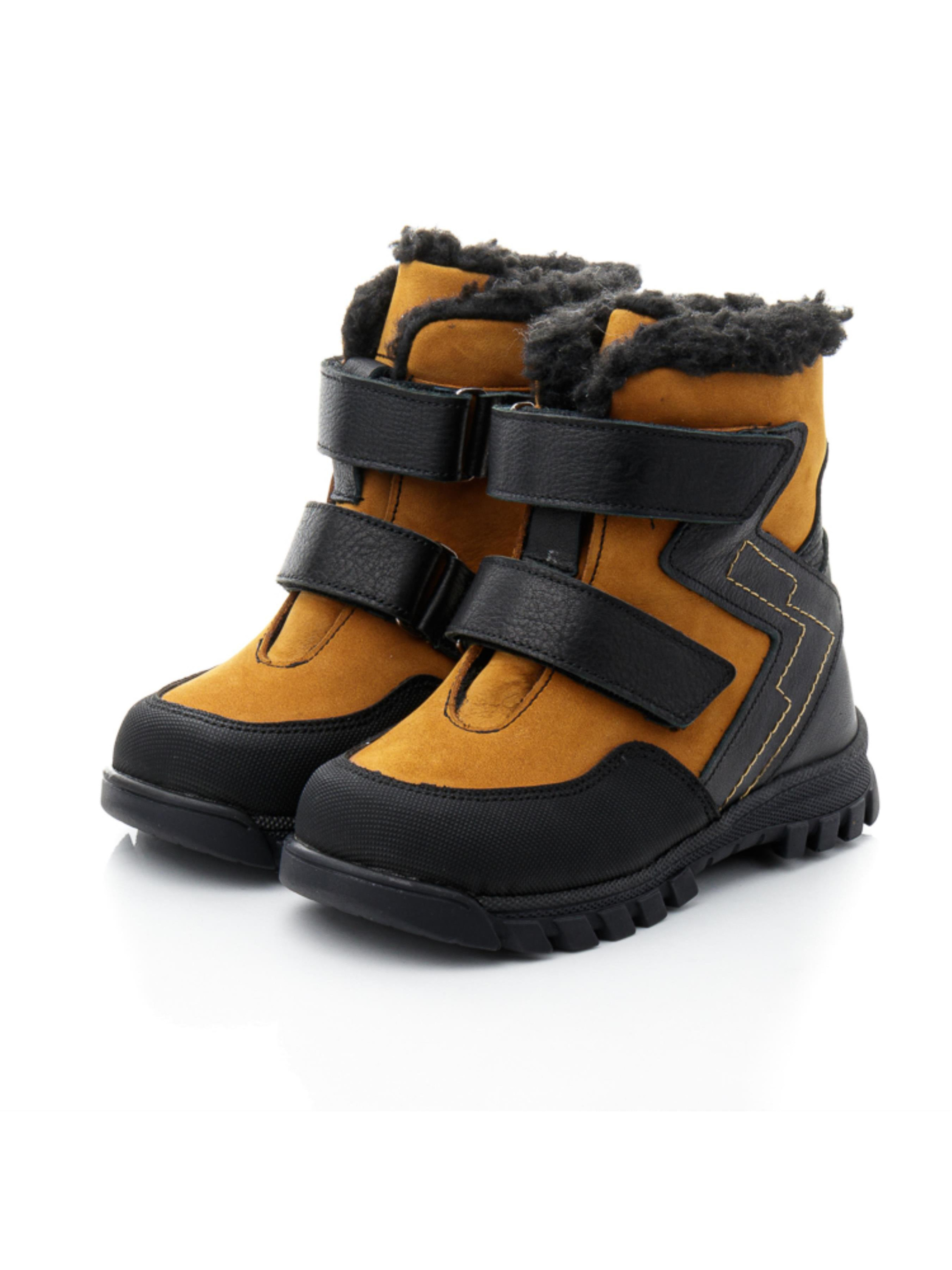 Ці стильні зимові черевики для хлопчика від турецького бренду Papi – чудовий вибір для холодної зими. Виконані у стильному поєднанні рудого та чорного кольорів, вони не лише функціональні, але й привабливо виглядають. Верх черевиків виготовлений з натуральної шкіри, що забезпечує довговічність та захист від вологи, а всередині – утеплювач з натуральної вовни, який гарантує тепло та комфорт у морозні дні. Дві липучки дозволяють легко взувати та знімати черевики, що зручно для самостійного користування. Носок посилений захистом "неубивайка", що підвищує зносостійкість та захищає від пошкоджень. Це дитяче зимове взуття ідеально підходить для активних хлопчиків, поєднуючи стиль, надійність та зручність.