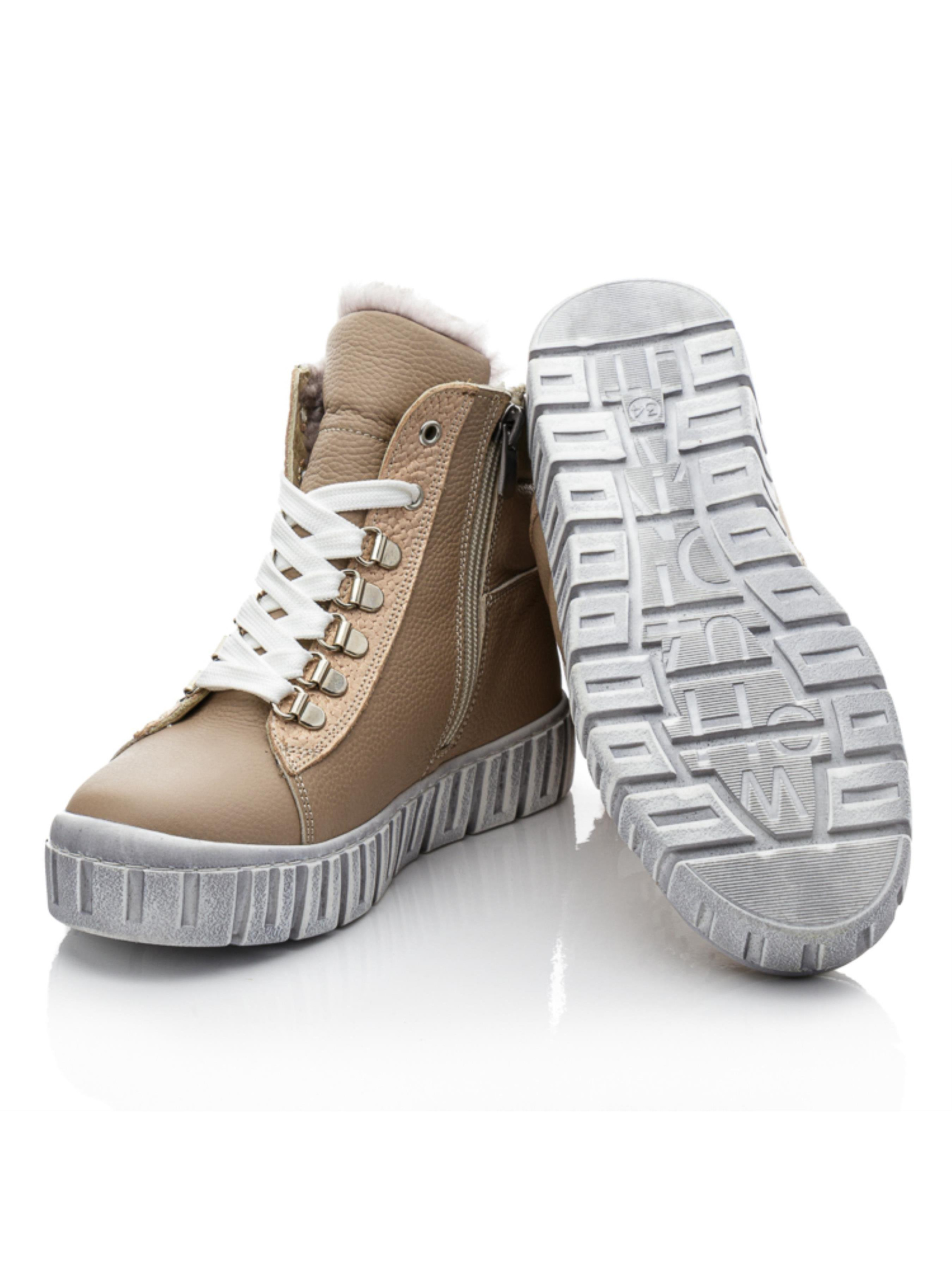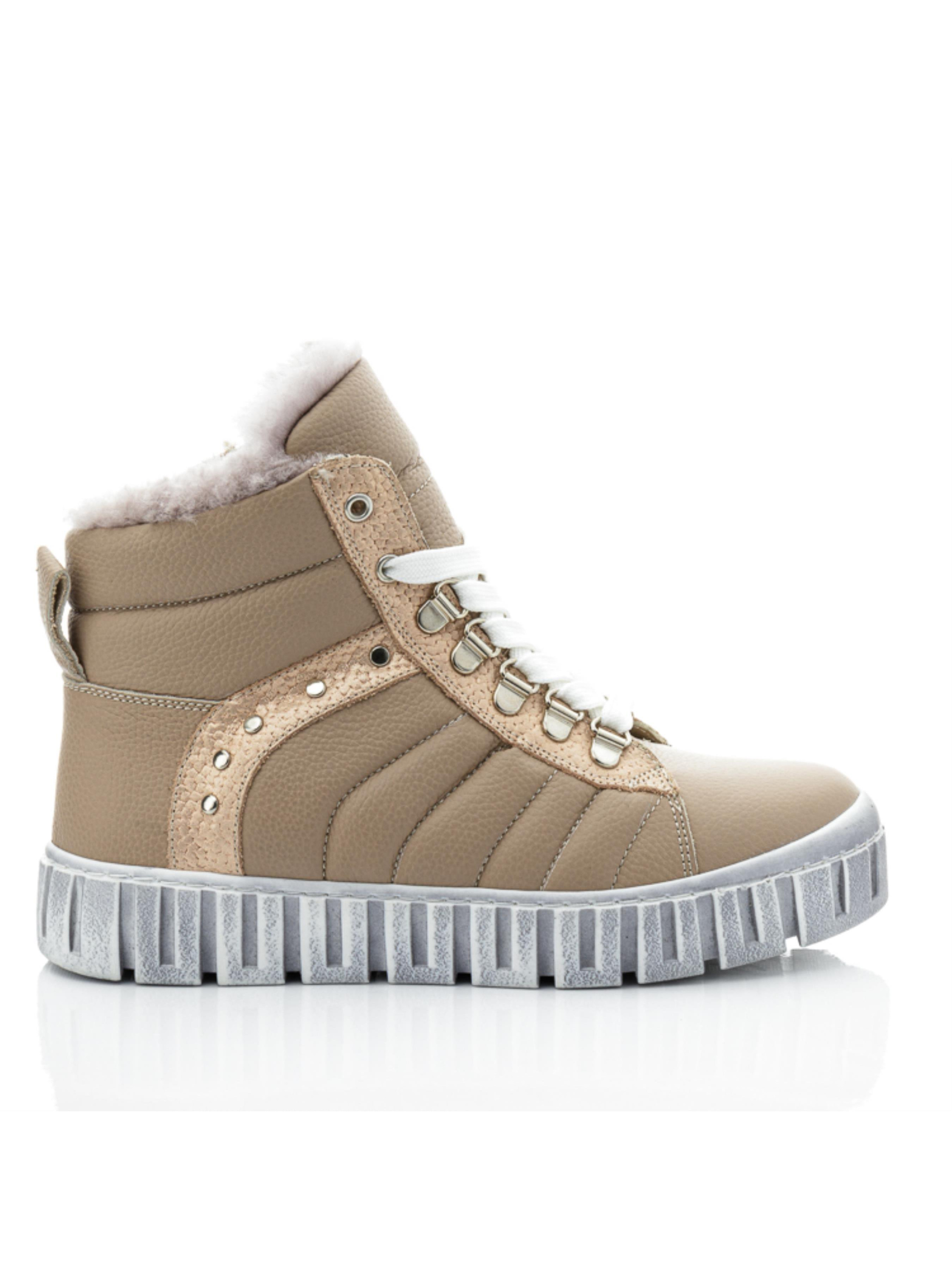 Ці стильні дитячі зимові черевики для дівчинки від турецького бренду Papi – ідеальний вибір для холодних зимових прогулянок. Виконані з натуральної шкіри приємного бежевого кольору, вони легко впишуться в гардероб маленької модниці. Декоративні елементи у вигляді металевих заклепок додають стильності, а текстуровані вставки надають об’єм і сучасний вигляд. Підкладка з натуральної цигейки забезпечує тепло і затишок, зберігаючи ніжки в комфорті навіть у морози. Зручна бічна блискавка дозволяє швидко взуватися, а міцна рельєфна підошва гарантує відмінне зчеплення з поверхнею. Ці черевики – чудовий приклад якісного дитячого взуття, яке поєднує стиль, комфорт і надійність.