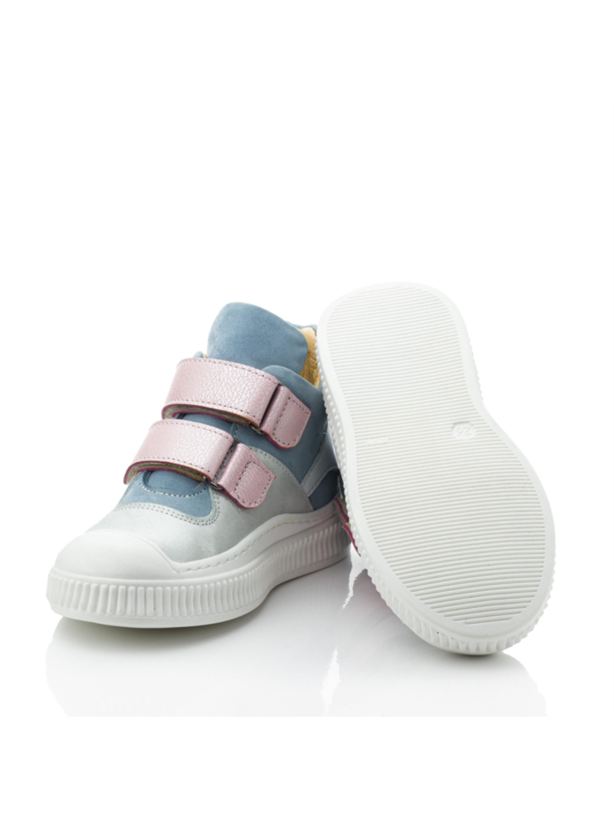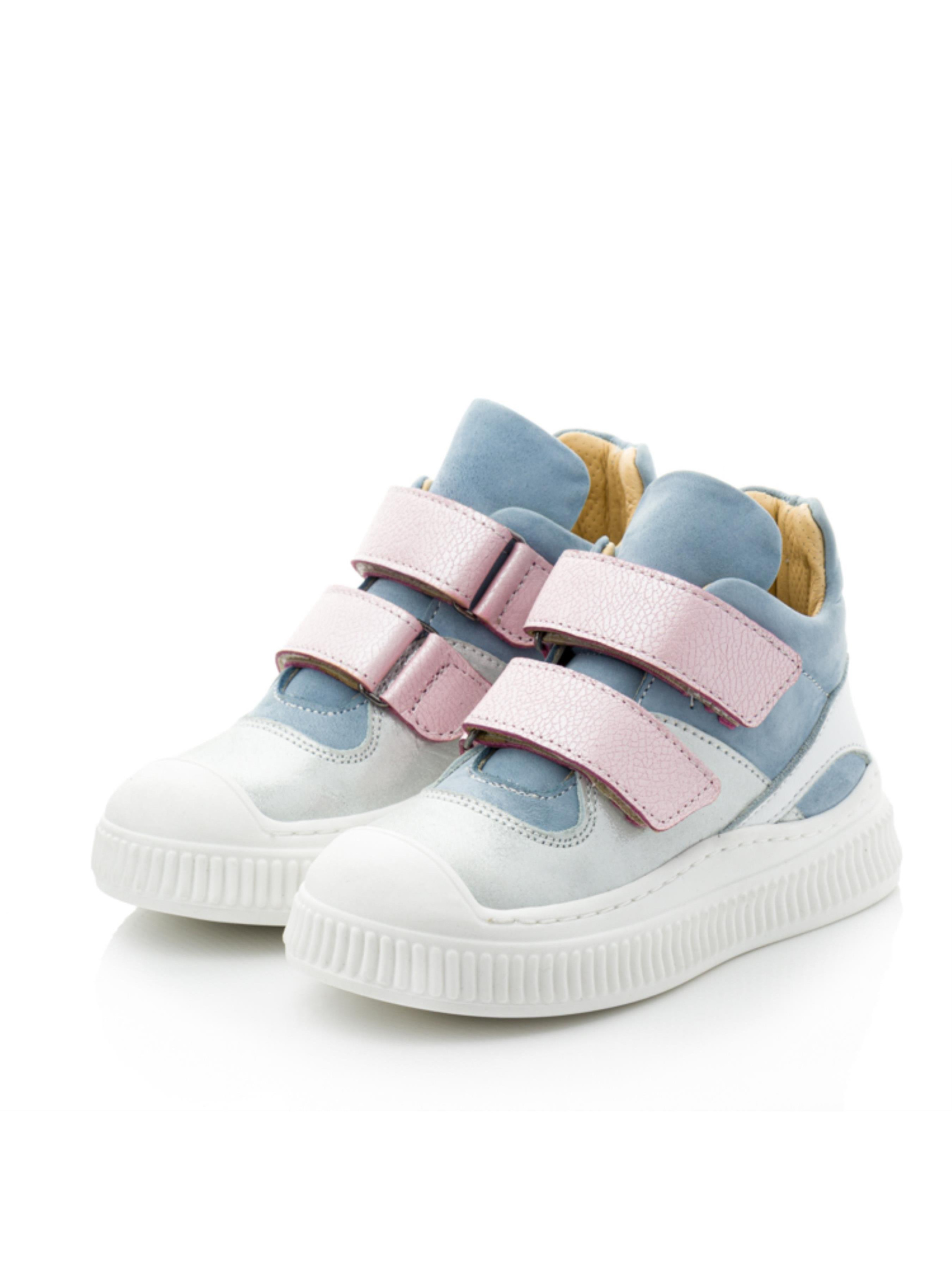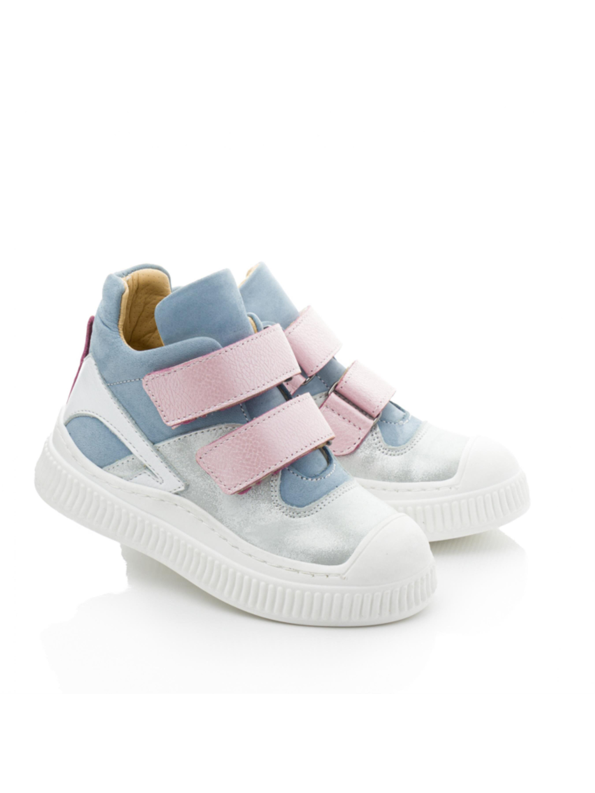 Ці стильні демісезонні черевики для дівчаток ідеально підходять для весняного сезону. Верх виконаний із комбінації натуральної шкіри сріблястого відтінку та блакитного нубуку, що створює витончений і сучасний вигляд. Рожеві липучки та вставки з білої шкіри додають моделі ніжності та яскравості. Підкладка з натуральної шкіри забезпечує комфорт і підтримує здоровий мікроклімат для ніжок дитини. Підошва оснащена захисним носочком, який запобігає пошкодженням взуття та продовжує термін його служби. Ці хайтопи стануть чудовим вибором для прогулянок, активних ігор та повсякденного використання. Універсальний і модний дизайн дозволяє поєднувати модель із різними стилями одягу, роблячи її незамінною частиною весняного гардероба вашої дівчинки.
