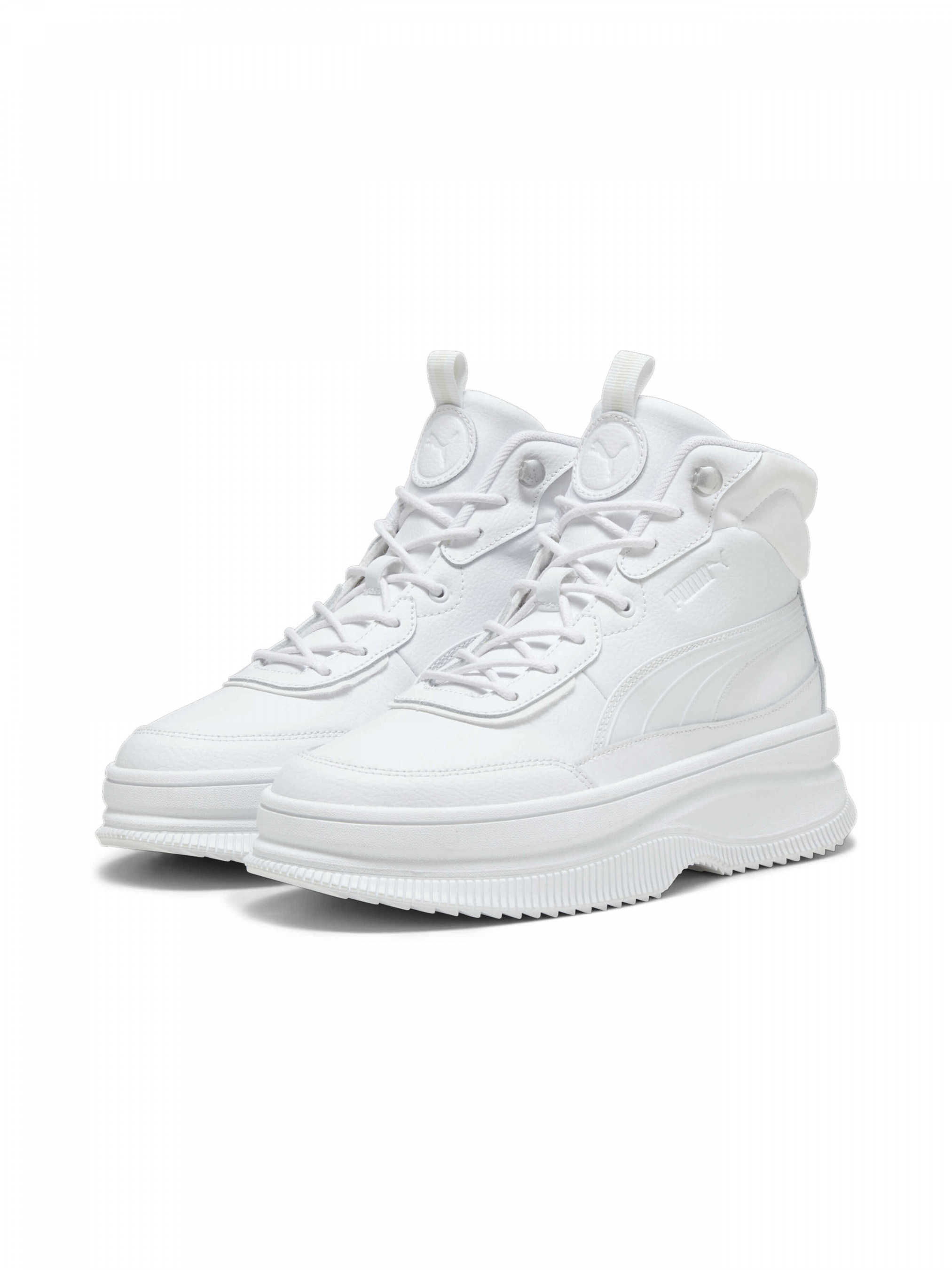 Mayra — це нове поєднання комфорту та моди. Високий комір і ефектні деталі в поєднанні з устілкою SOFTFOAM+ забезпечують комфорт та підтримку стопи, створюючи при цьому модний образ. Деталі: Колекція: Осінь-Зима 2023 Стиль: Спортивний Технології: SOFTFOAM+ Характеристики Матеріал верху: 60.41% шкіра, 39.59% синтетичні матеріали Матеріал підошви: Гума SOFTFOAM+: Зручна устілка Step-in Comfort забезпечує м’яку амортизацію завдяки дуже товстій п’ятковій частині Верх кросівок виготовлений з переробленого матеріалу не менше ніж на 20%, нижня частина — не менш ніж на 10%, що втілює крок уперед, до кращого майбутнього Гумова проміжна та зовнішня підошви Фірмові смужки PUMA Formstrip на внутрішніх і зовнішніх боковинах Фірмові елементи PUMA Високий силует Країна-виробник: Китай