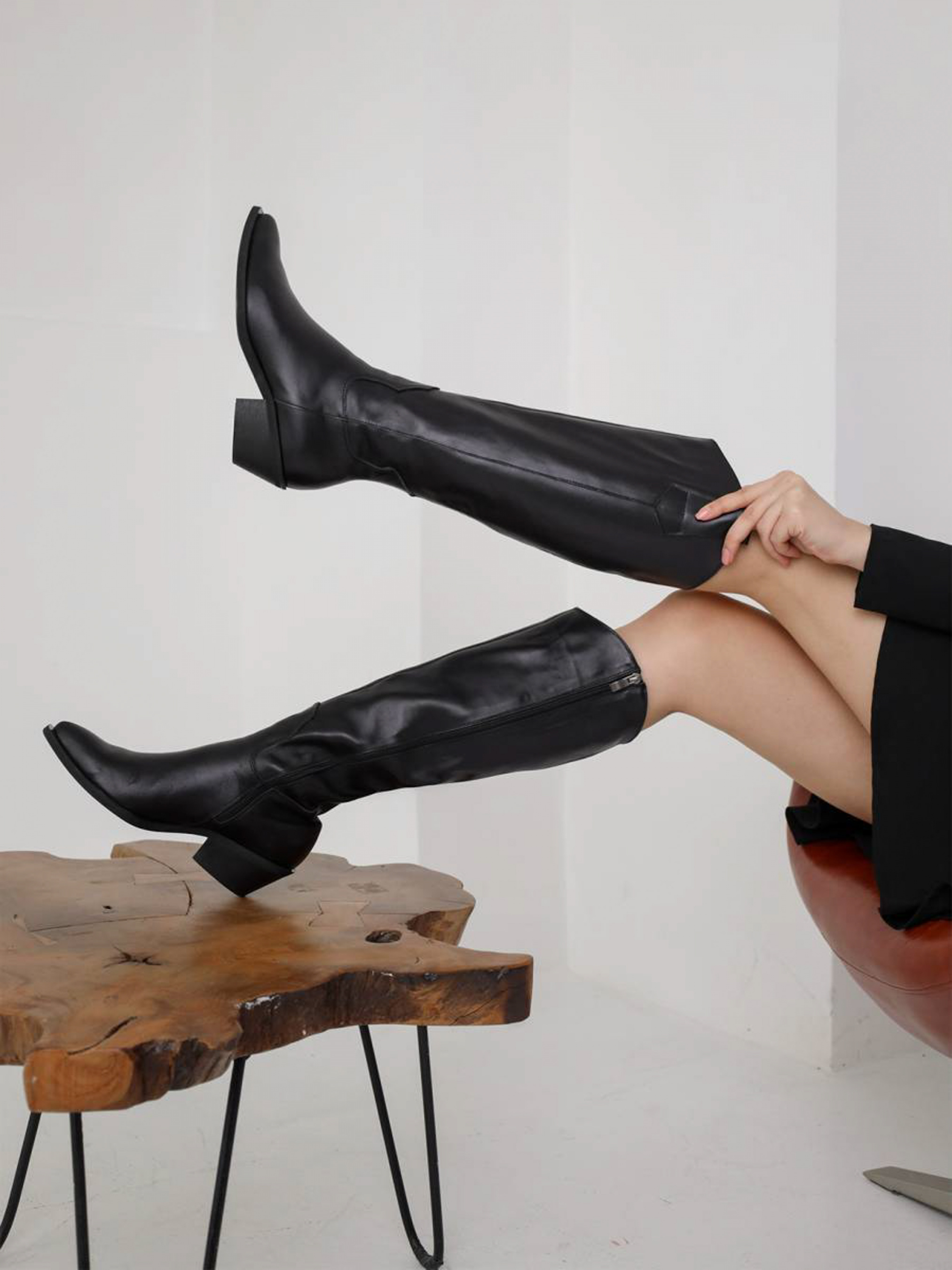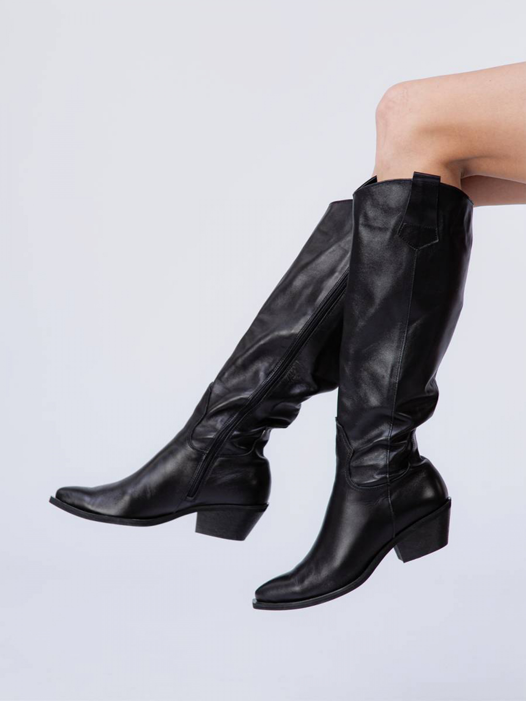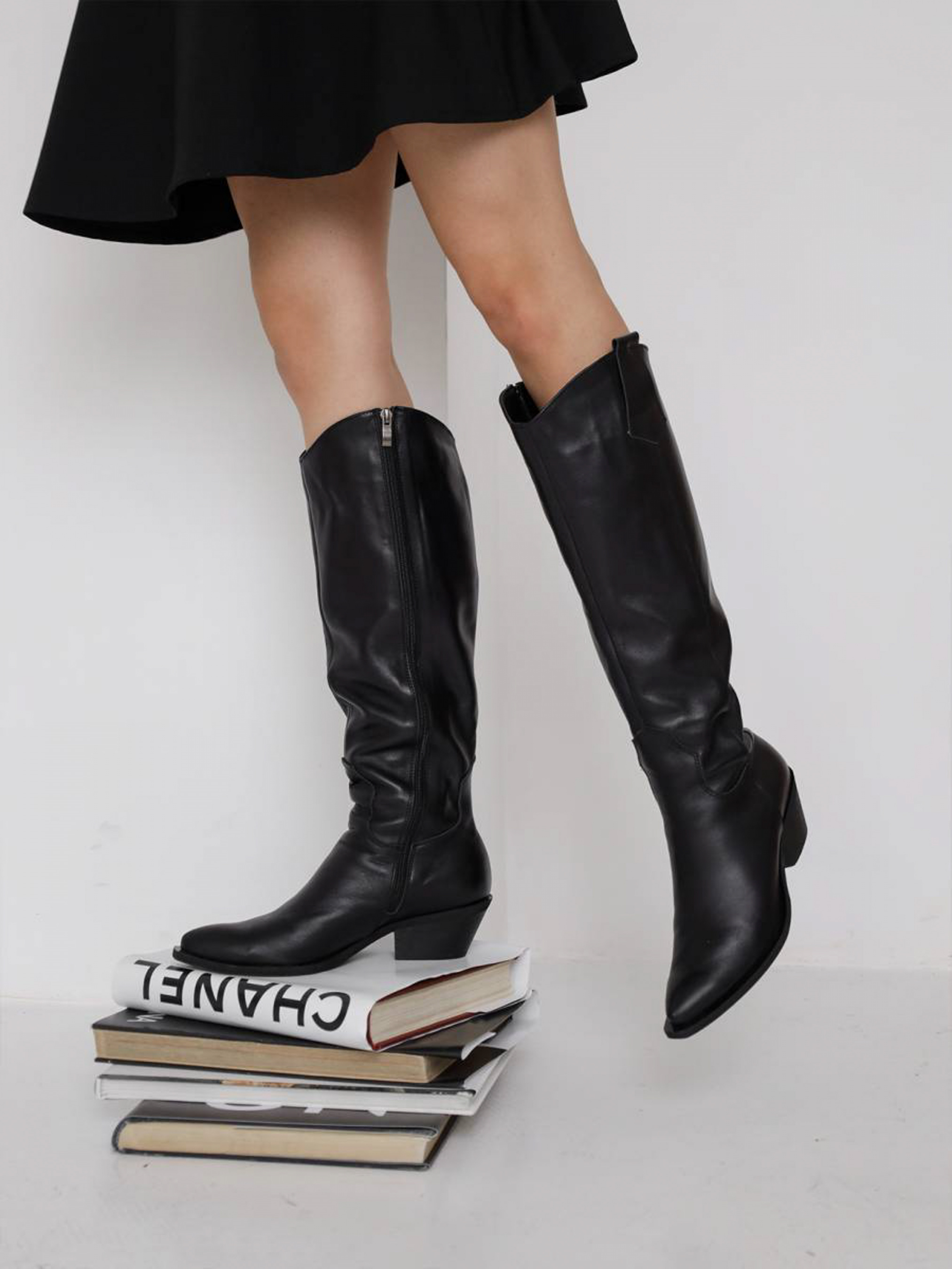 Чоботи-козаки із натуральної шкіри. Висока модель, тому чудово підійде під різні фасони суконь, джинси-скінні або легінси. Всередині тонка байка. Це взуття стане стильним завершенням ділових та жіночних образів. Доповнити можна чорною шкіряною сумкою. 36-23,5 см 37-24 см 38-4,5 см 39-25,5 см 40-26 см 41-27 см