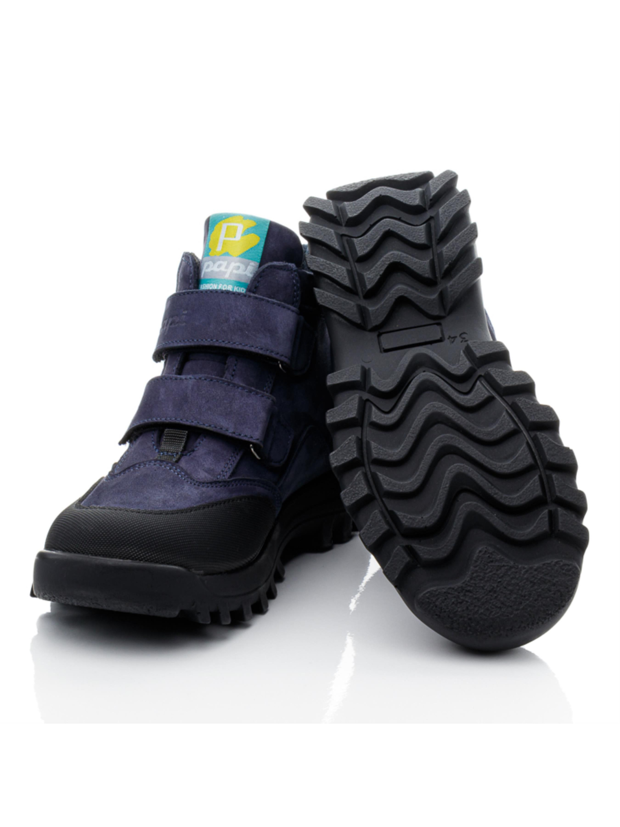Демісезонні дитячі та підліткові черевики з натурального темно-синього нубука — практичний вибір для щоденного носіння у прохолодну пору року. Посилений «неубивайка»-носок захищає взуття від швидкого зношування навіть під час активних ігор. Усередині м’яка флісова підкладка забезпечує тепло та комфорт, а жорсткий задник разом із супінатором підтримують правильне формування стопи. Дві зручні липучки дозволяють швидко фіксувати об’єм і надійно утримують ногу. Модель представлена у широкій розмірній сітці 21–40, що робить її універсальною для малюків, школярів та підлітків, а старші розміри чудово підійдуть і для мам.
