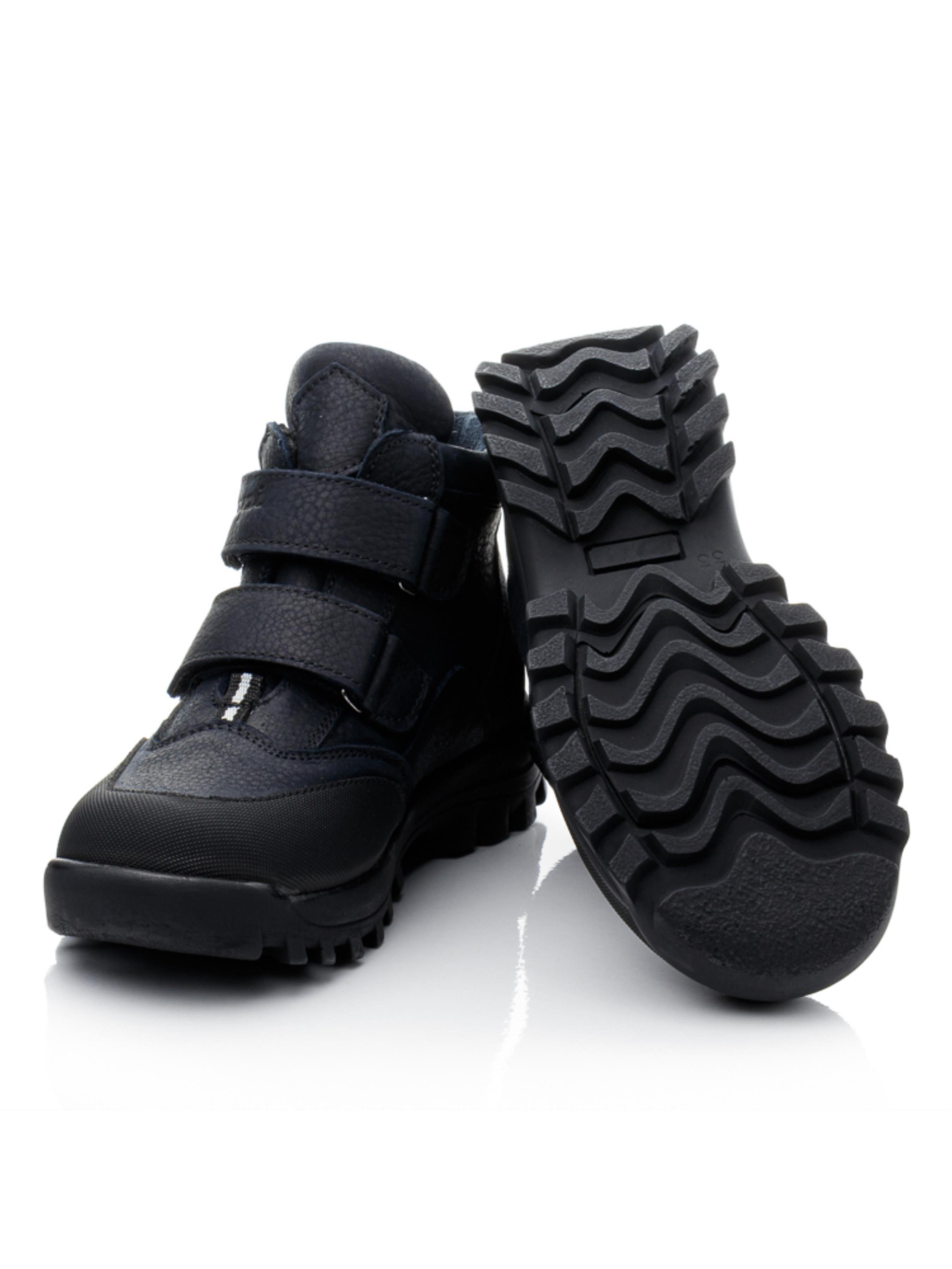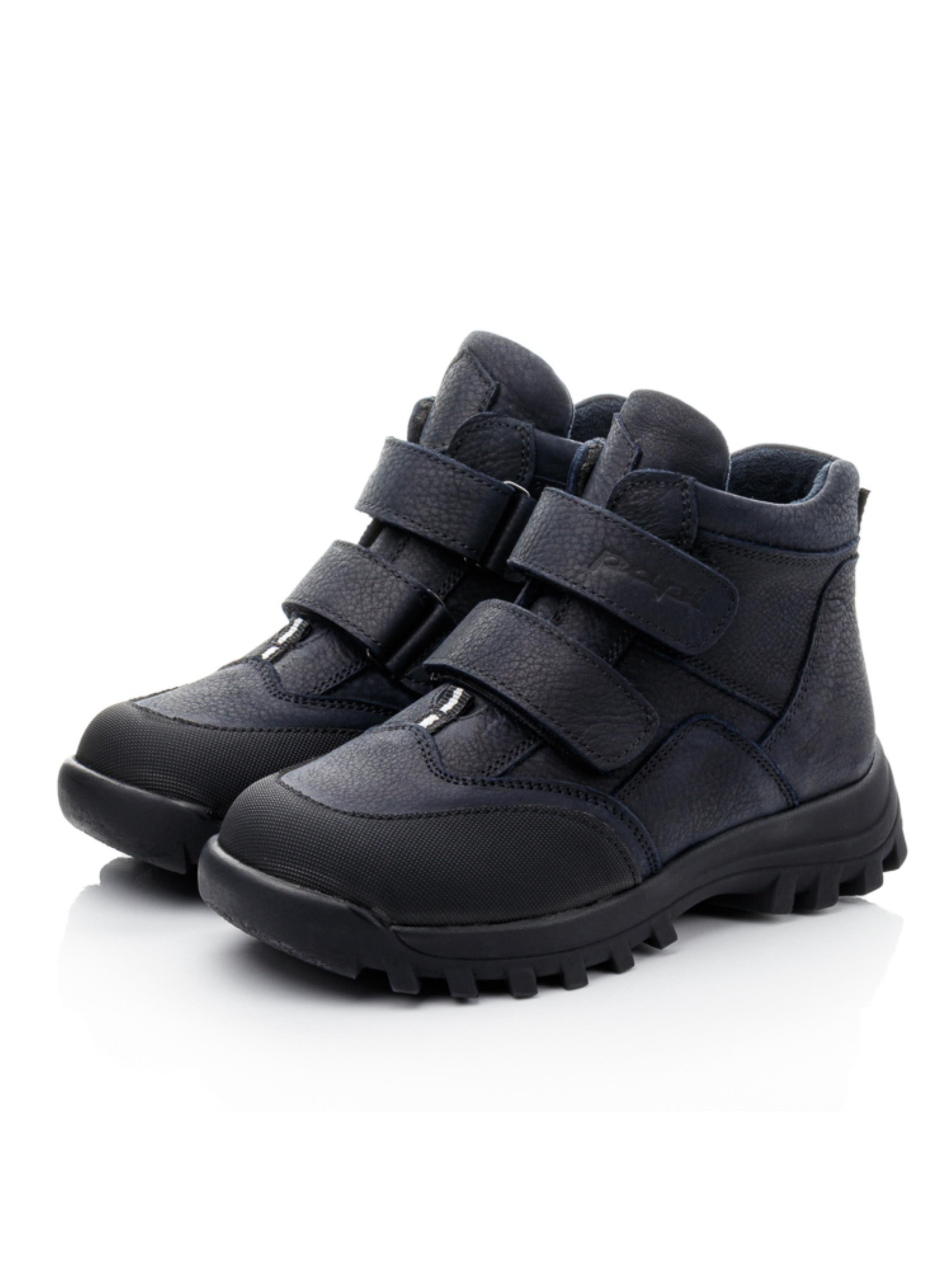 Дитячі та підліткові демісезонні черевики з темно-синьої натуральної шкіри — це поєднання стилю, зручності та надійності. Модель розрахована на активні прогулянки та щоденне використання в прохолодну пору року. Флісова підкладка дарує тепло і комфорт, жорсткий задник підтримує правильне положення стопи, а супінатор сприяє здоровому розвитку. Дві липучки дозволяють швидко взувати черевики та надійно фіксувати їх по нозі. На носку використаний міцний захисний матеріал «неубивайка», який подовжує термін служби взуття навіть при інтенсивному використанні. Розміри — від 31 до 40, тому модель підходить як для школярів, так і для підлітків, а у великих розмірах — навіть для мам, які обирають практичність і якість.