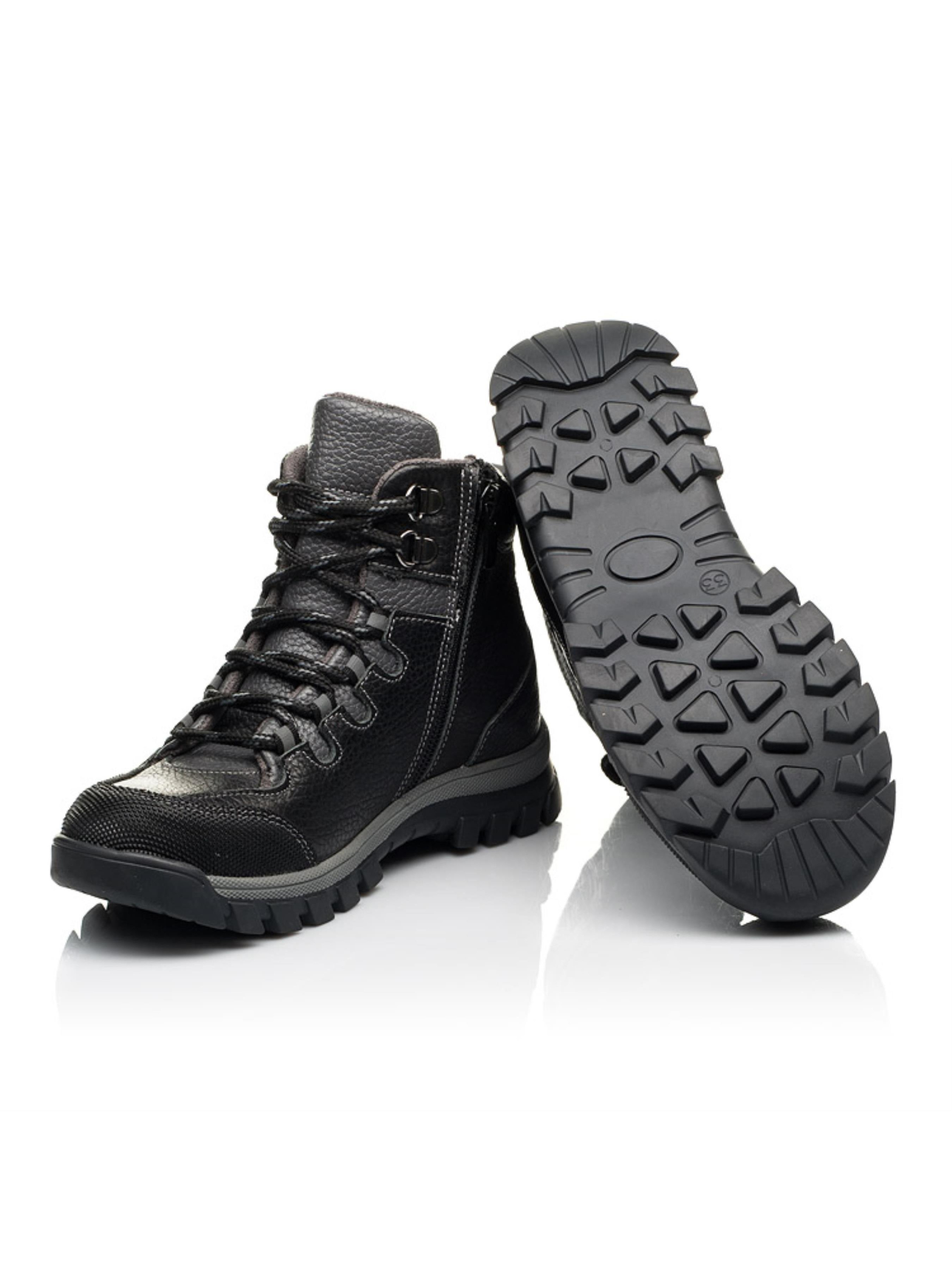 Як би Ви охарктеризували таку демісезонну модель? Ми впевнено та з гордістю можемо сказати: "Комфортні, якісні та практичні". По-перше, дитячі демісезонні черевики для хлопчика пошиті з натуральної шкіри на контрасті чорного та сірого кольору. Всередині утеплені флісом, устілка шкіряна. По-друге, така модель взуття для підлітка забезпечить тепло ніжкам до перших морозів. Спосіб застібання - блискавка, яка доповнена шнурівкою для кращої фіксації ніжки. По-третє, комфорт дитячим стопам гарантує жорсткий задник, супінатор та анатомічно правильна устілка. І важливе доповнення моделі - вставка з сучасного штучного матеріалу "неубивайка". Тож з такою парою демісезонних черевик Вашому хлопчику гарантована активна, тепла та комфортна осінь.