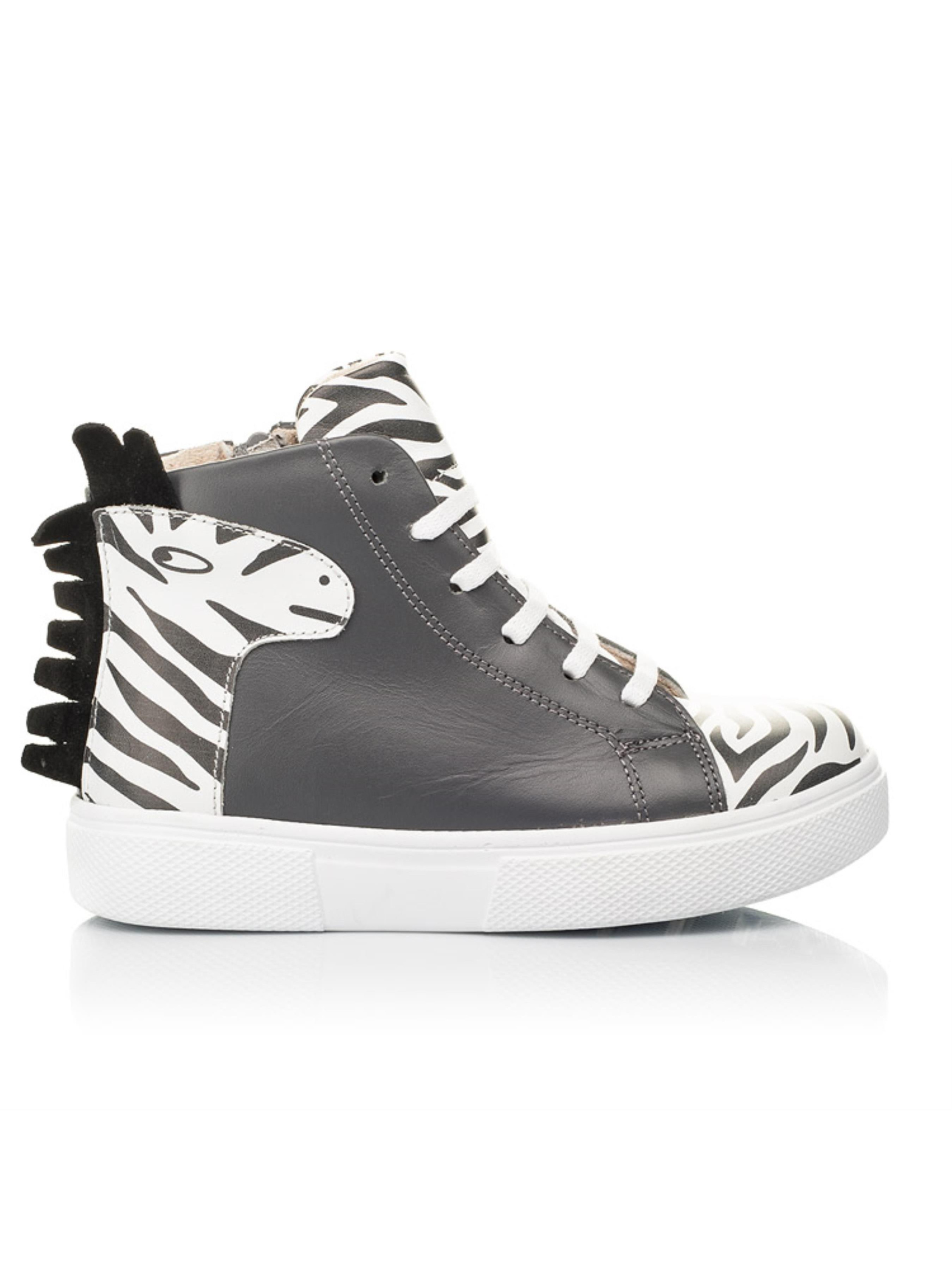 Дитячі демісезонні черевики для дівчинки з оригінальним та неповторним принтом вразять Вашу маленьку модницю з першого погляду. При створенні такої пари особливу увагу було приділено не лише дизайну, але і комфортним елементам. Дитячі демісезонні черевики пошиті з натуральної шкіри білого кольору з принтом під зебру. Матеріал підкладки - фліс, устілка шкіряна. Головною фішкою моделі виступає зображення зебри та грива, яка прикрашає п'яточну зону взуття. Демісезонні черевики для дівчинки пошиті з врахуванням важливих ортопедичних елементів дитячого взуття. Черевики мають жорсткий задник, супінатор та анатомічну устілку. Зручність взування забезпечить бокова блискавка, шнурівка дозволить врегулювати повноту ніжки та надійно зафіксувати стопу в ортопедично правильному положенні. Такі дитячі черевики з оригінальним дизайном створені для дівчинки, яка бажає виділитися.