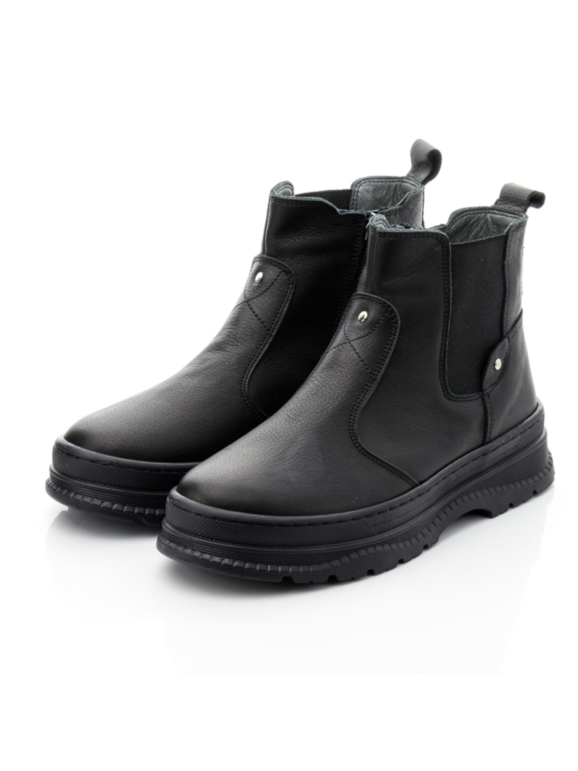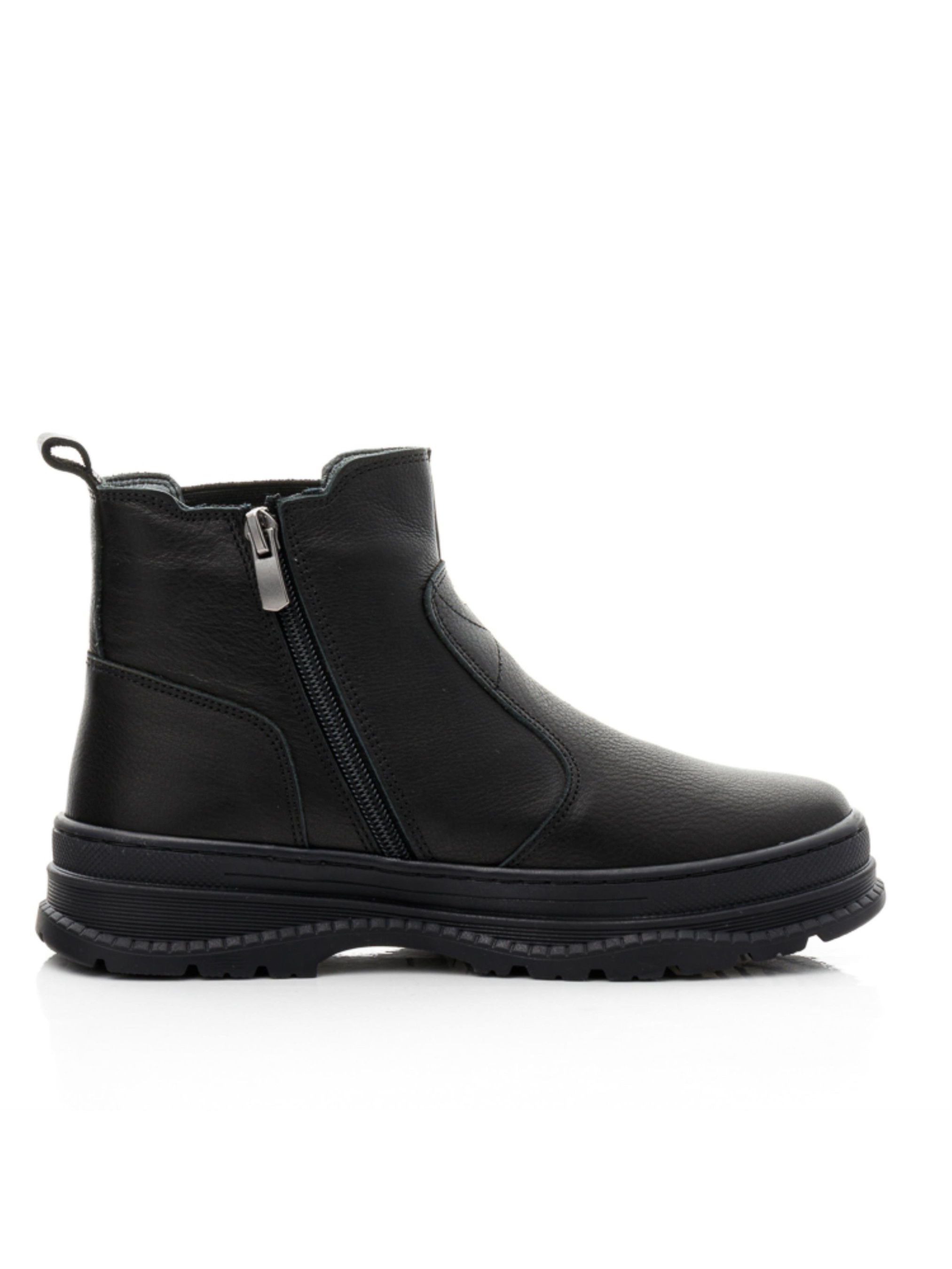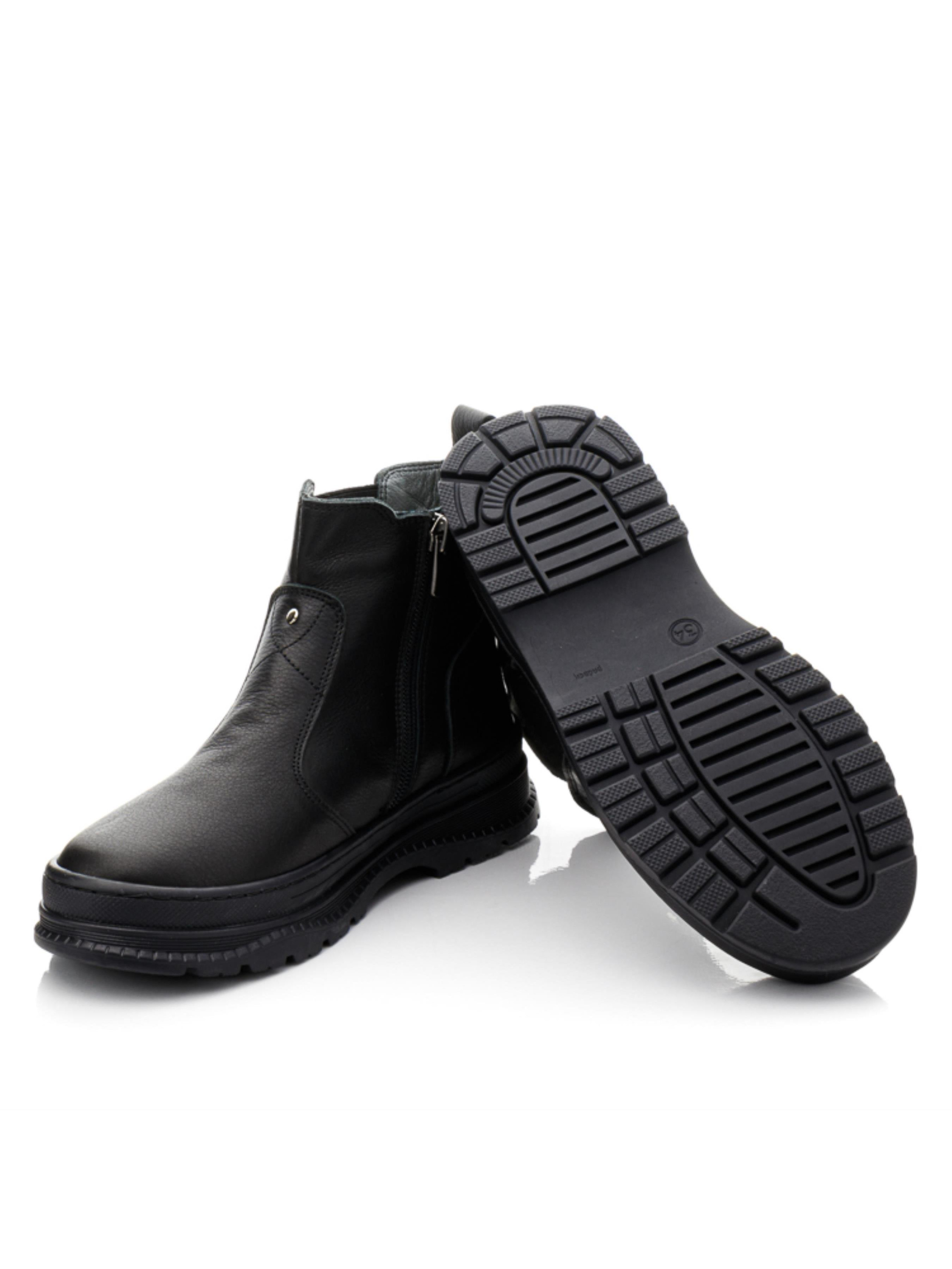 Максимально універсальні та доречні для будь-якої осінньої погоди дитячі демісезонні черевики для дівчинки пошиті з натуральної шкіри базового чорного кольору. Матеріал підкладки – фліс, устілка шкіряна. Лаконічні демісезонні черевики мають стриманий дизайн без масивних та яскравих акцентів, проте захоплюють своєю елегантність. Модель доповнена фігурною нашивкою шкіри, яку довершено мінімалістичними металевими заклепками. Підошва в черевиках легка, має неповторну вишукану фактуру, відлита з якісної гуми, по периметру прошита. Бокову частину черевик доповнено широкою гумкою. Для пришвидшення взування в якості застібки використовується блискавка. Вашій дівчинці з такою парою черевик гарантовані комфортні тривалі осінні прогулянки, адже при пошиві було враховано такі важливі елементи дитячого взуття: твердий задник, супінатор та анатомічно правильна устілка.