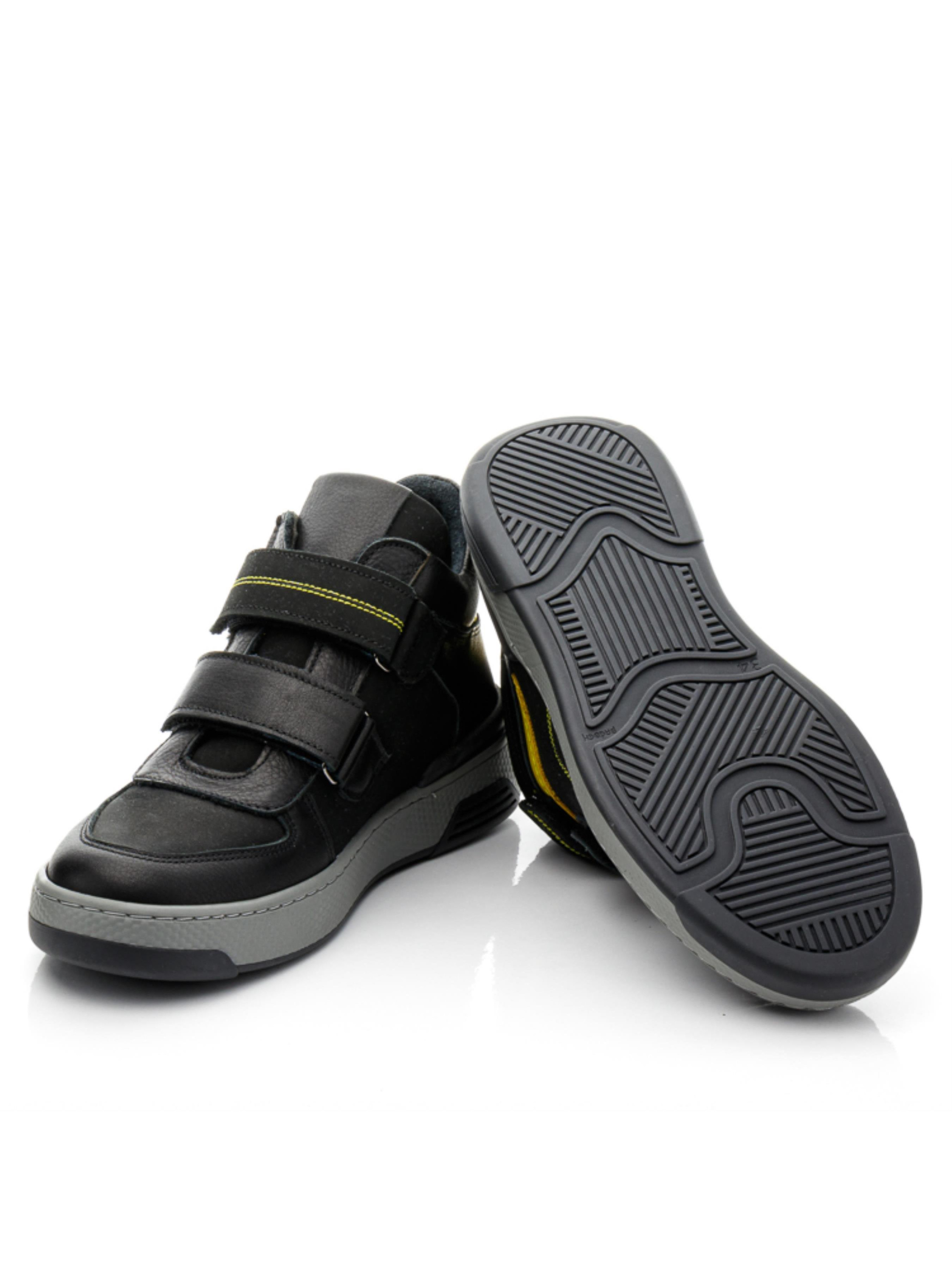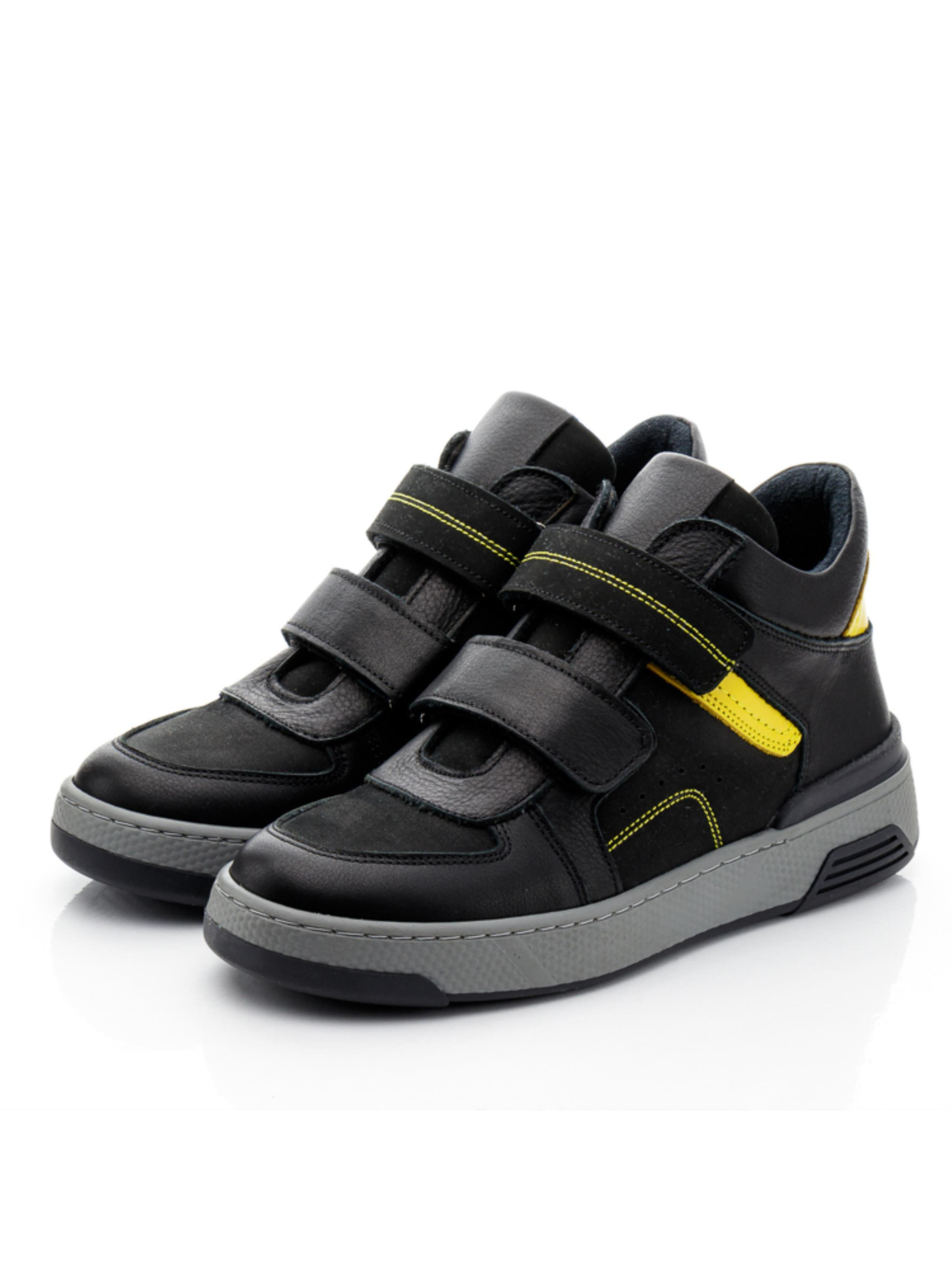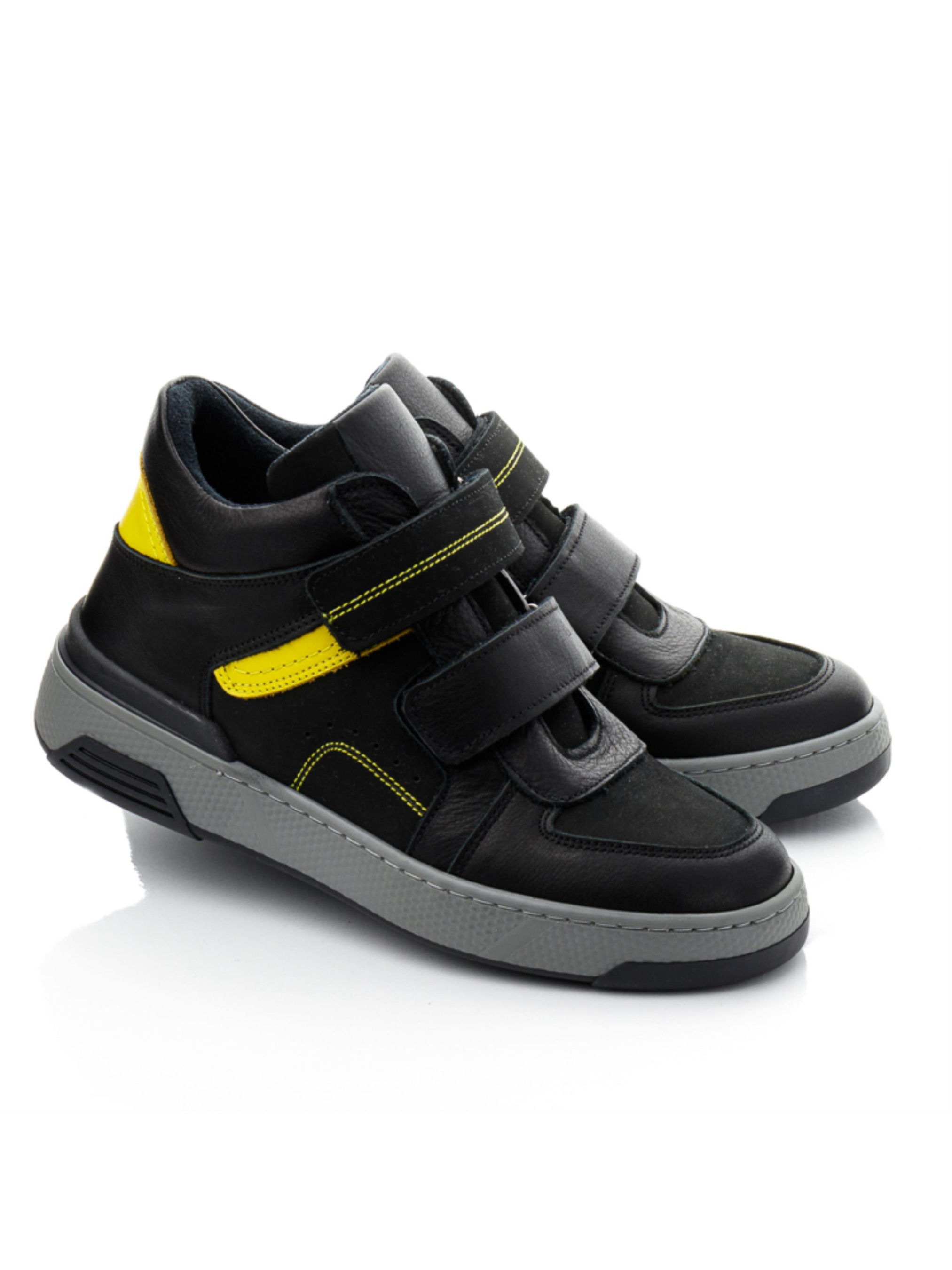Спортивні демісезонні черевики для хлопчика від «Woopy»: Стиль і комфорт в кожному кроці Представляємо вам новинку сезону – дитячі демісезонні черевики для хлопчика, які поєднують у собі неперевершений стиль та бездоганний комфорт. Ця модель черевиків, виготовлених з натуральної гладкої шкіри чорного кольору, відрізняється яскравими жовтими вставками, які додають модного акценту та підкреслюють елегантність дизайну. Ключові особливості: Матеріали: Черевики пошиті з високоякісної натуральної шкіри та нубука. Внутрішня частина утеплена флісом, а устілка виготовлена з натуральної шкіри, що забезпечує максимальний комфорт. Дизайн: Унікальне поєднання чорної шкіри з жовтими вставками та декоративною прошивкою додає черевикам стильного вигляду. Особлива увага приділена фактурі шкіри завдяки чіткій декоративній прошивці. Функціональність: Черевики мають дві надійні липучки для зручності і швидкості застібання. Твердий задник, супінатор та анатомічна устілка гарантують правильну підтримку і комфорт дитячої ніжки. Підошва: Легка, гнучка та не ковзка підошва, яка прошита по периметру, забезпечує відмінну амортизацію та стійкість на різних поверхнях. Ця модель демісезонних черевиків стане відмінним вибором для активних хлопчиків, які прагнуть бути в центрі уваги. Забезпечте вашій дитині комфорт і стиль в будь-яку погоду з черевиками від «Woopy». Відвідайте наш магазин і отримайте найкраще для вашого маленького модника!