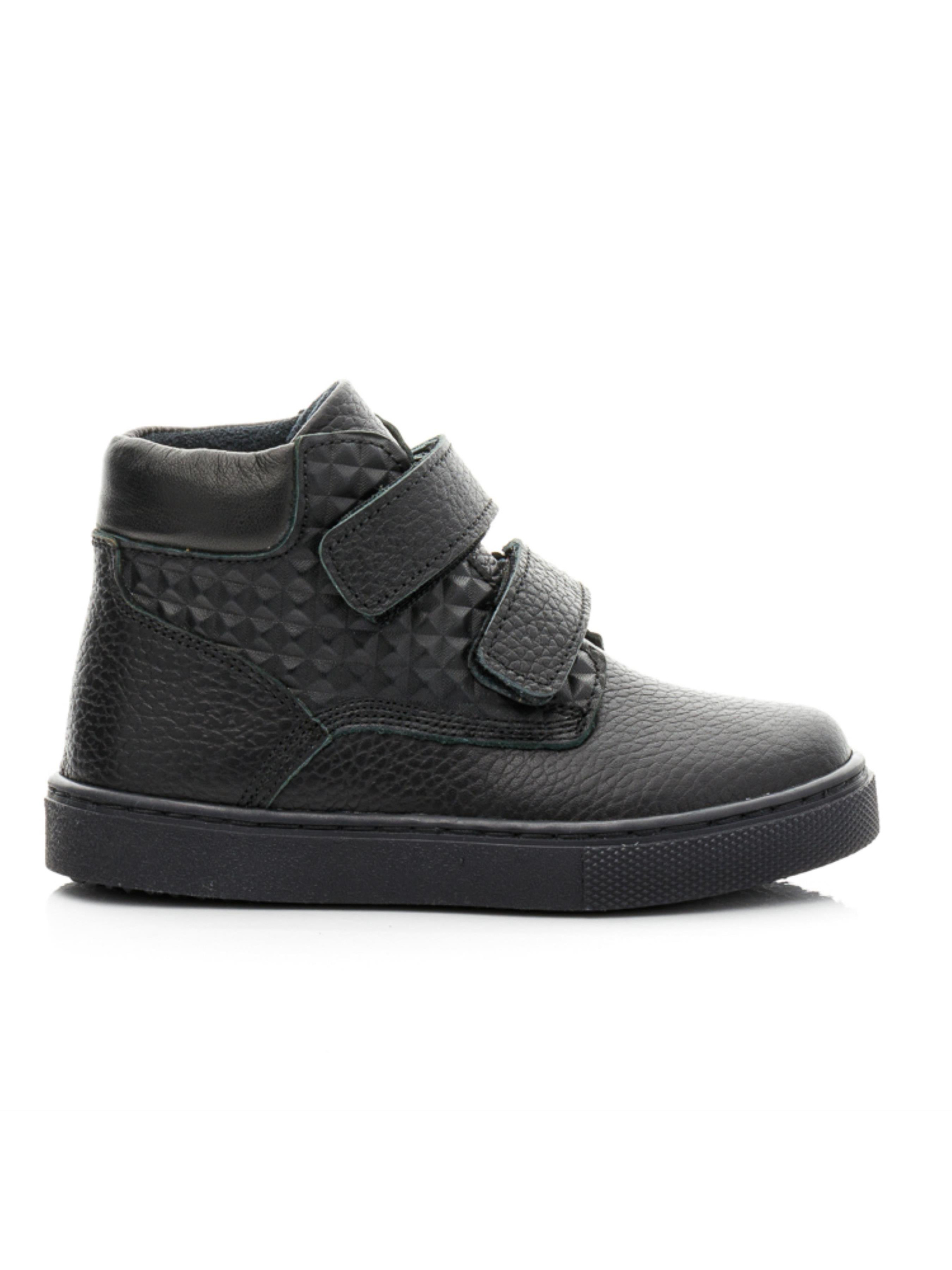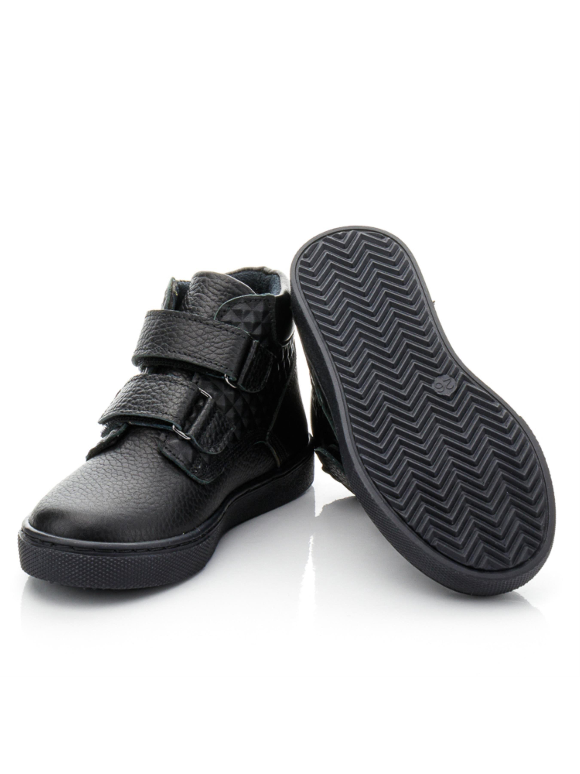 Обов'язково придбайте ці надзвичайно стильні дитячі демісезонні черевики для хлопчика, щоб ваш модник почувався комфортно та впевнено на всі 100%. Ця стильна демісезонна пара виготовлена з якісної натуральної гладкої шкіри чорного кольору. Оригінальний дизайн черевик доповнено вставкою з натуральної шкіри у вигляді об'ємних квадратів, що додає унікальності. Вашого хлопчика ця пара підкорить не лише стильним виглядом, але й комфортом, адже черевики мають усі необхідні елементи дитячого взуття. Легка підошва, посилений твердий задник для підтримки стопи, супінатор та анатомічно правильна устілка забезпечують максимальний комфорт. Для зручності та швидкості взування модель оснащена застібками-липучками. Підошва виготовлена з якісної гуми, не ковзає та прошита по всьому периметру, що гарантує довговічність та надійність.