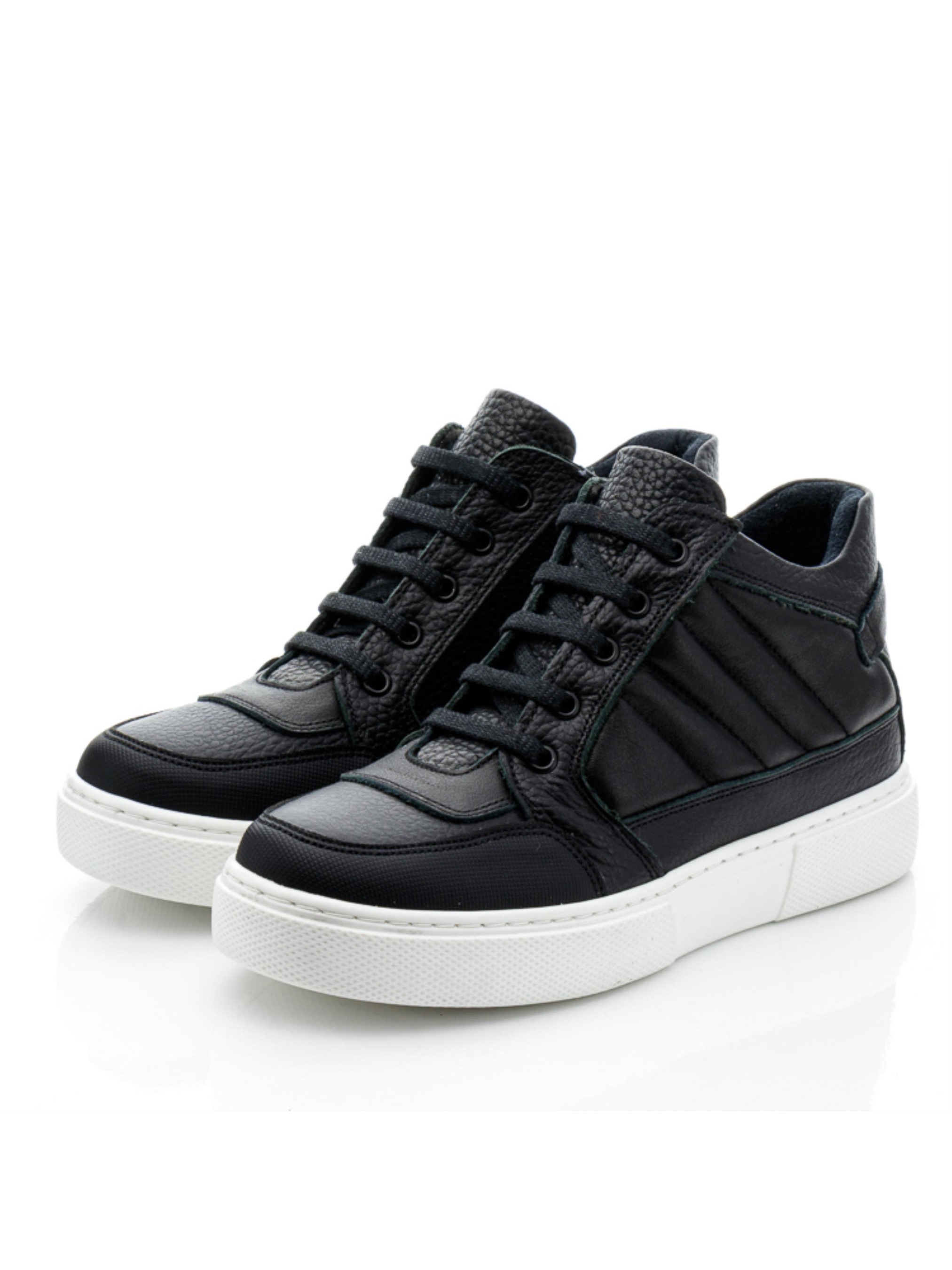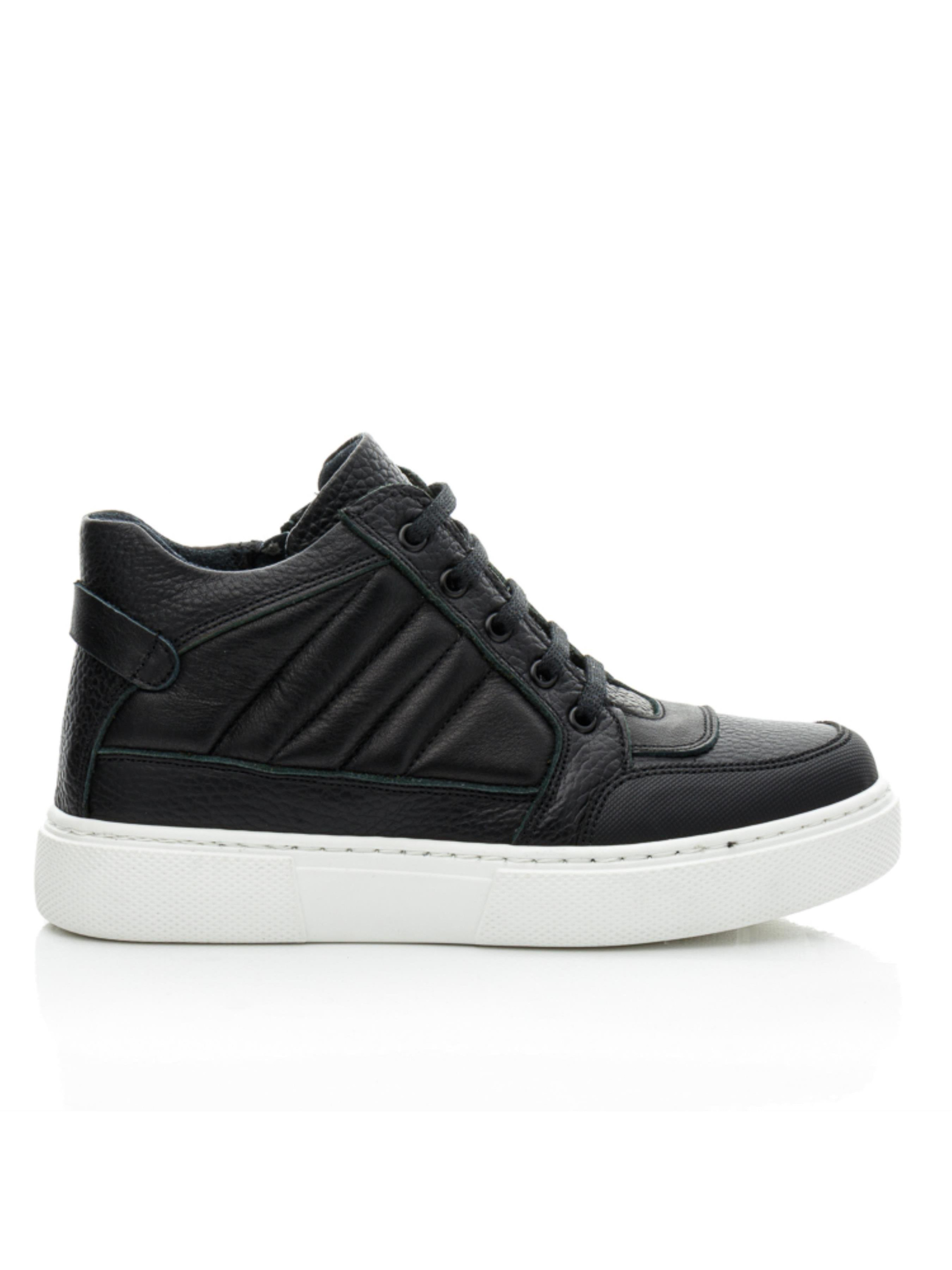 Вам сподобаються ці універсальні дитячі демісезонні черевики для хлопчика, які поєднують якість, комфорт і стиль. Модель виготовлена з натуральної шкіри чорного кольору і утеплена флісом, що забезпечує тепло та комфорт в прохолодну погоду. Лаконічний чорний колір і стриманий дизайн дозволяють легко комбінувати черевики з будь-яким одягом, створюючи безліч стильних образів. Особливістю моделі є контрастна підошва білого кольору, виготовлена з високоякісної гуми. Підошва є не ковзкою, гнучкою та повністю прошитою, що додає черевикам міцності та зручності. Спортивний стиль черевиків підкреслює їх твердий задник, супінатор та анатомічно правильну устілку. Декоративна прошивка бокової частини створює об'ємну фактуру, а носочок захищено вставкою з сучасного штучного матеріалу "неубивайка", яка запобігає пошкодженням. Для зручності взування черевики оснащені боковою блискавкою, а шнурівка забезпечує надійну фіксацію ніжки. Ці черевики ідеально підійдуть для активного хлопчика, гарантуючи йому комфорт і стиль на кожному кроці.