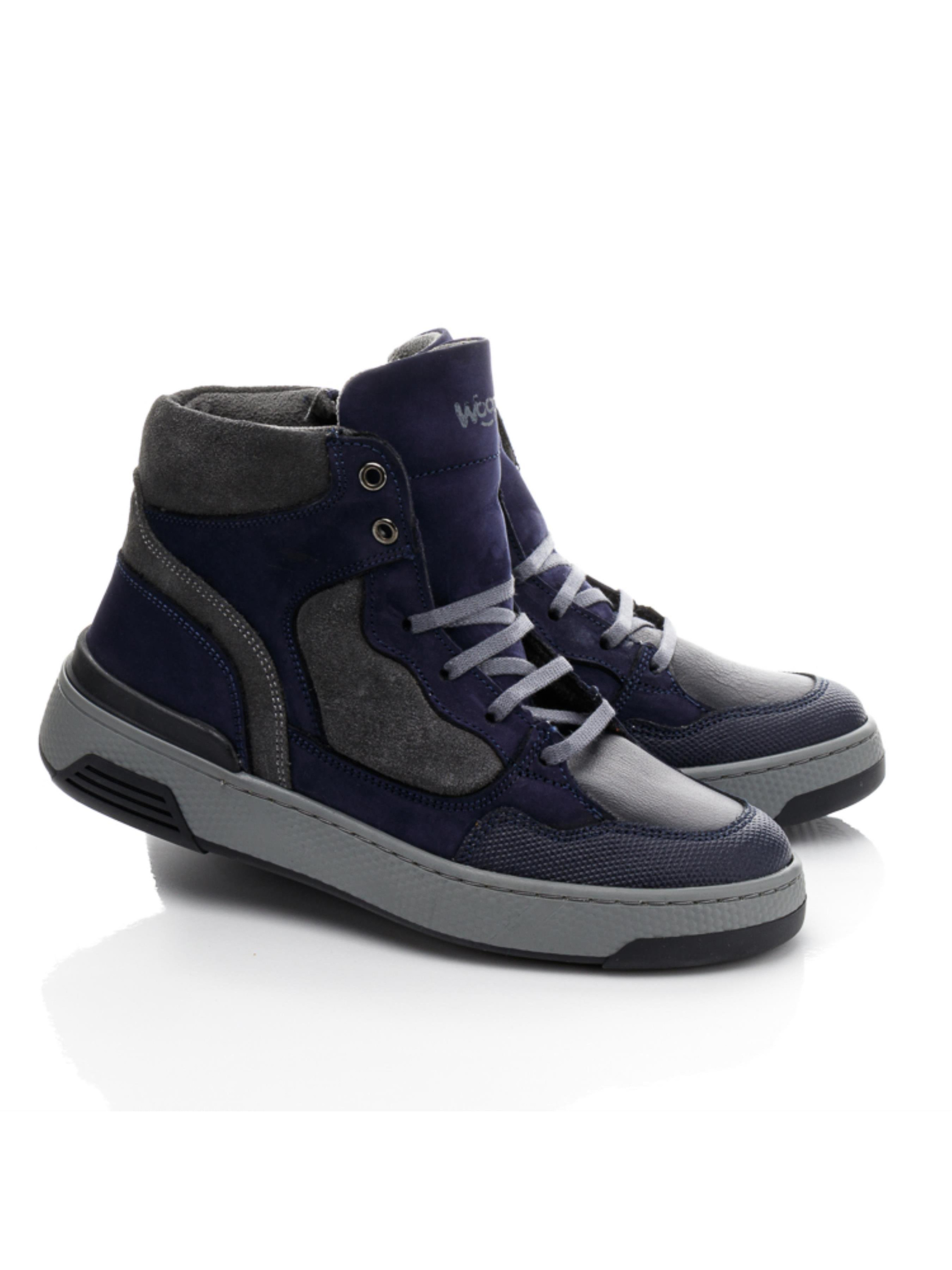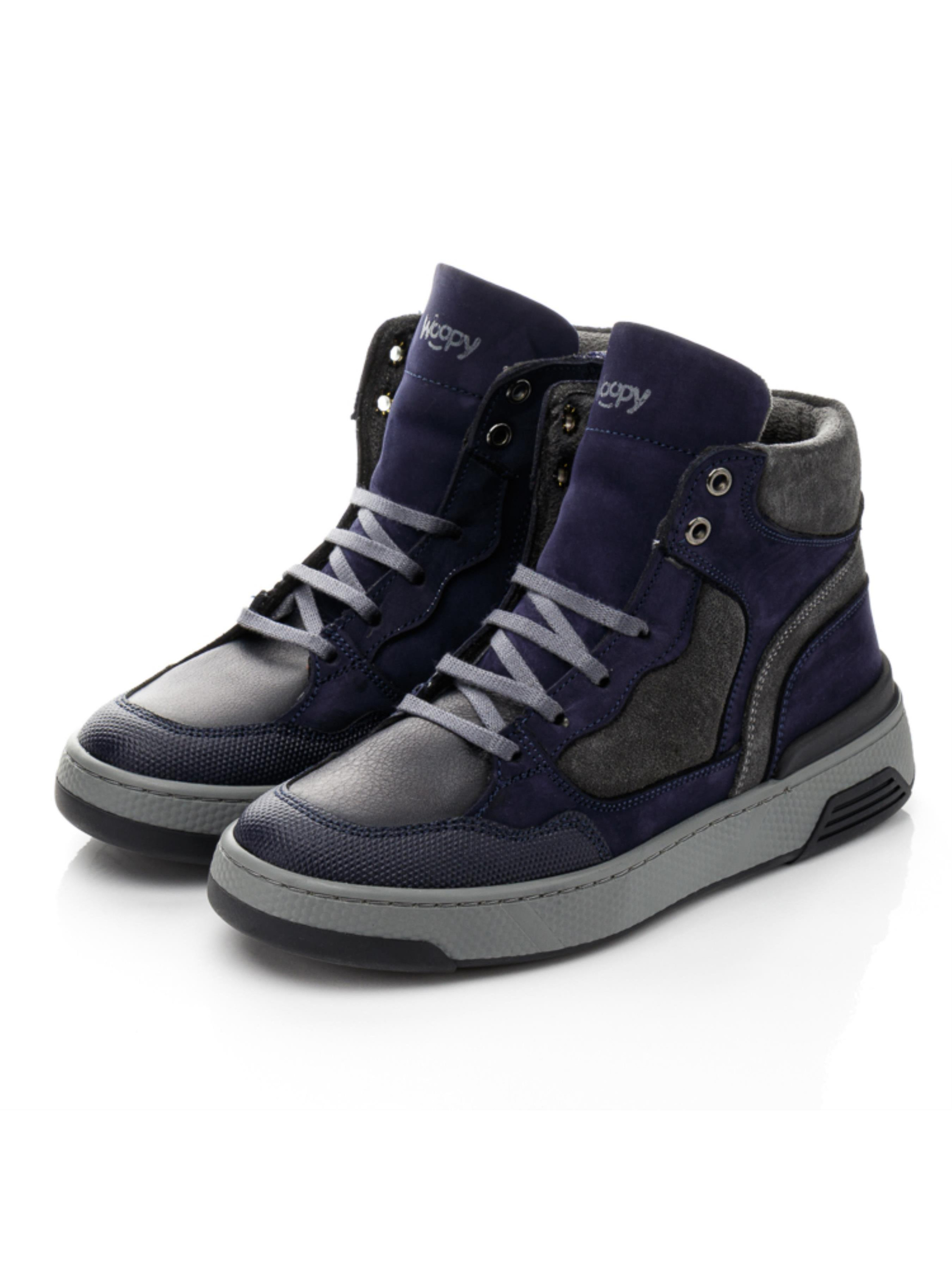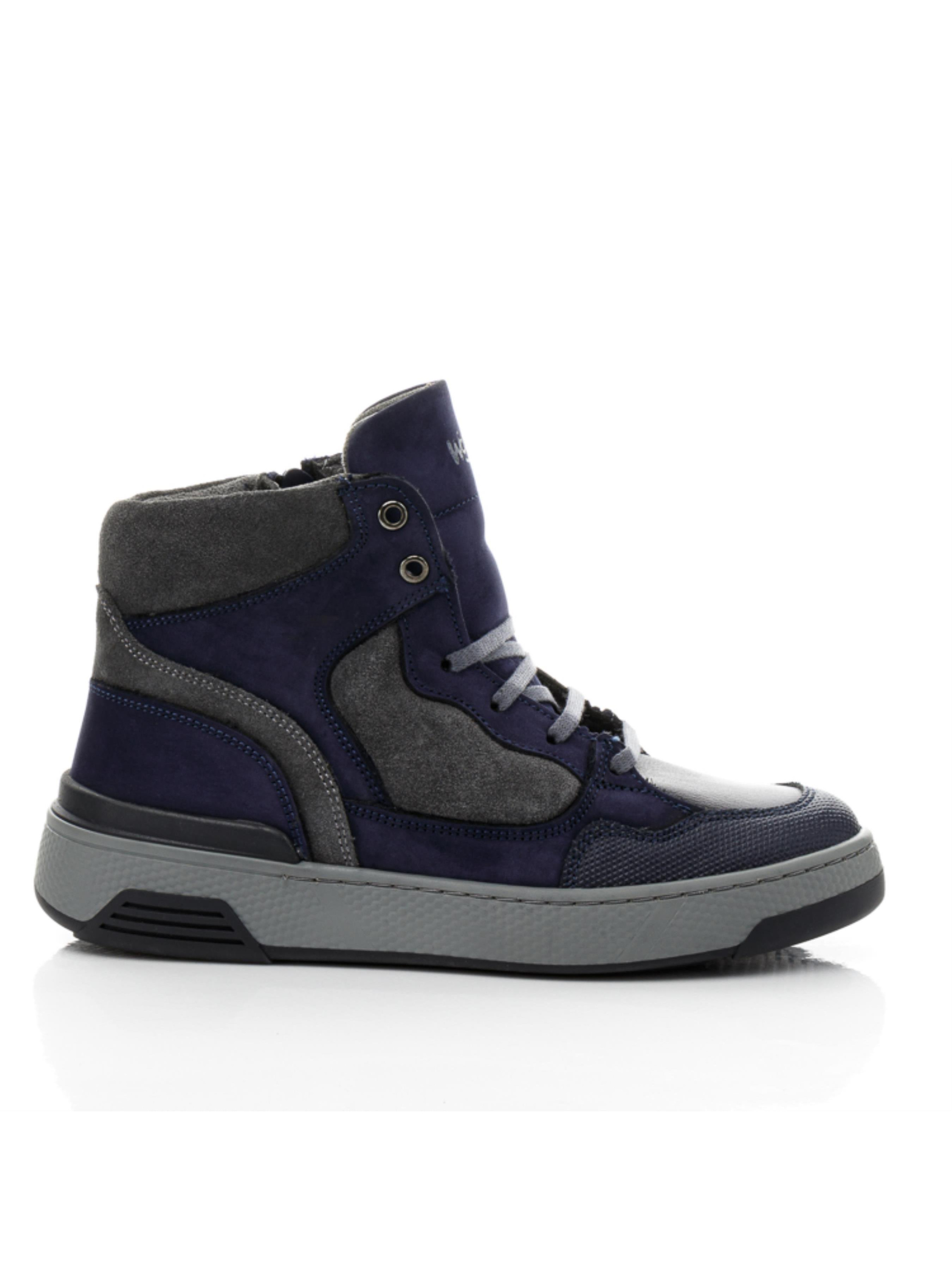 Такі круті дитячі демісезонні черевики для хлопчика – стильна база осіннього гардеробу. Ефектні черевики для хлопчика пошиті з натуральної замші сірого кольору, доповнені вставкою з натурального нубука красивого синього кольору. Носочок в черевиках відшито з натуральної гладкої шкіри та захищено від збивання вставкою з сучасного штучного прорезиненого матеріалу «неубивайкою». Матеріал підкладки – фліс, устілка шкіряна. Язичок в демісезонних черевиках оздоблено фірмовим логотипом бренду «Woopy». Підошва в моделі легка, гнучка, відлита з якісної гуми, по периметру прошита. Демісезонні черевики для комфорту стопи впродовж дня мають твердий задник, супінатор та анатомічно правильну устілку. Спосіб застібання – бокова блискавка, яка для надійної фіксації стопи в правильному положенні доповнена шнурівкою.