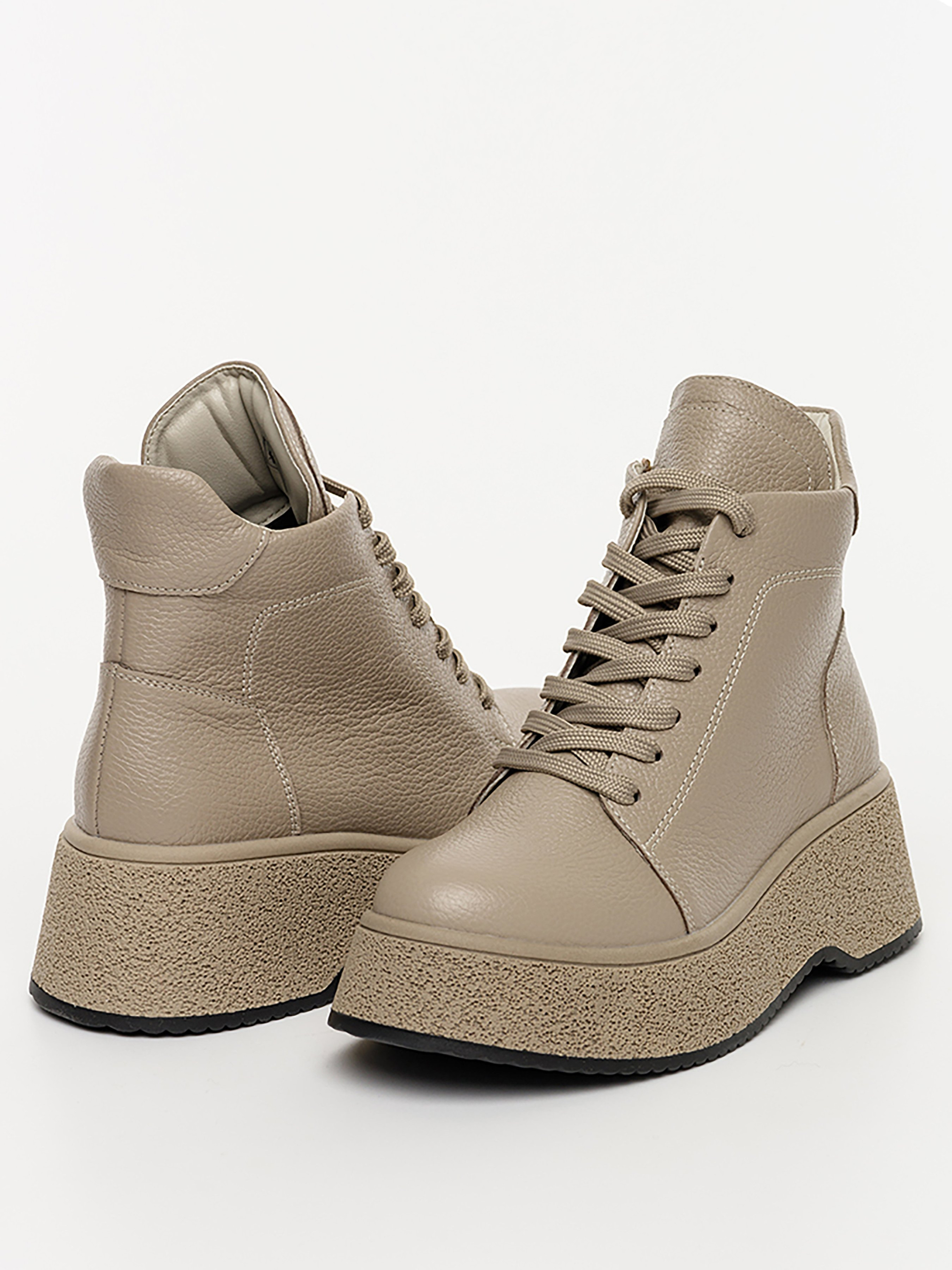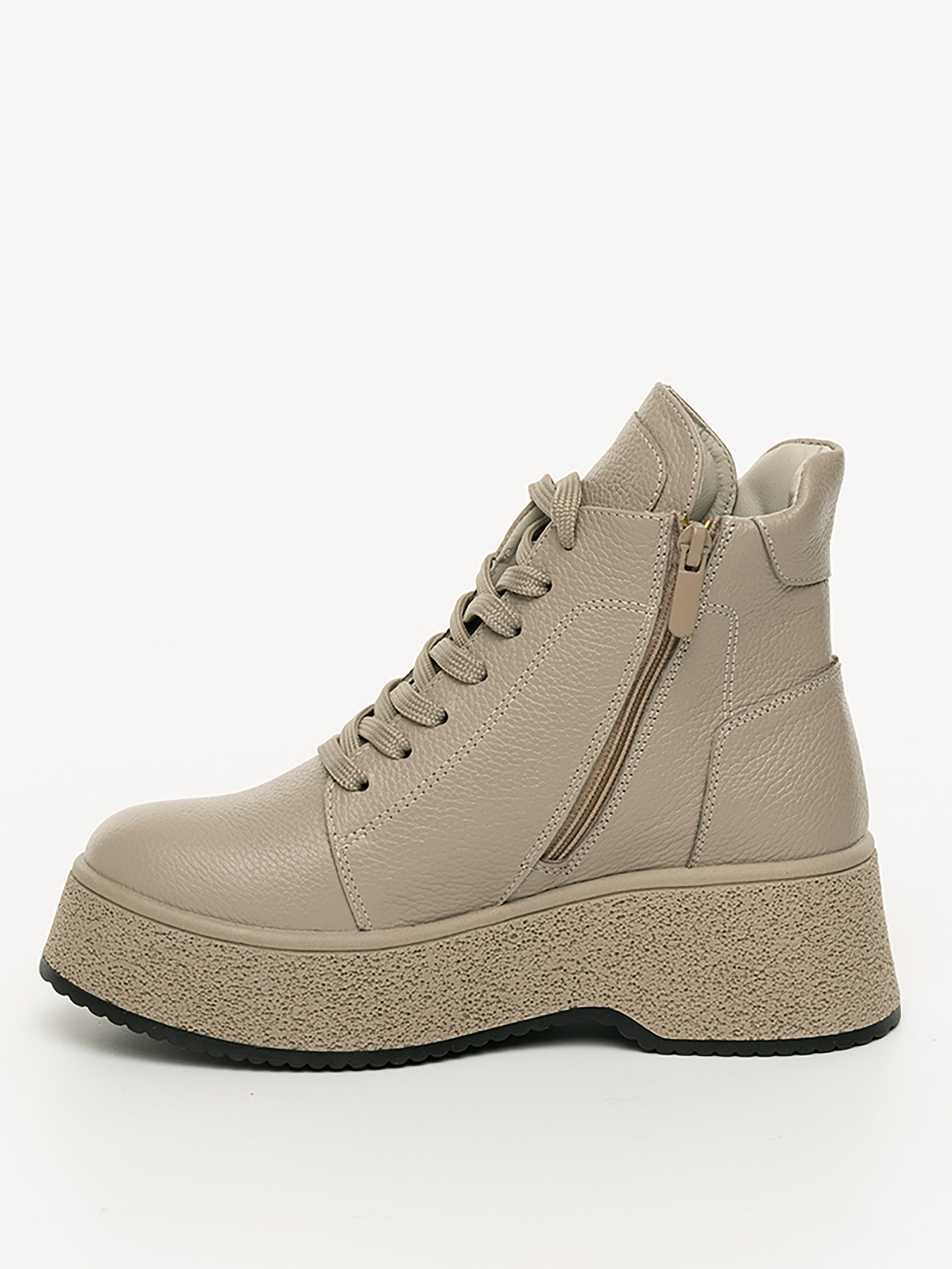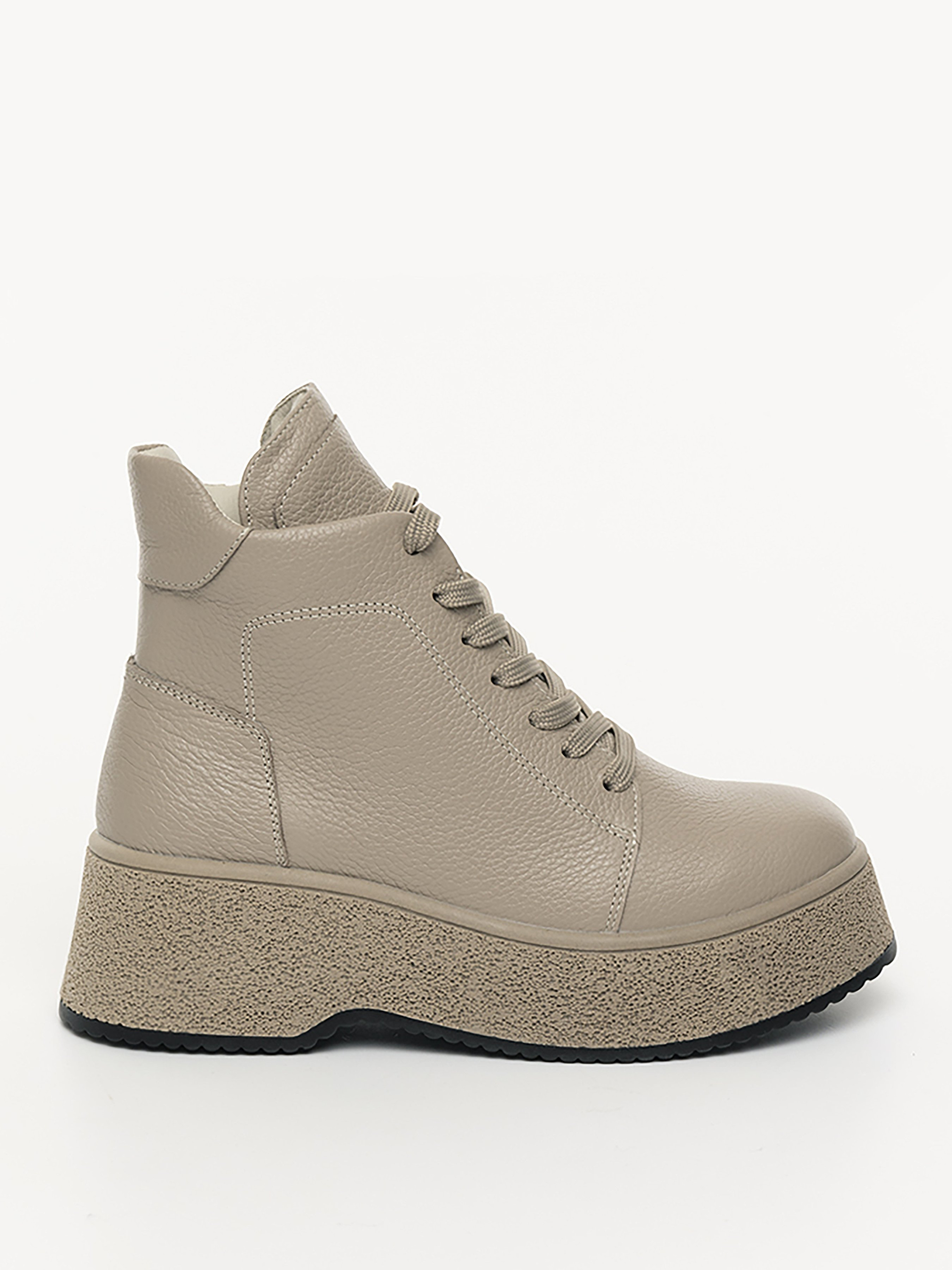 Стильні жіночі черевики бежевого кольору. Модель виготовлена зі шкіри, всередині підкладка на хутрі. Стильні черевики підходять практично до будь-якого одягу в гардеробі. Склад: 100% шкіра підошва: ТПУ / підклад: хутро Розмірний ряд: 36-41 36 р. - 23 см, 37 р. - 23,5 см, 38 р. - 24 см, 39 р. - 24,5 см, 40 р. - 25,5 см