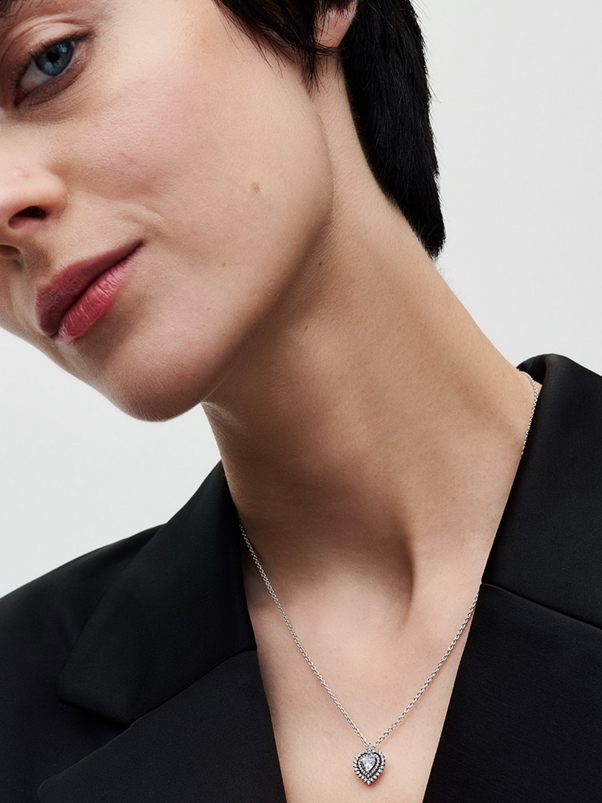 Проявіть глибину свого кохання за допомогою намиста "Сяюче серце з ореолом". Це елегантне намисто зі срібла 925-ї проби прикрашене камінцем кубічного оксиду цирконію у формі серця, що виблискує в його центрі. Подвійний ореол, розташований на різних рівнях навколо центрального каменю, додає відчуття глибини та об'ємності. Підвіска у вигляді серця не знімається і вільно ковзає по ланцюжку, який можна регулювати в трьох варіантах довжини. Поєднайте його з сережками-пусетами "Сяюче серце з ореолом", щоб створити піднесений і сучасний образ.