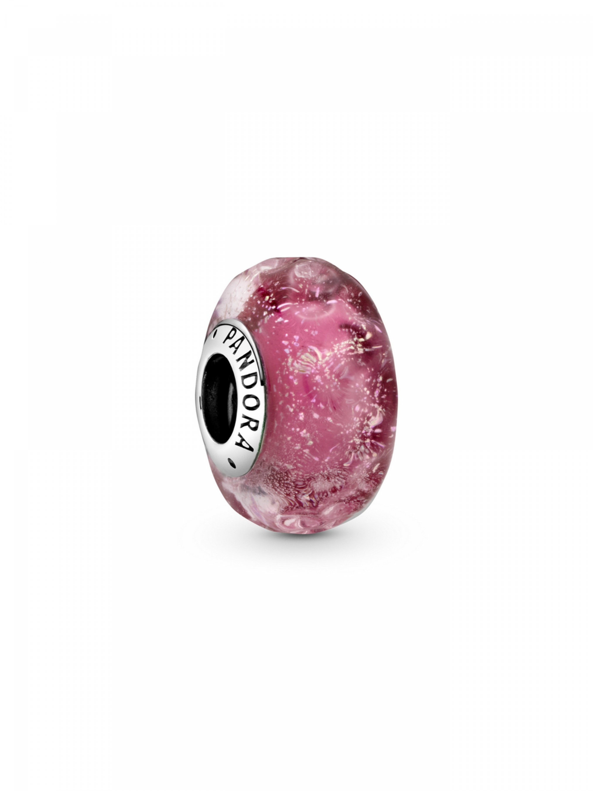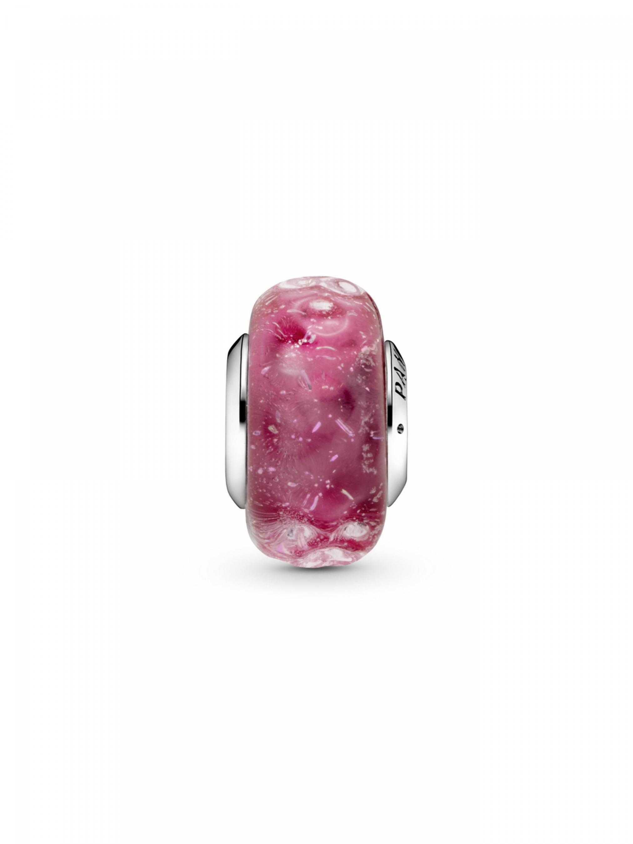 Ця витончена намистина зі склом мурано фантазійного рожевого кольору додасть яскравих акцентів будь-якому образові. Екстраординарна прикраса вирізняється хвилястою поверхнею та блискітками всередині скла мурано фантазійного рожевого кольору. Вона ідеально підкреслить ваше почуття стилю. Намистина трішки менша за розміром, ніж наші звичайні намистини зі склом мурано. Кожну намистино довершено вручну, а її серцевину виготовлено зі срібла 925-ї проби та доповнено гравіюванням з логотипом Pandora.